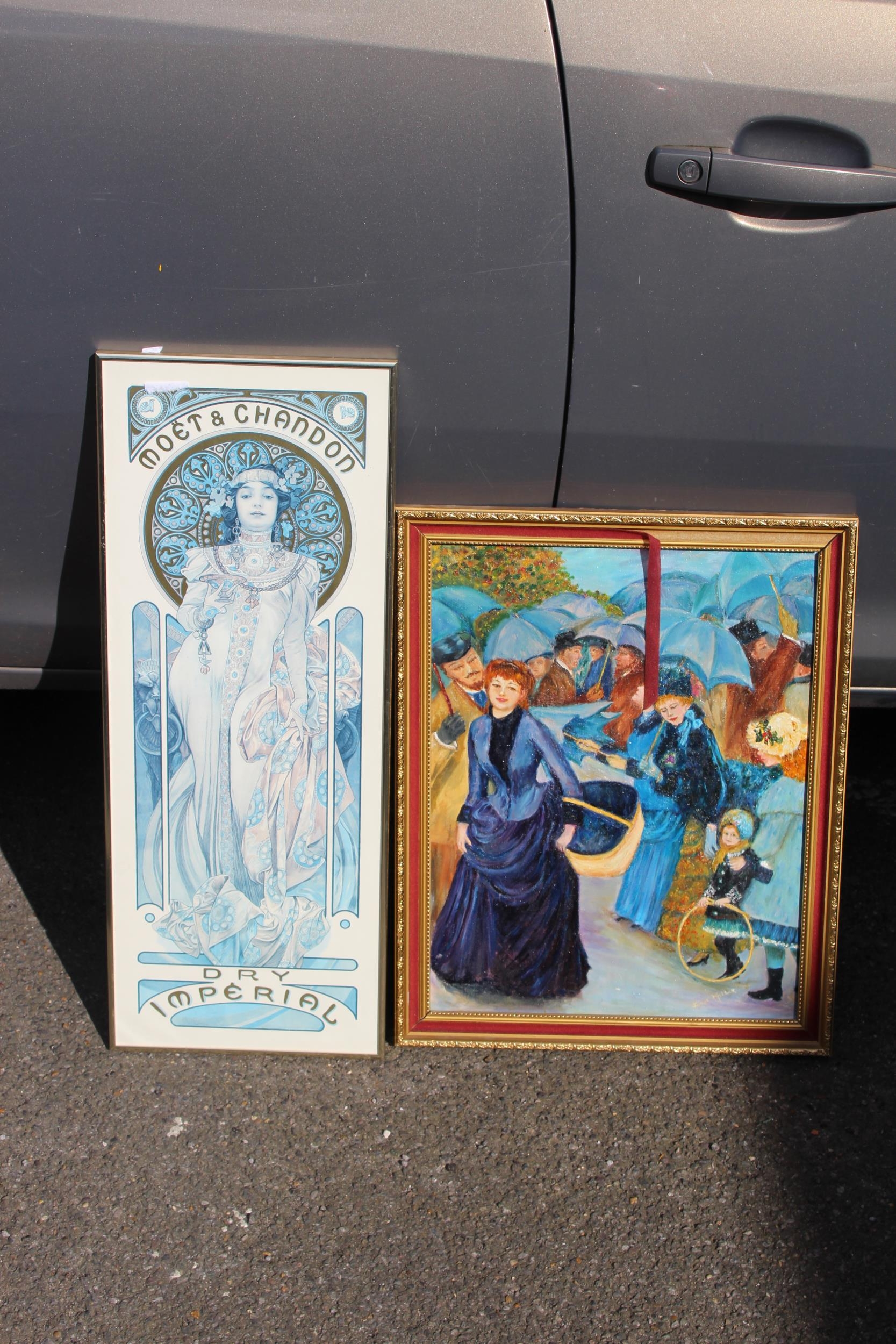 OIL ON BOARD AFTER RENOIR AND AN ADVERTISING PRINT66CM