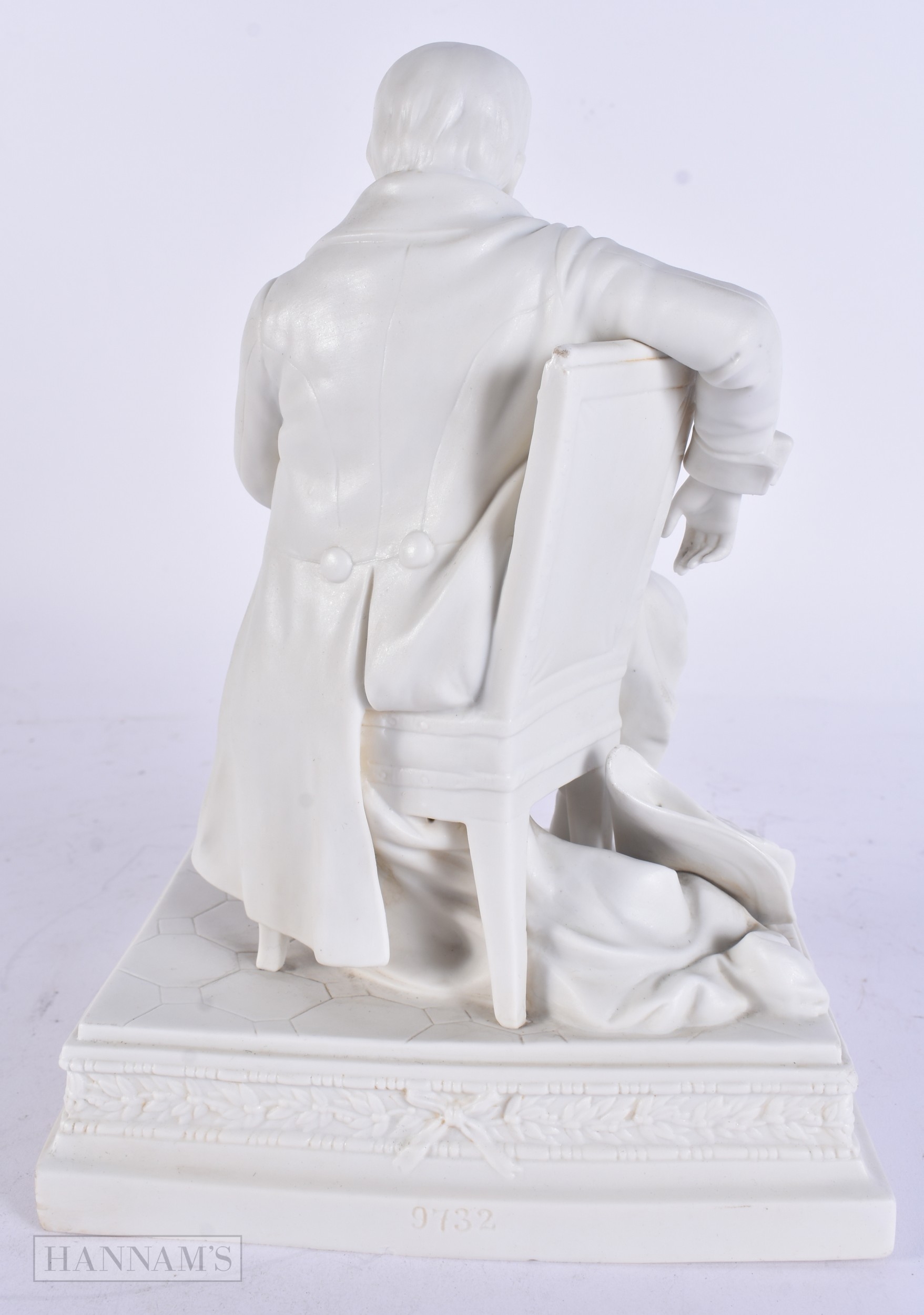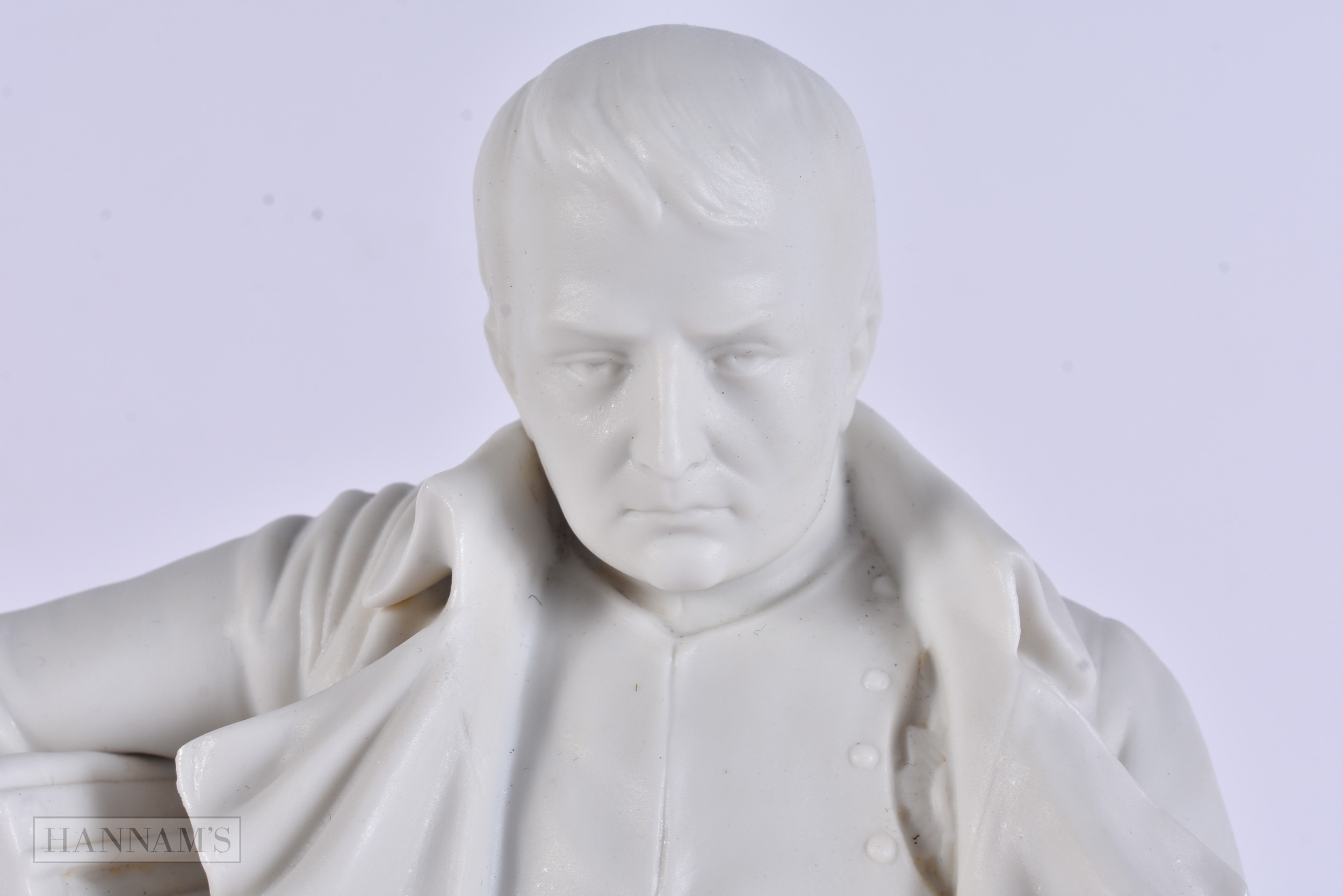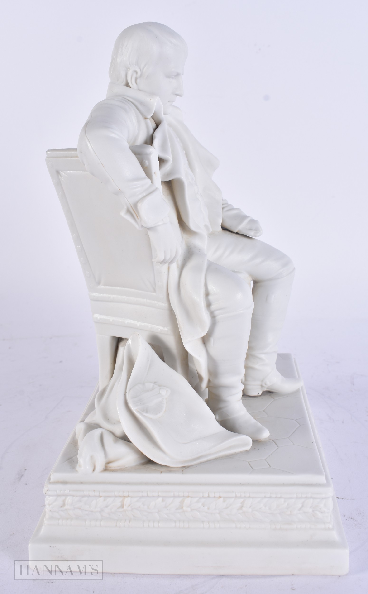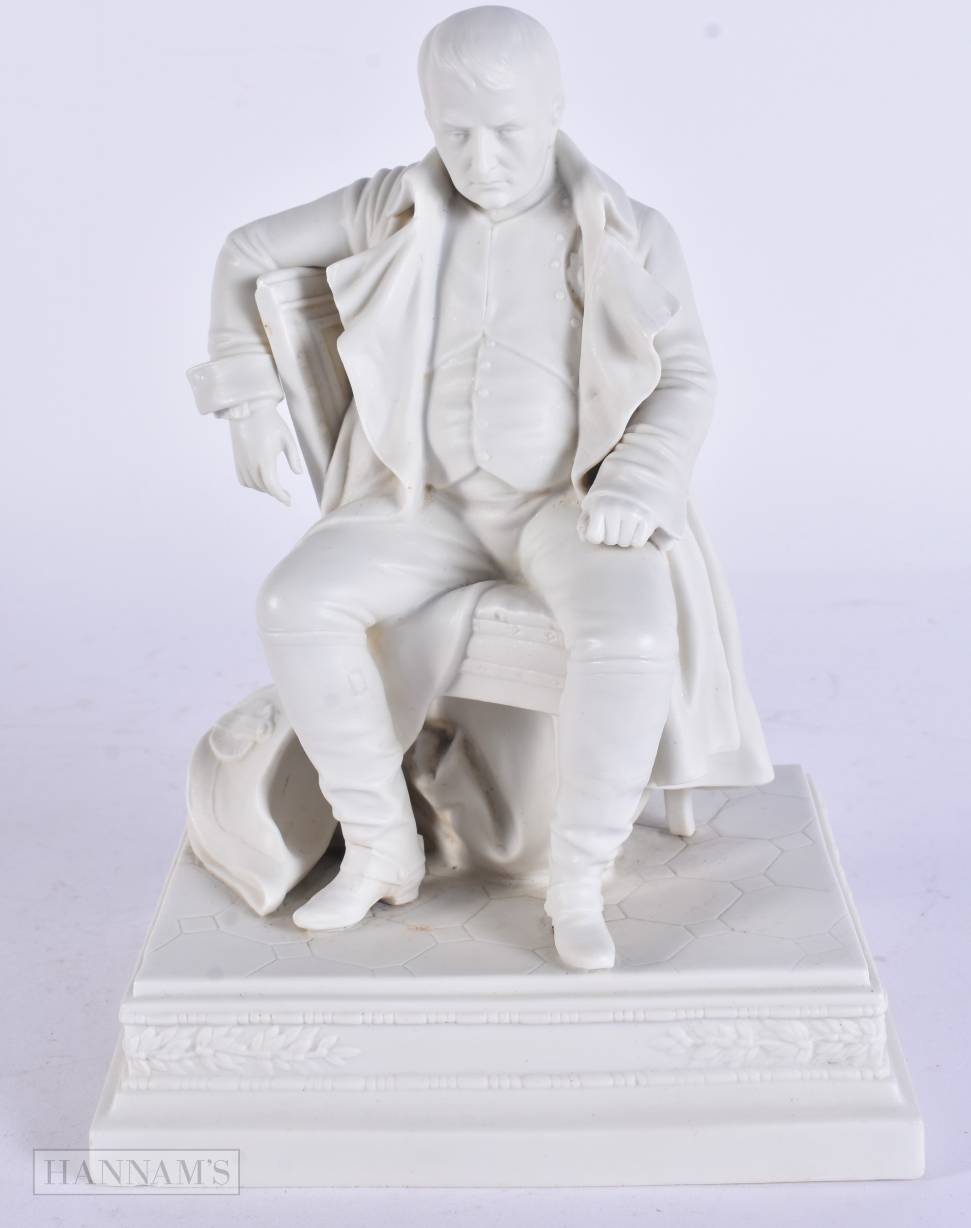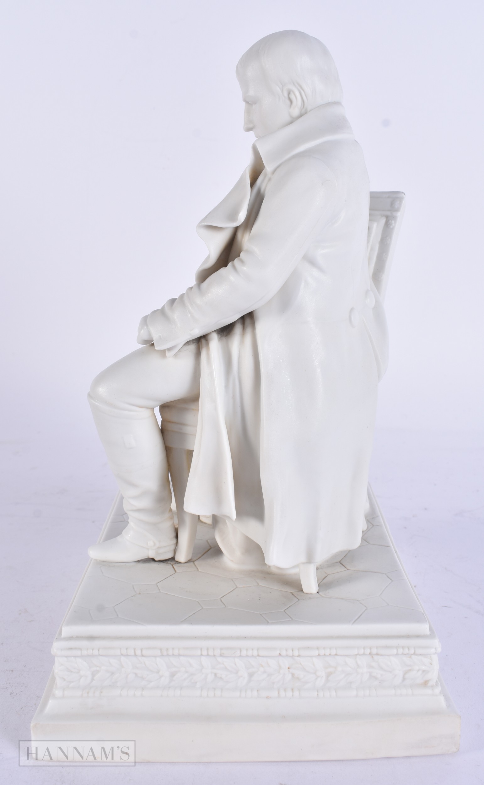 A RARE 19TH CENTURY FRENCH PARIAN WARE FIGURE OF NAPOLEON modelled seated. 24 cm x 15cm.