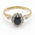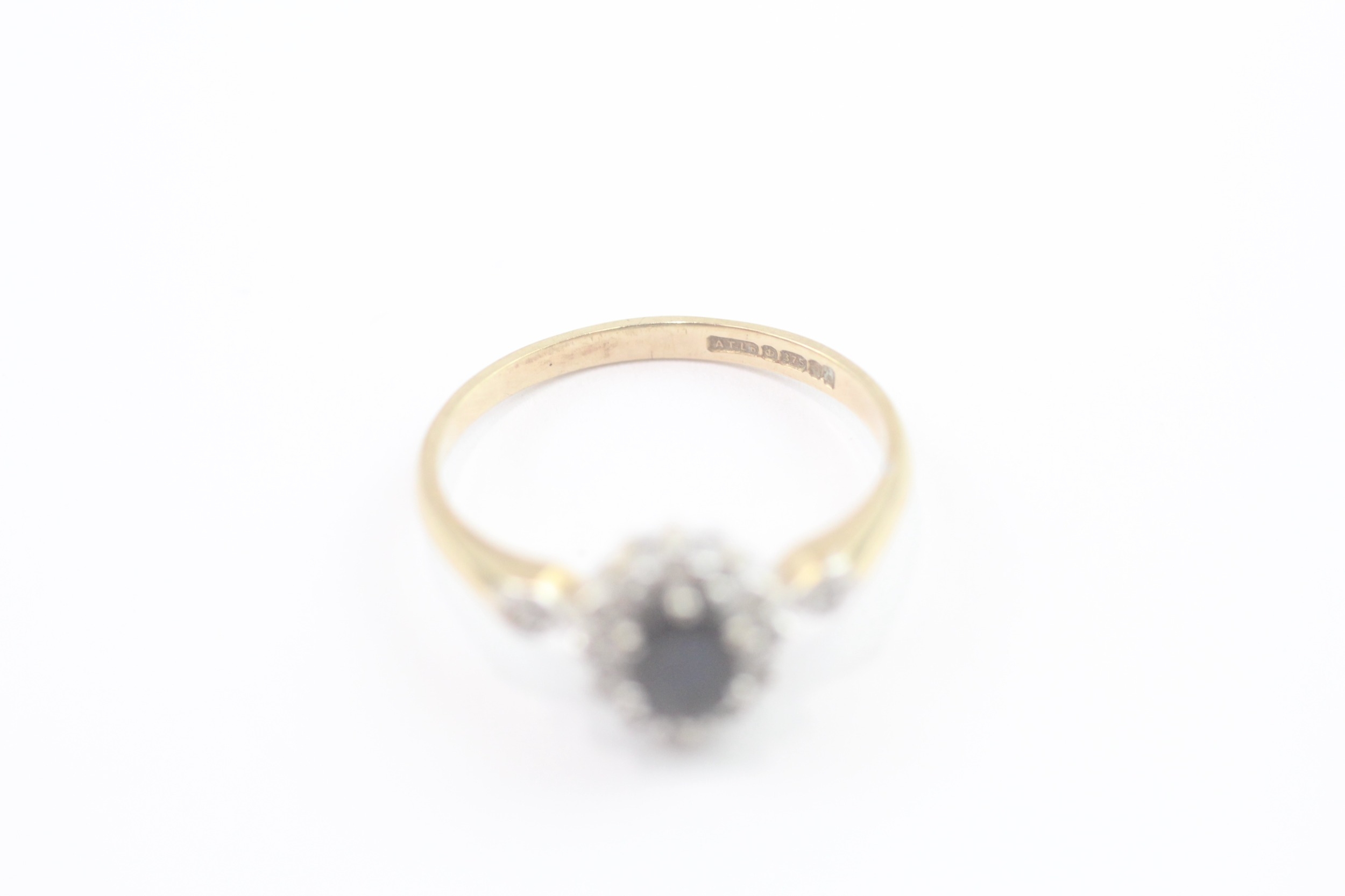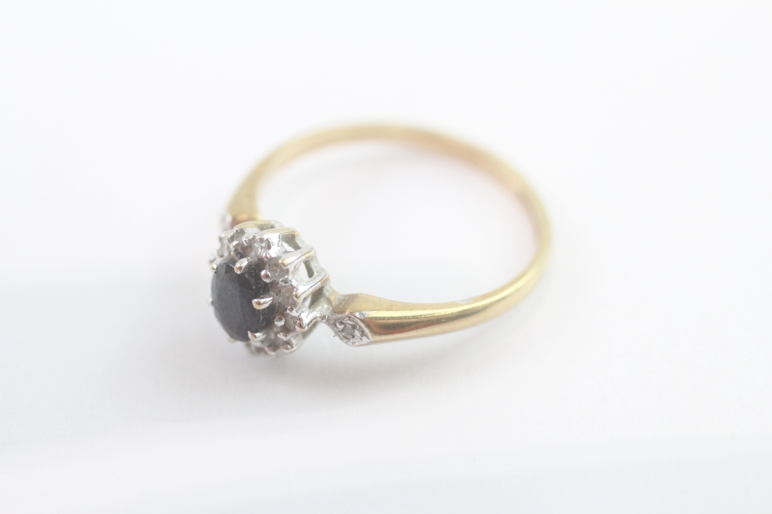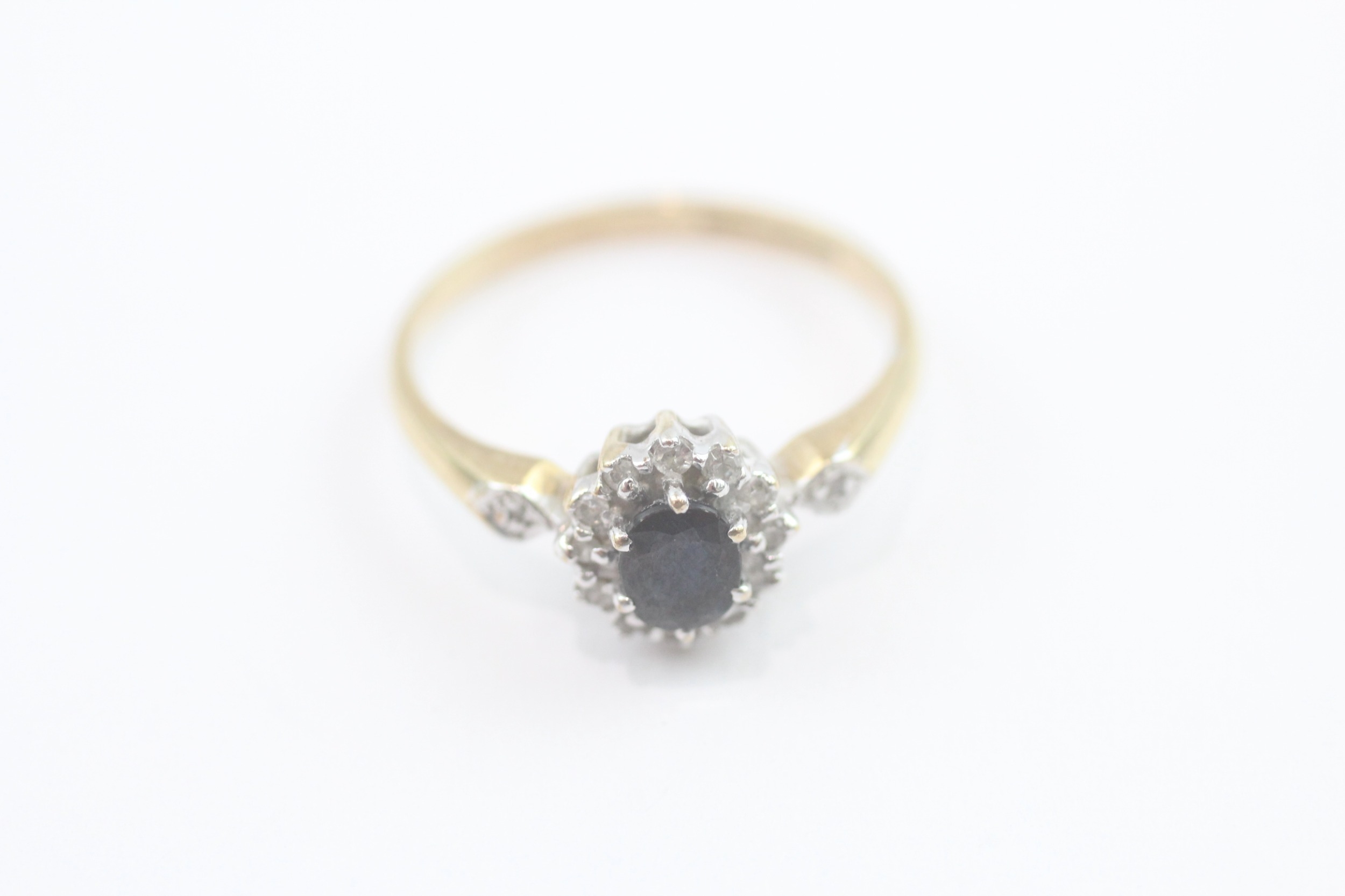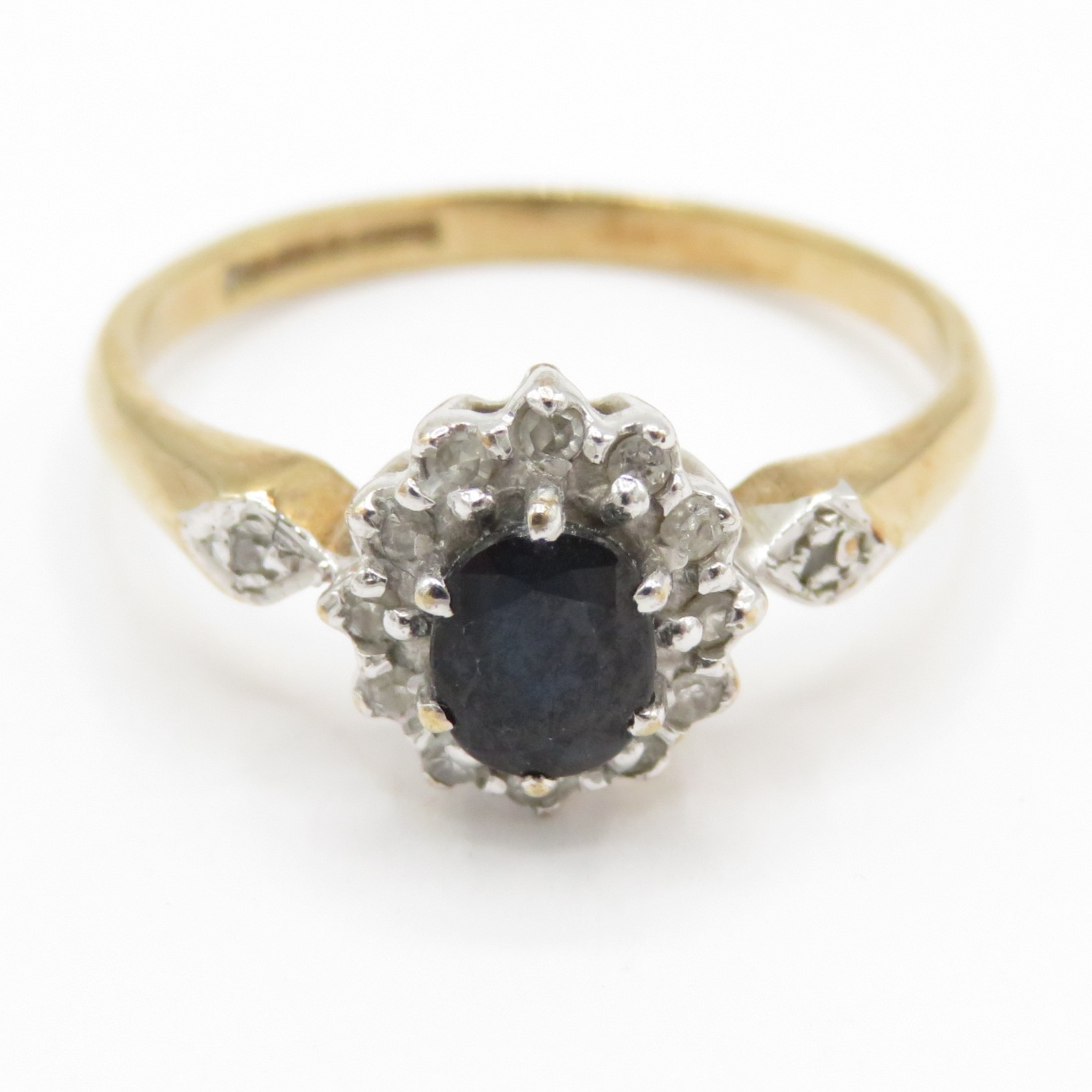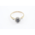 9ct gold diamond and sapphire cluster ring (1.9g) Size N