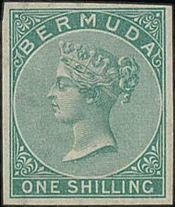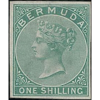 1/- Green, imperforate plate proof on gummed Crown CC paper, scarce. Photo on Page 18.
