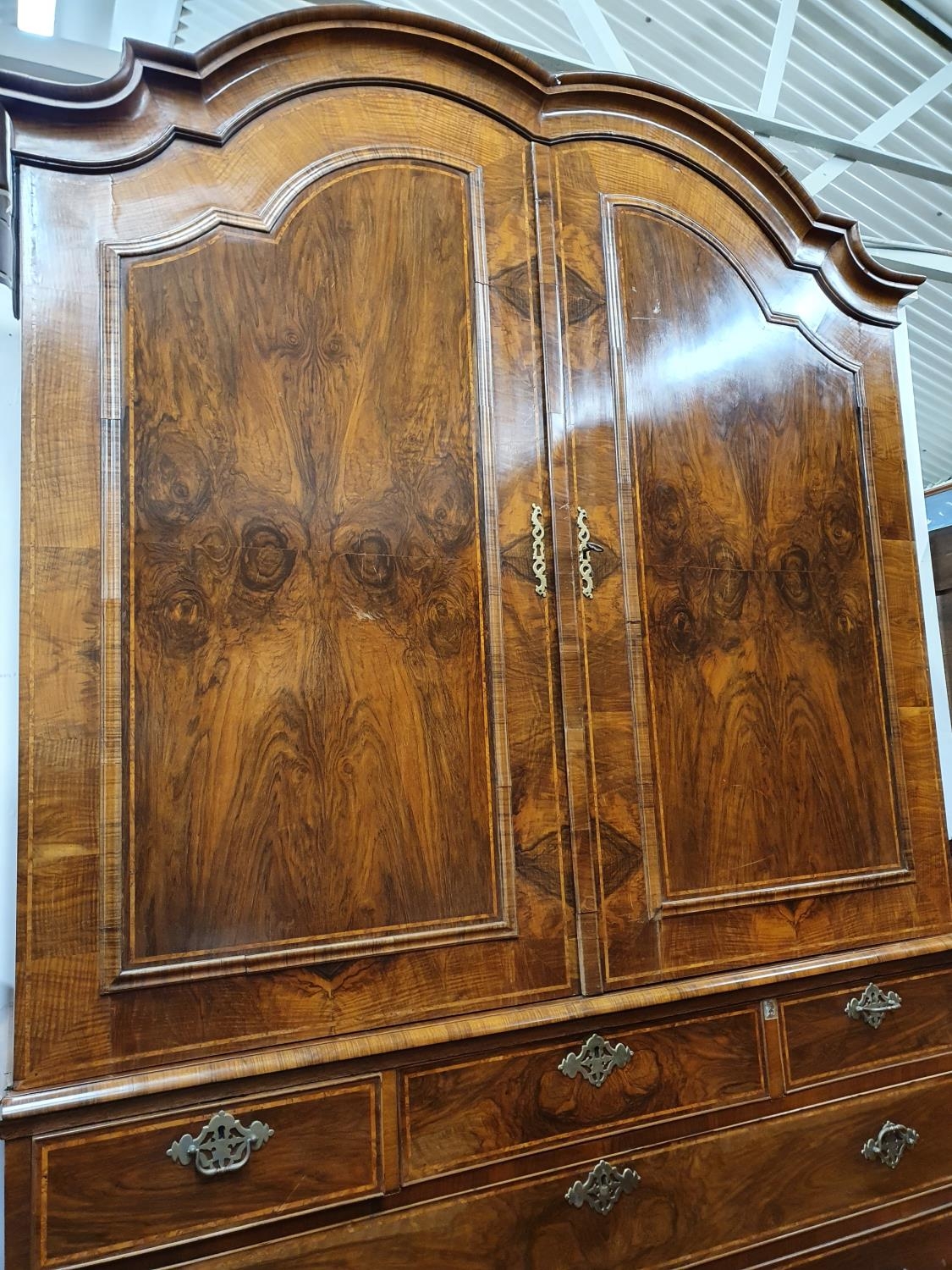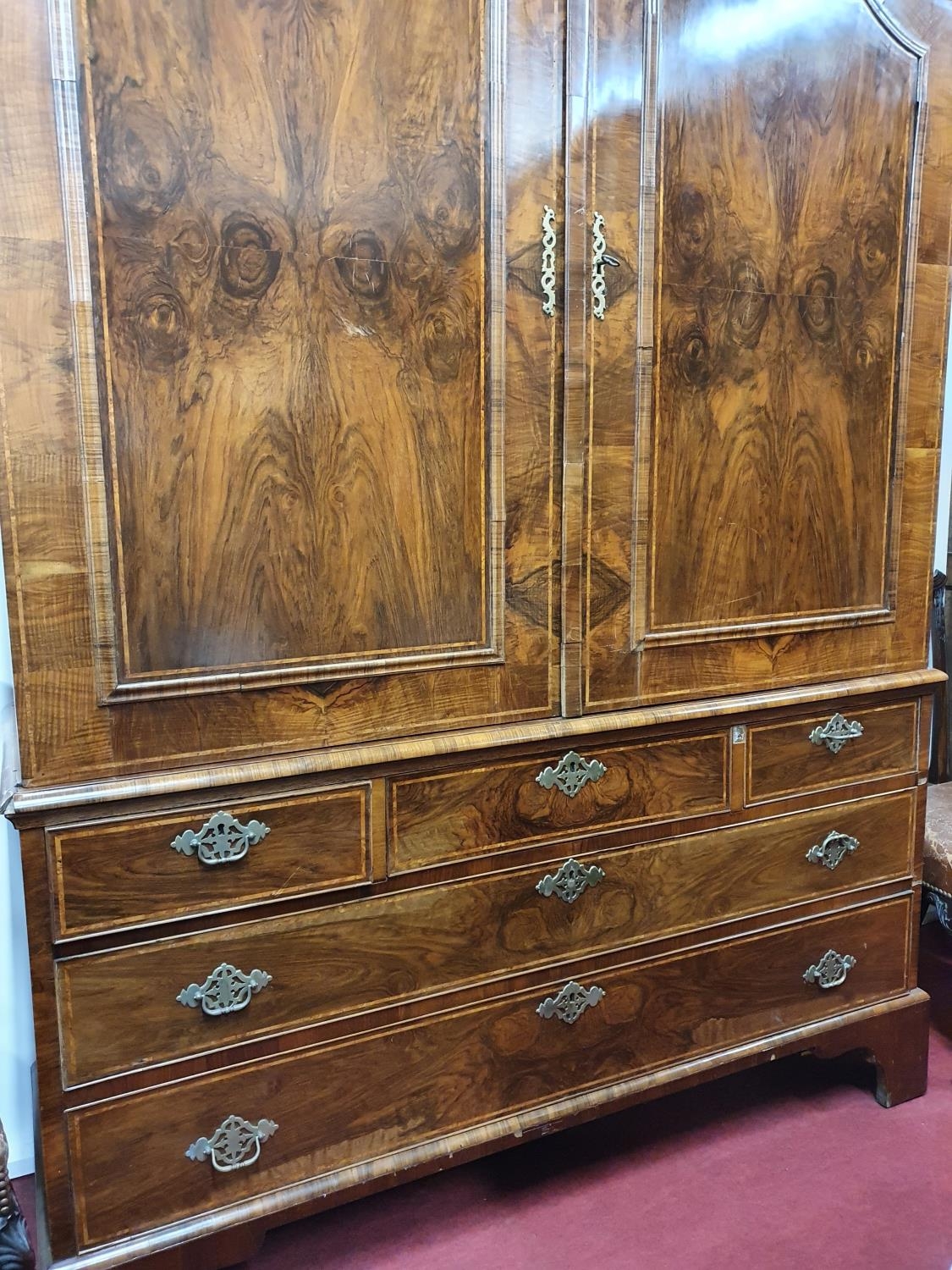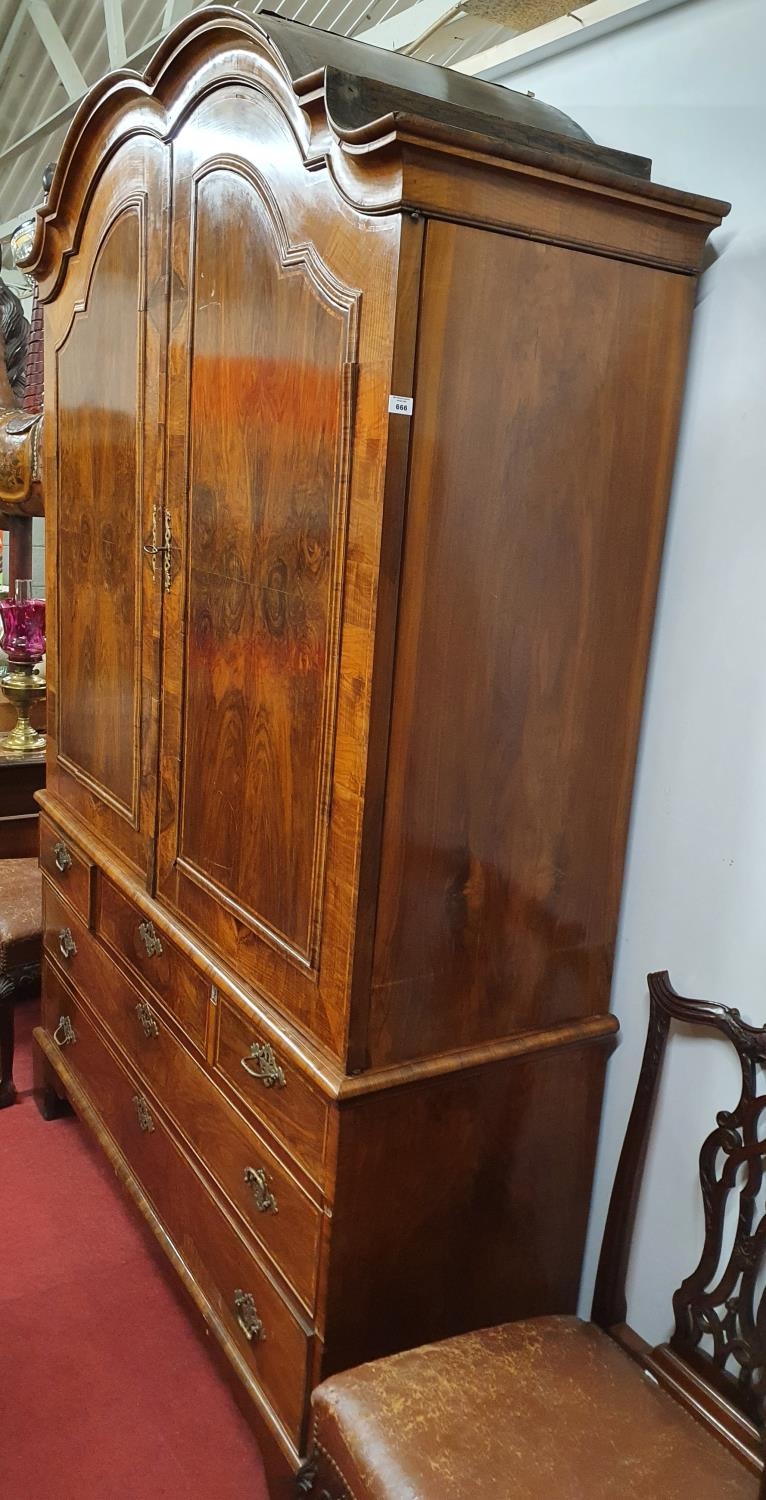 A superb quality 19th Century Walnut Linen Press with shelved upper section and drawered base. 160 x D 53 x H 235 cms approx.