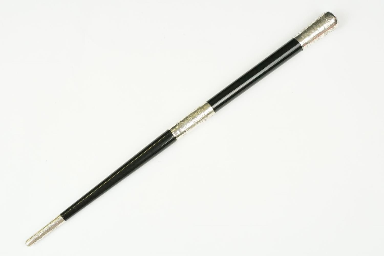 An early 20th century Conductors Baton with hallmarked sterling silver mounts, maker marker for Oskar Olsen and dated for 1927.