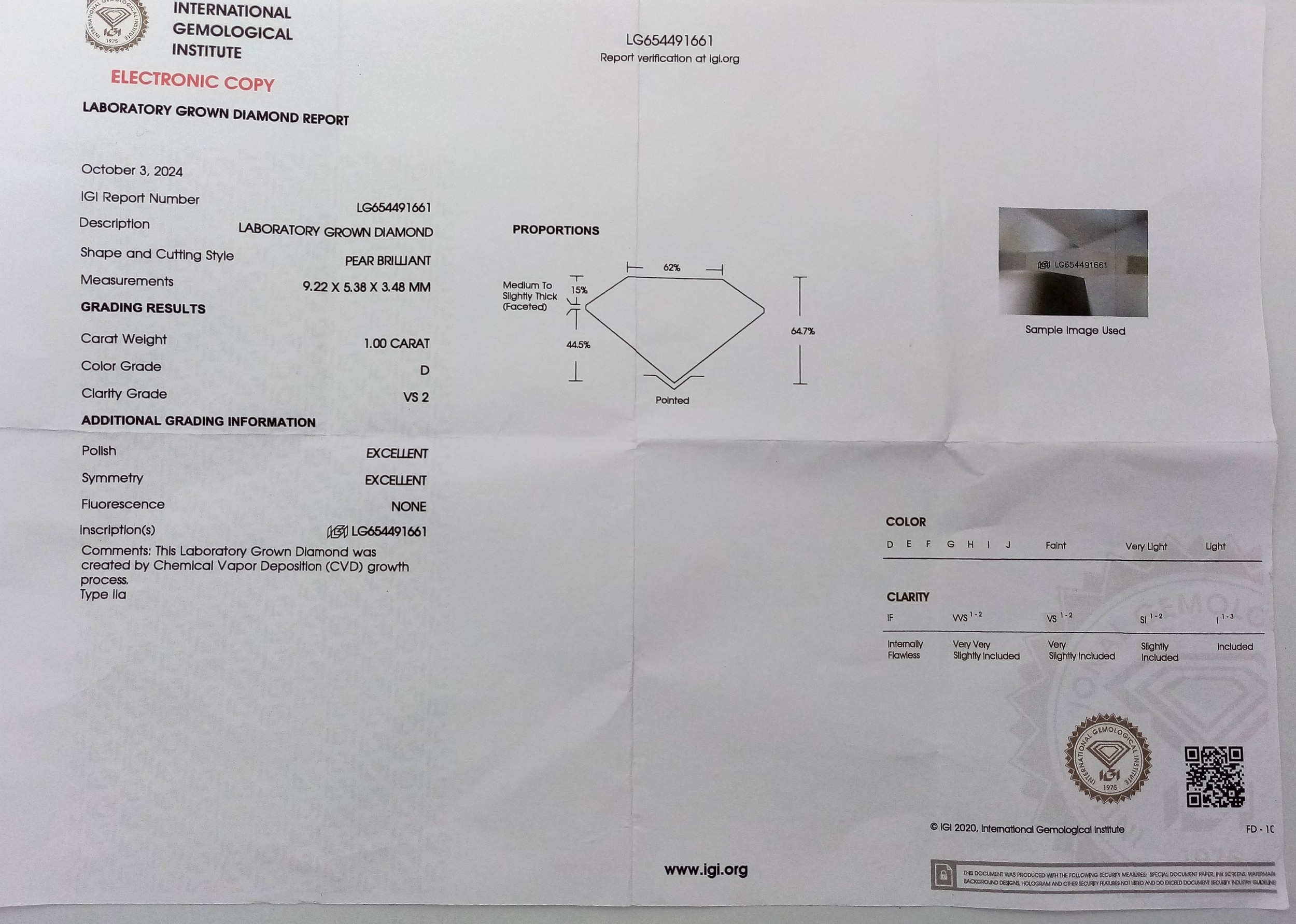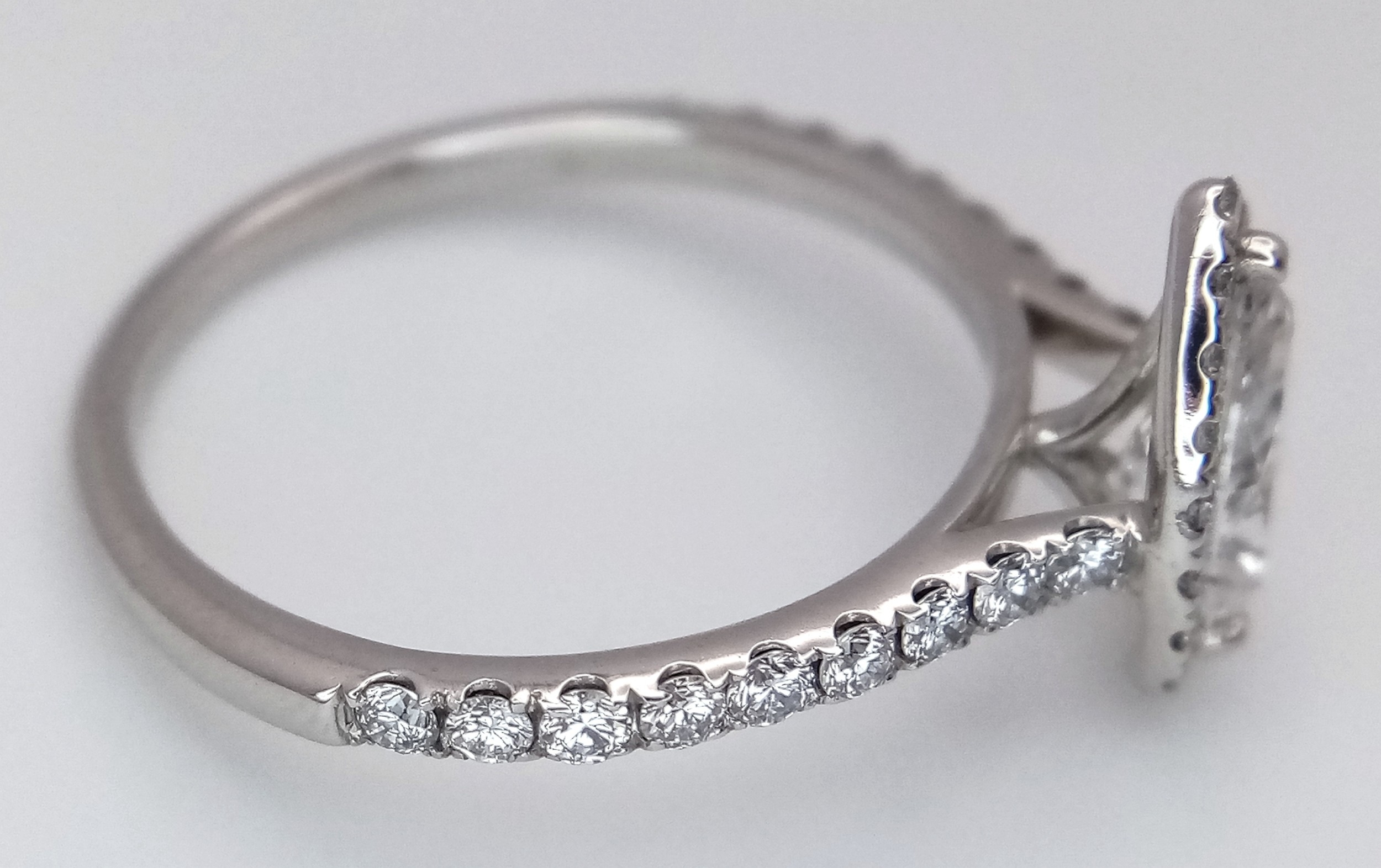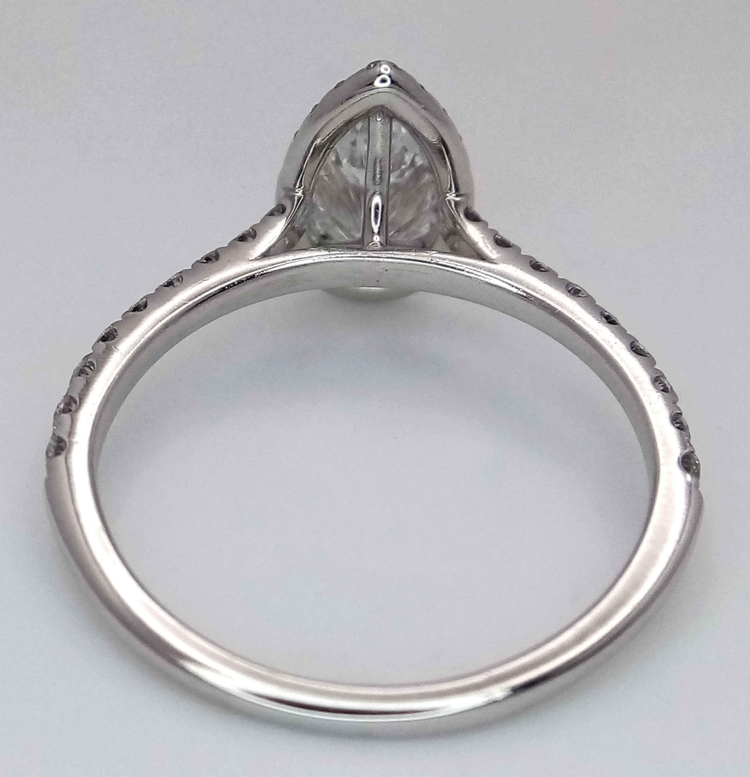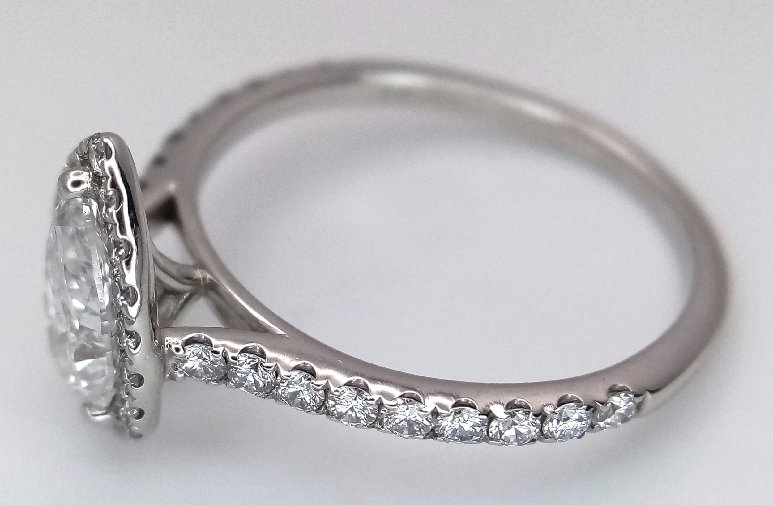 A Platinum and Lab Diamond Dress Ring. 1ct pear brilliant cut diamond having D colour with VS2 clarity. A further 0.37ctw of diamond accents. Size R. 2.6g total weight. Comes with an electronic copy of an IGI certificate. Ref:26260.
