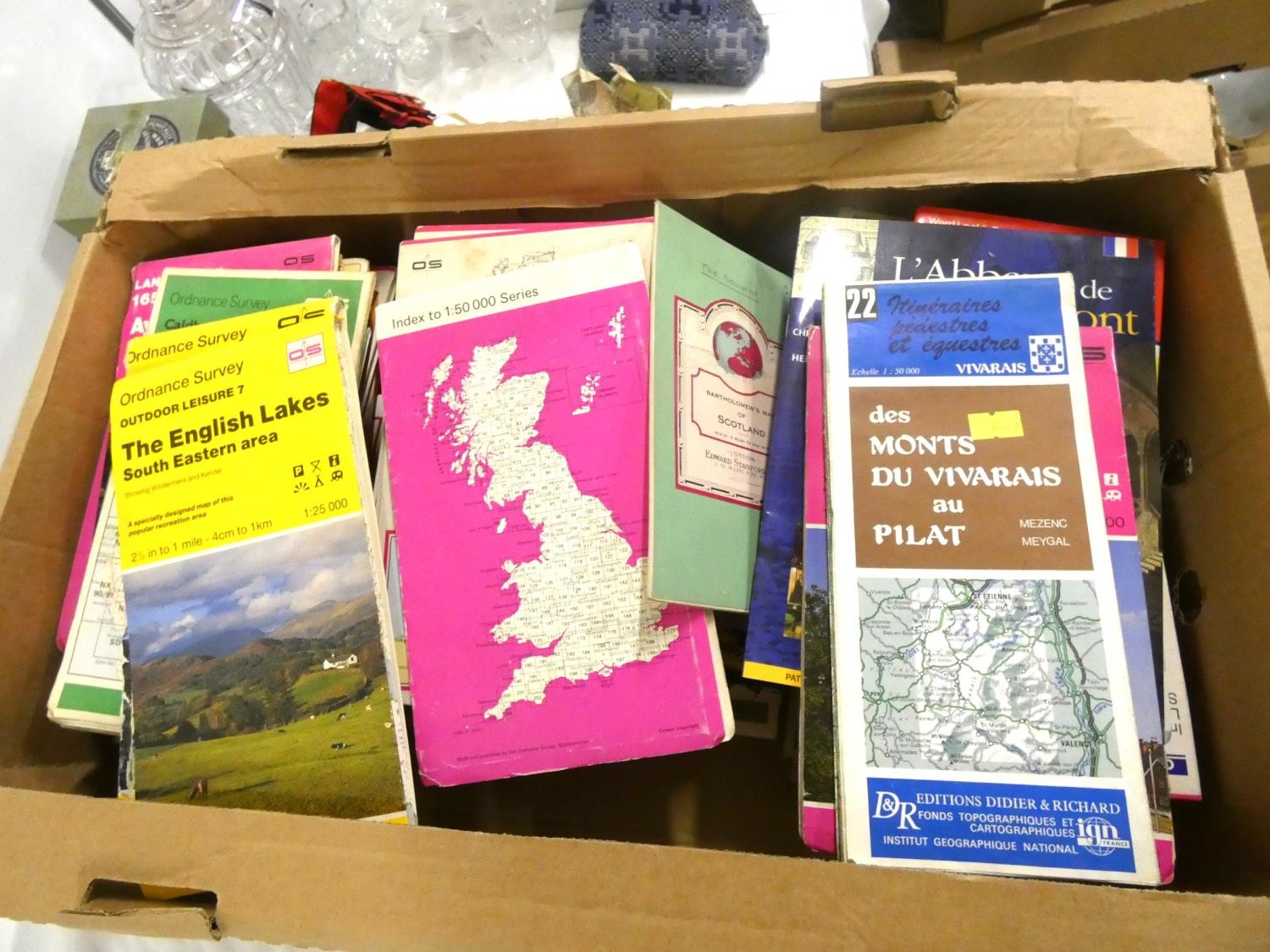 Box of various folding maps, Aylesbury, Edinburgh and the Lakes.