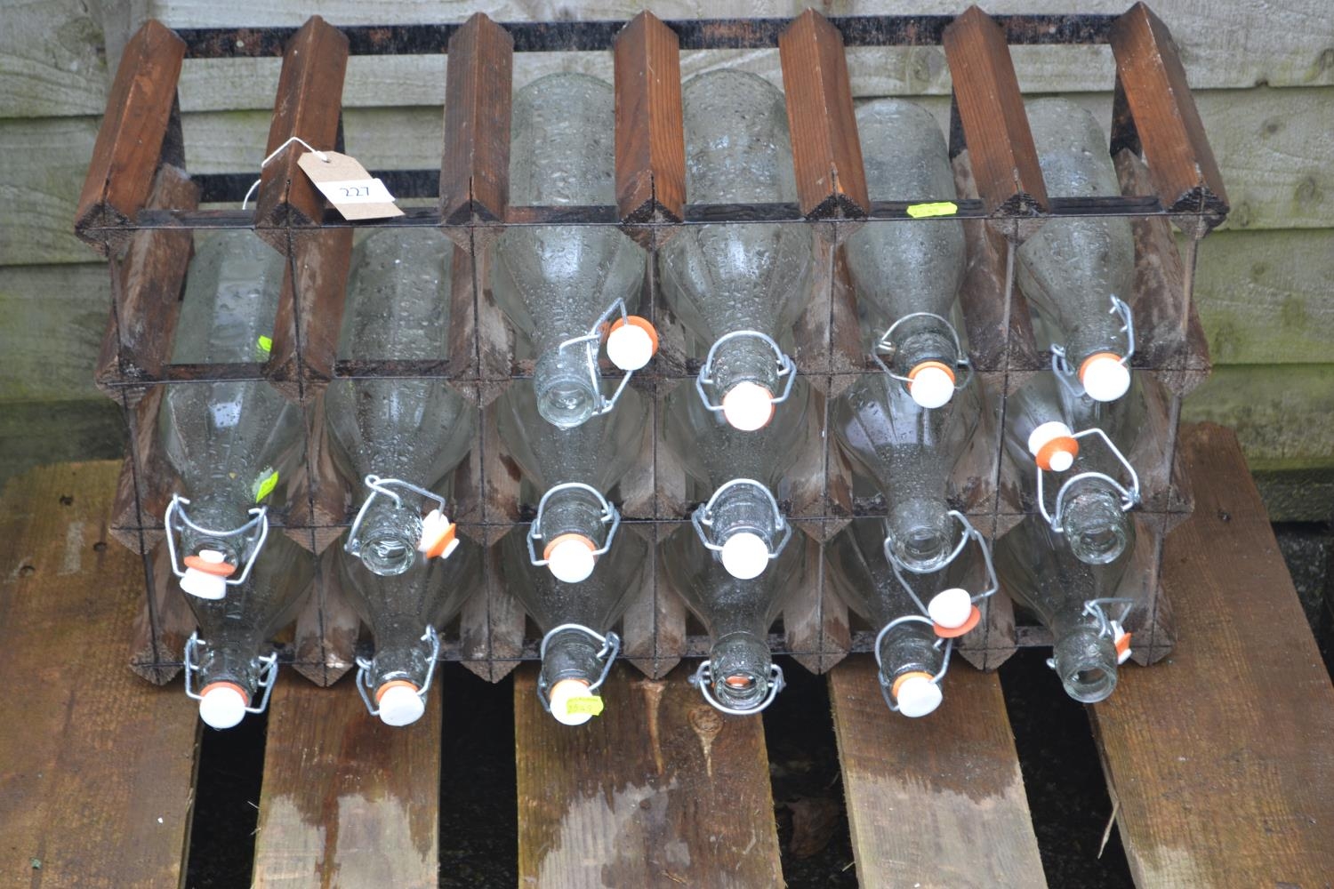 16 re-sealable bottles in rack