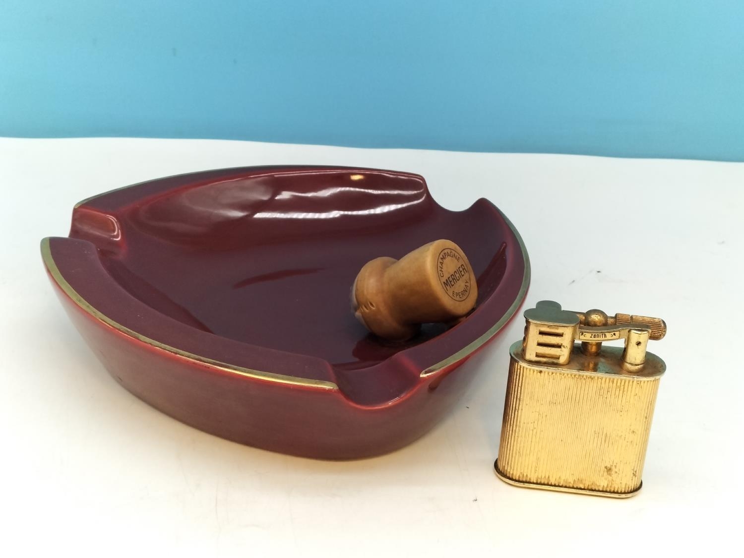 French Ceramic Advertising Ashtray for Mercier Champagne plus a Zenith Table Lighter.