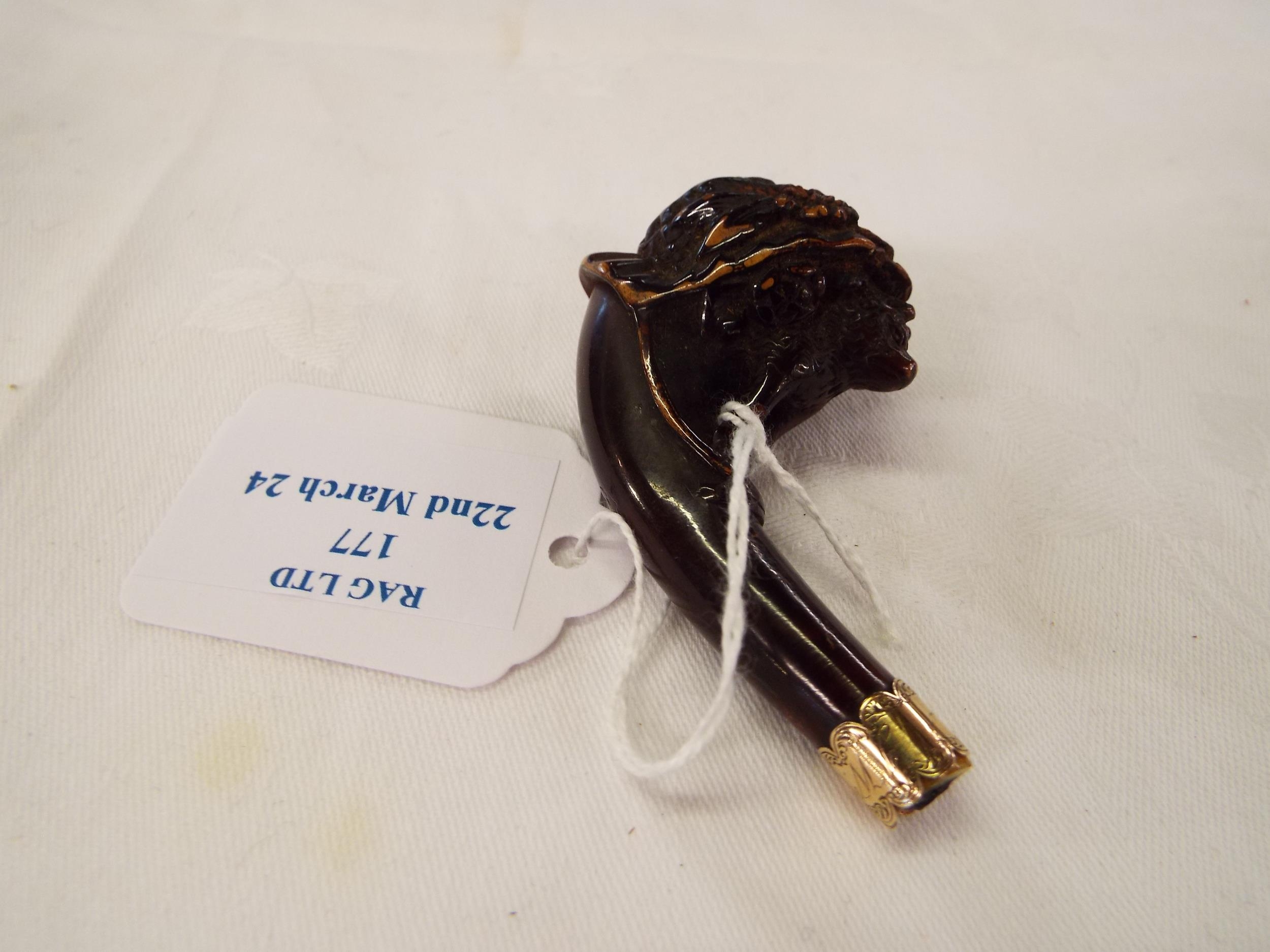 A miniature Black Forest bear pipe having yellow metal mount