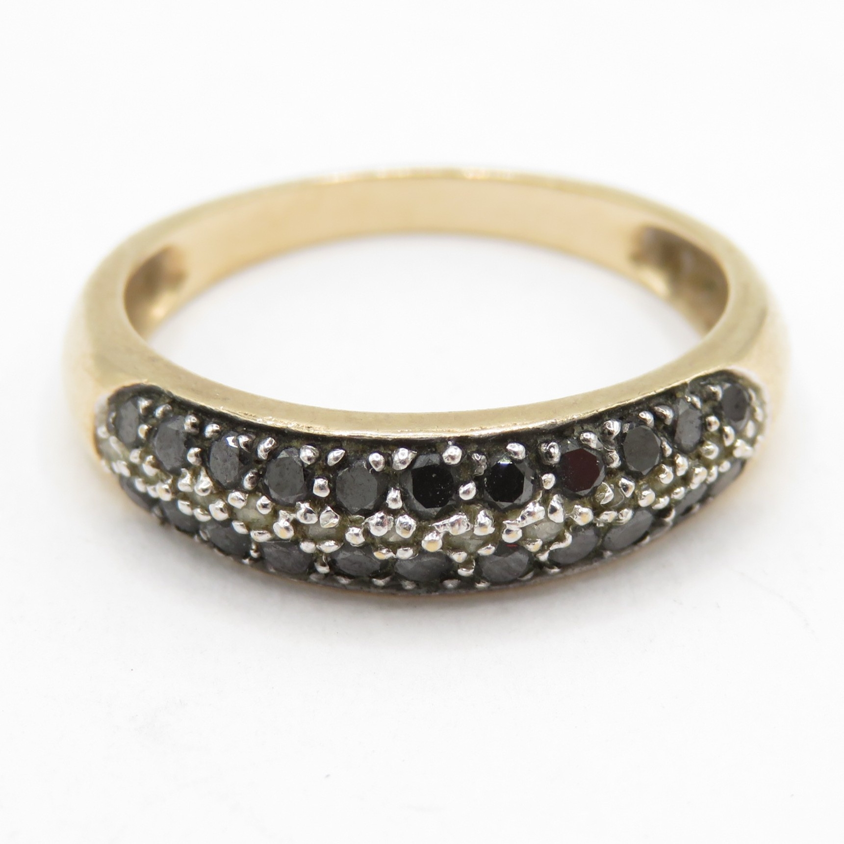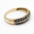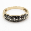 9ct gold diamond and black diamond three row ring (2.4g) Size P