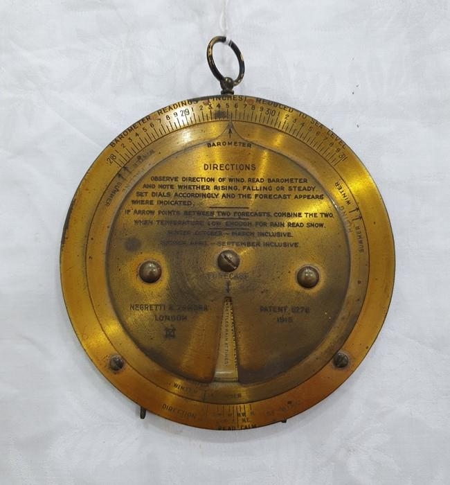 Negretti & Zambra of London patent brass weather forecast easel travel barometer, circa 1915