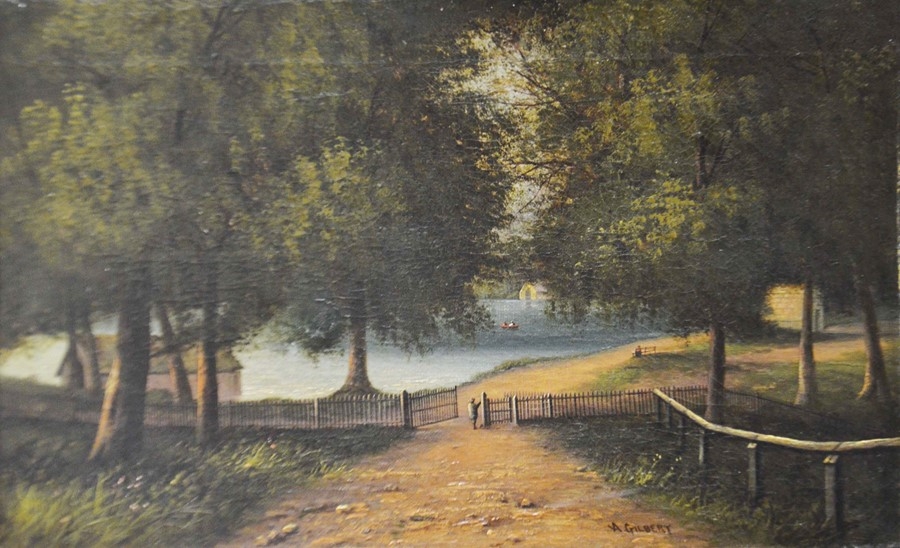 Arthur Gilbert (1819-1895), Lakeside View, oil on canvas, signed, 30cm x 46cm, framed