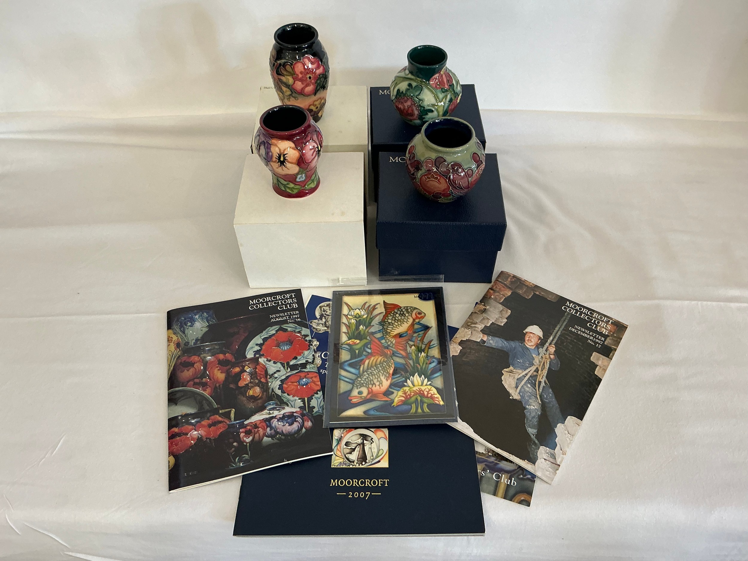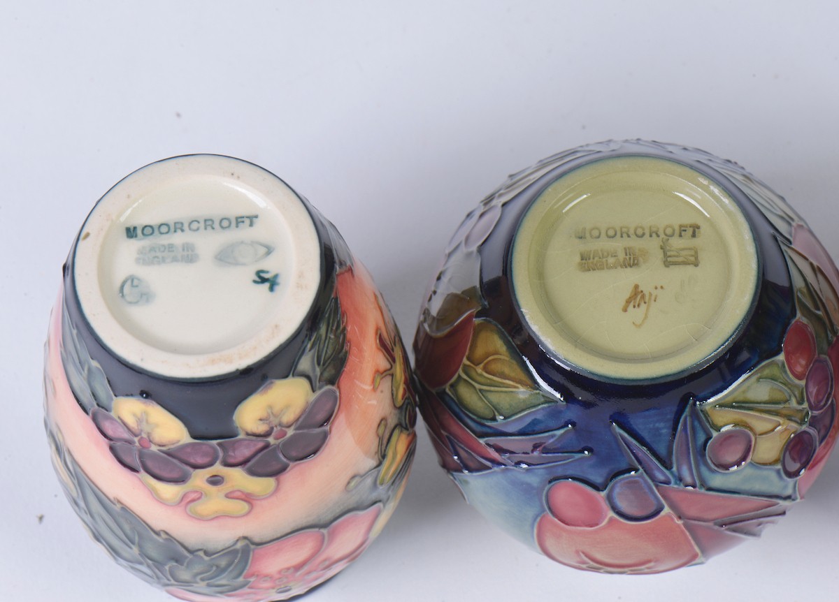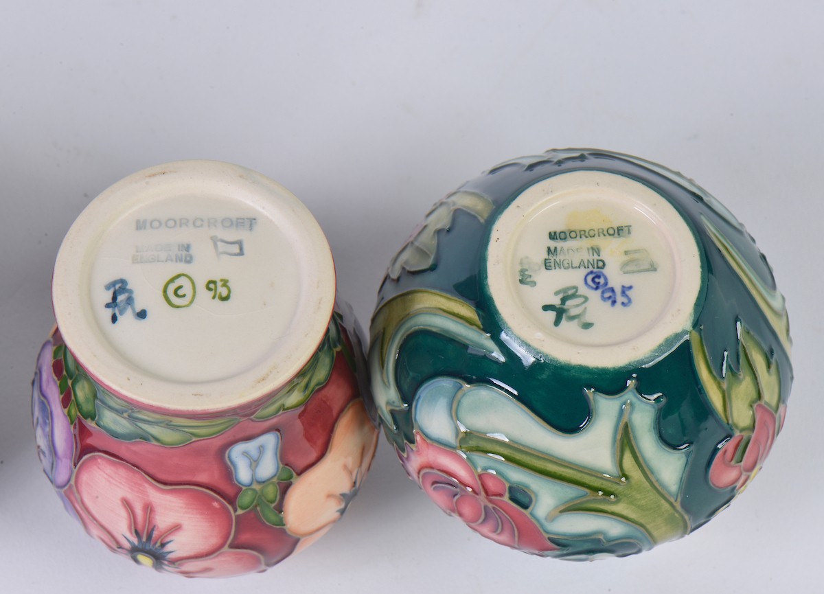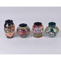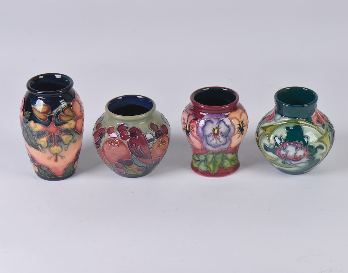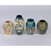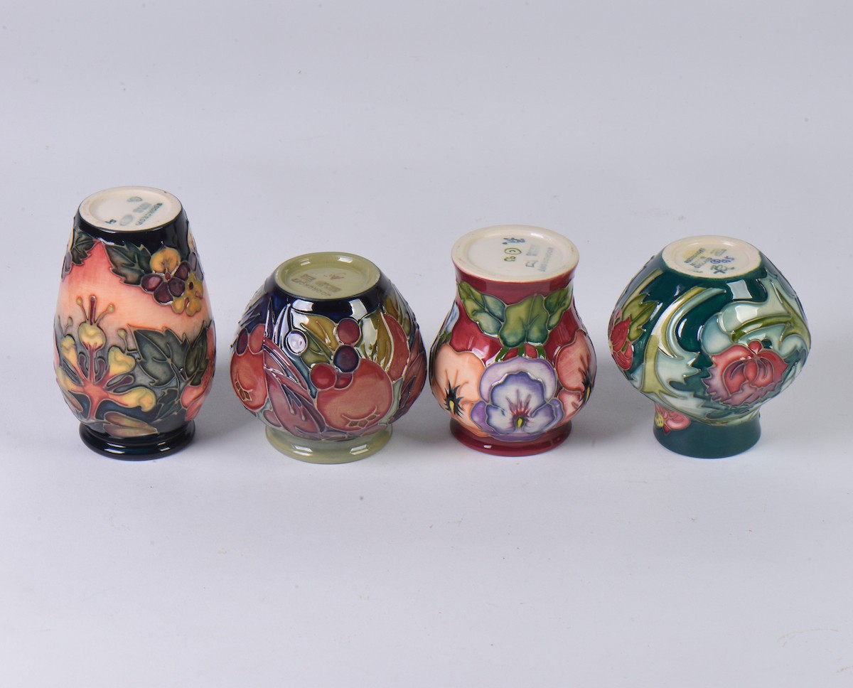 Four various Moorcroft Vases Complete with Boxes & Paperwork. Measuring: 10cms. (Approx).