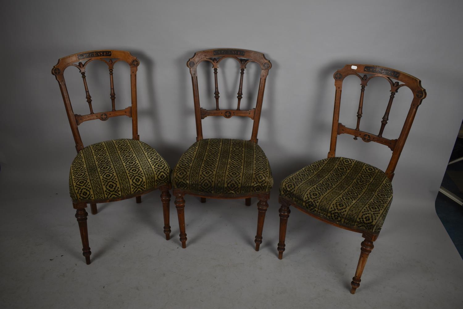 Three Late 19th/Early 20th Century Gothic Style Dining Chairs with Spindles and Pierced Backs