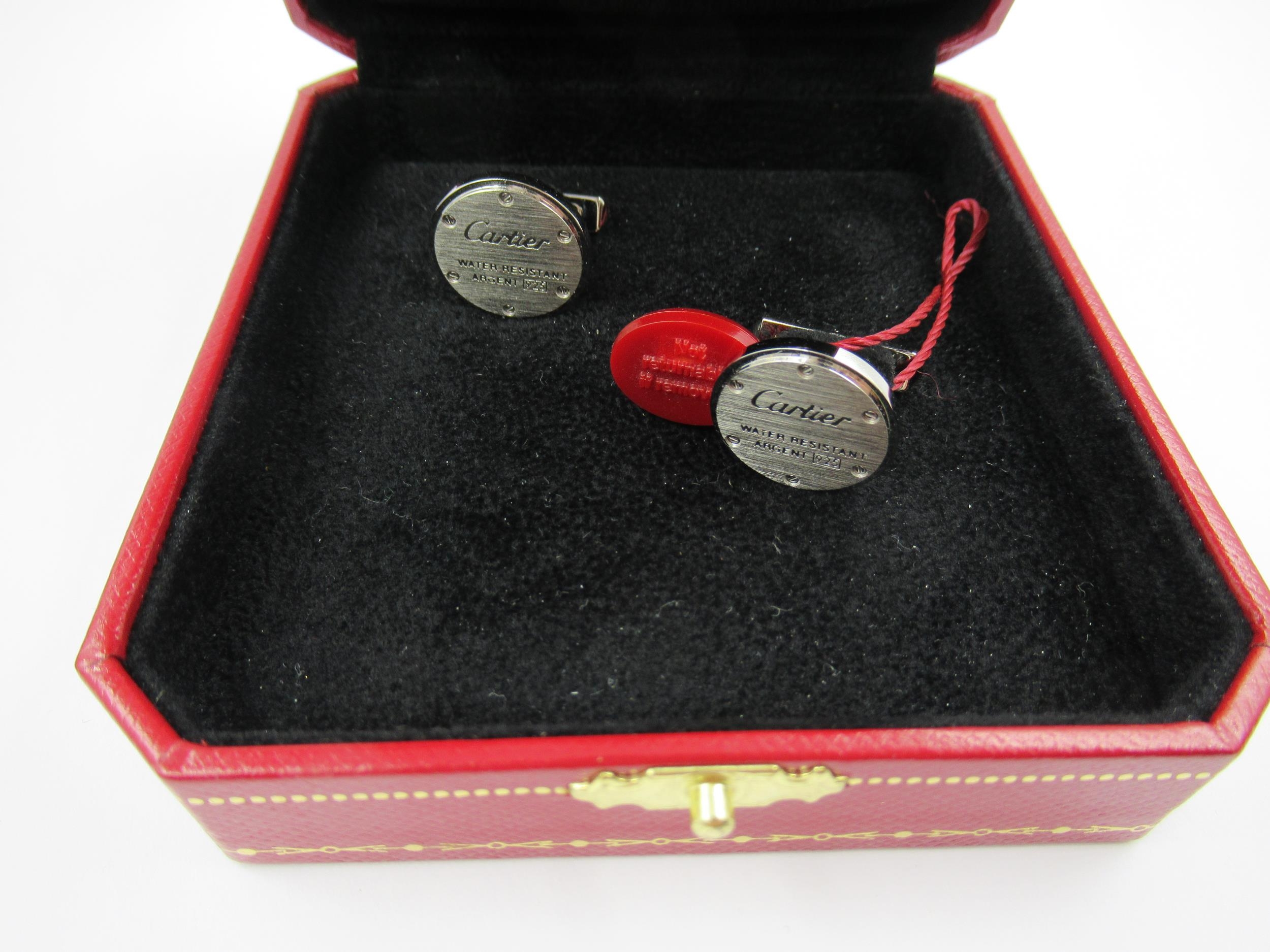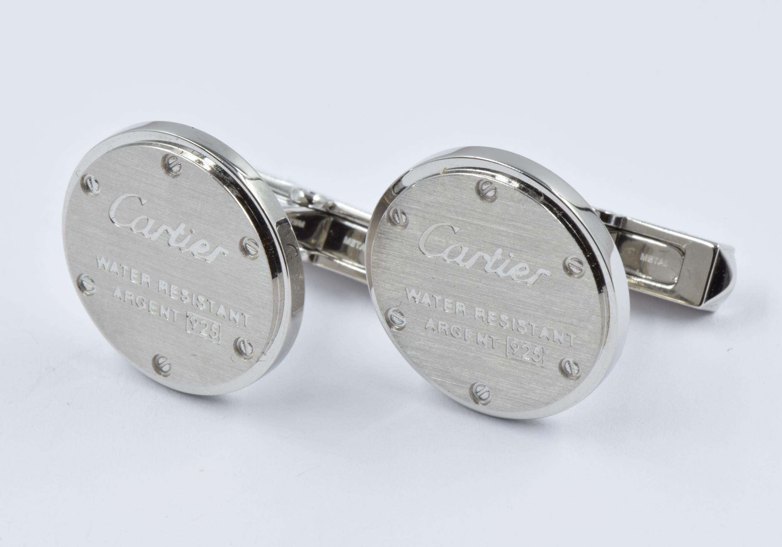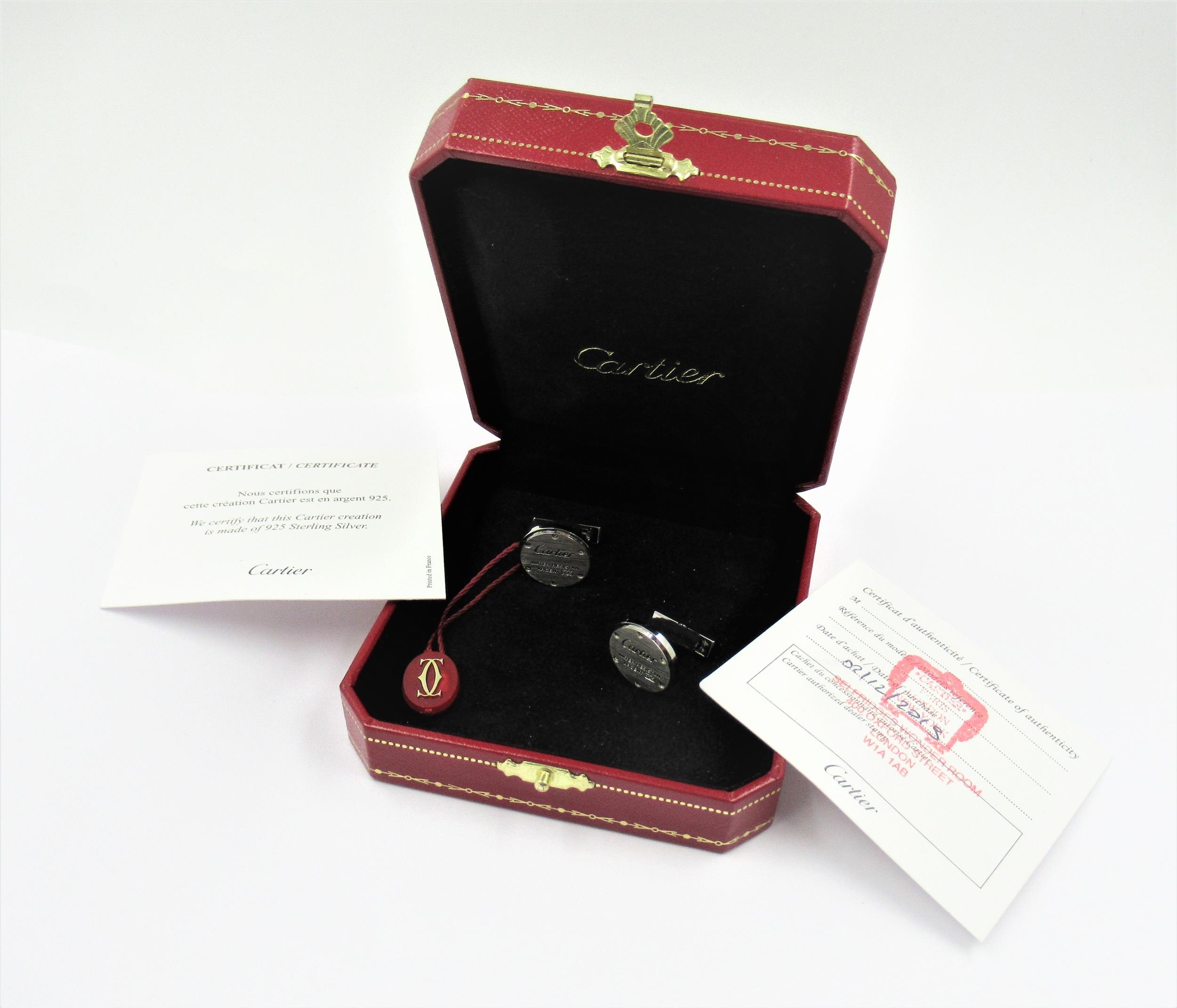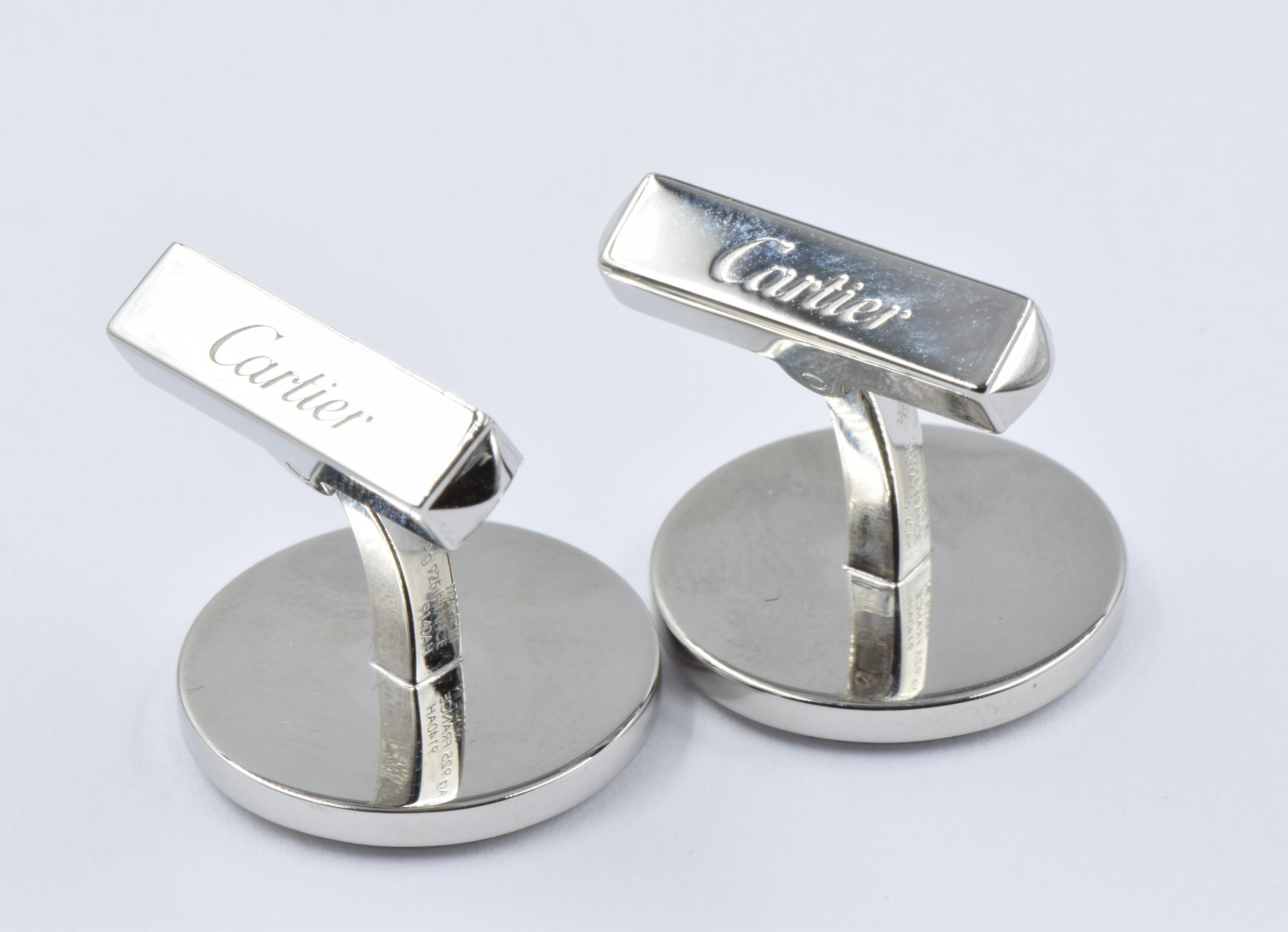 Pair of Cartier silver cufflinks in original box