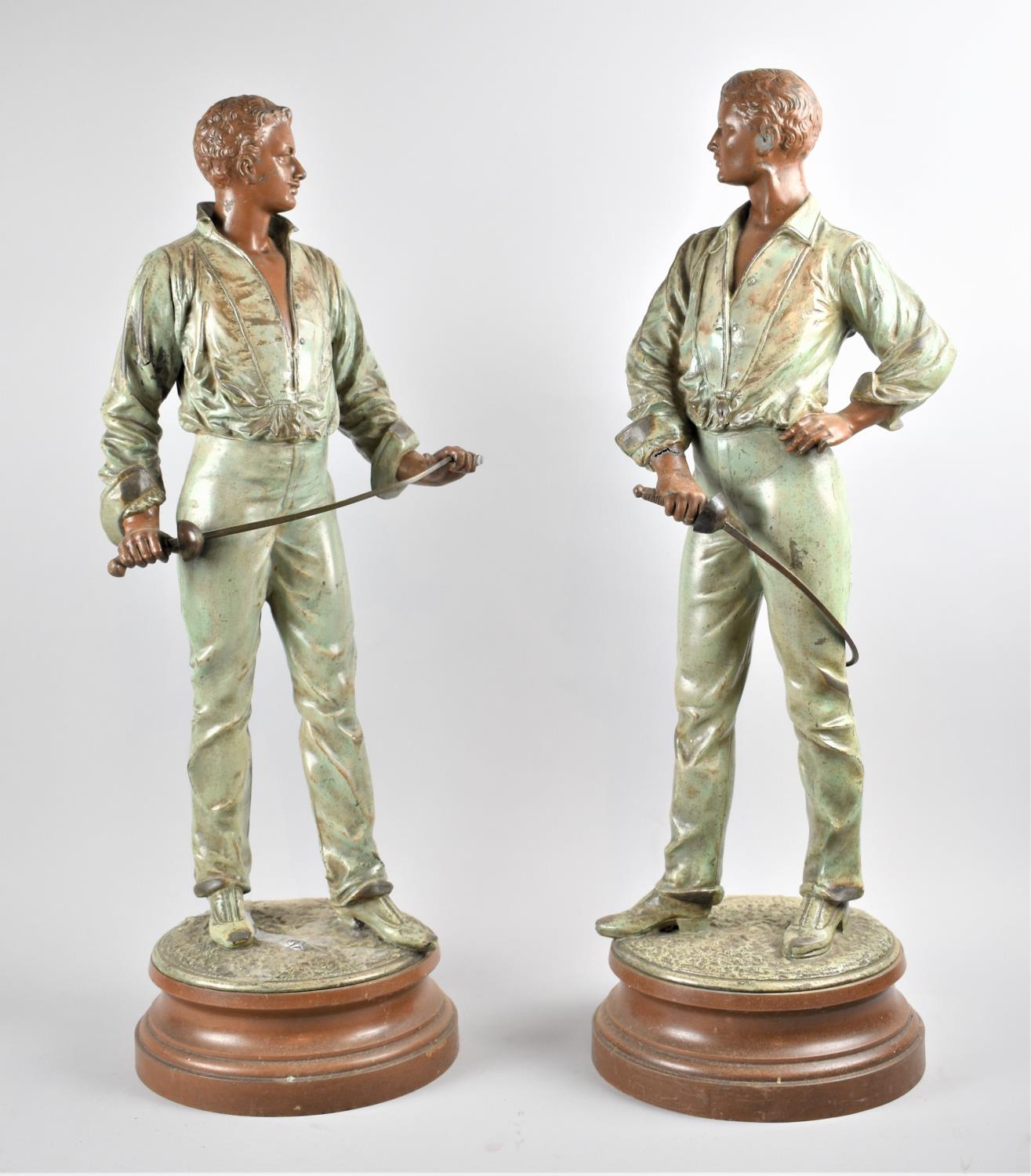 A Pair of French Lacquered Spelter Studies of Fencers After Rene Charles Masse, "Escrimeurs", One Finger Detached But Present, Each 63cm high