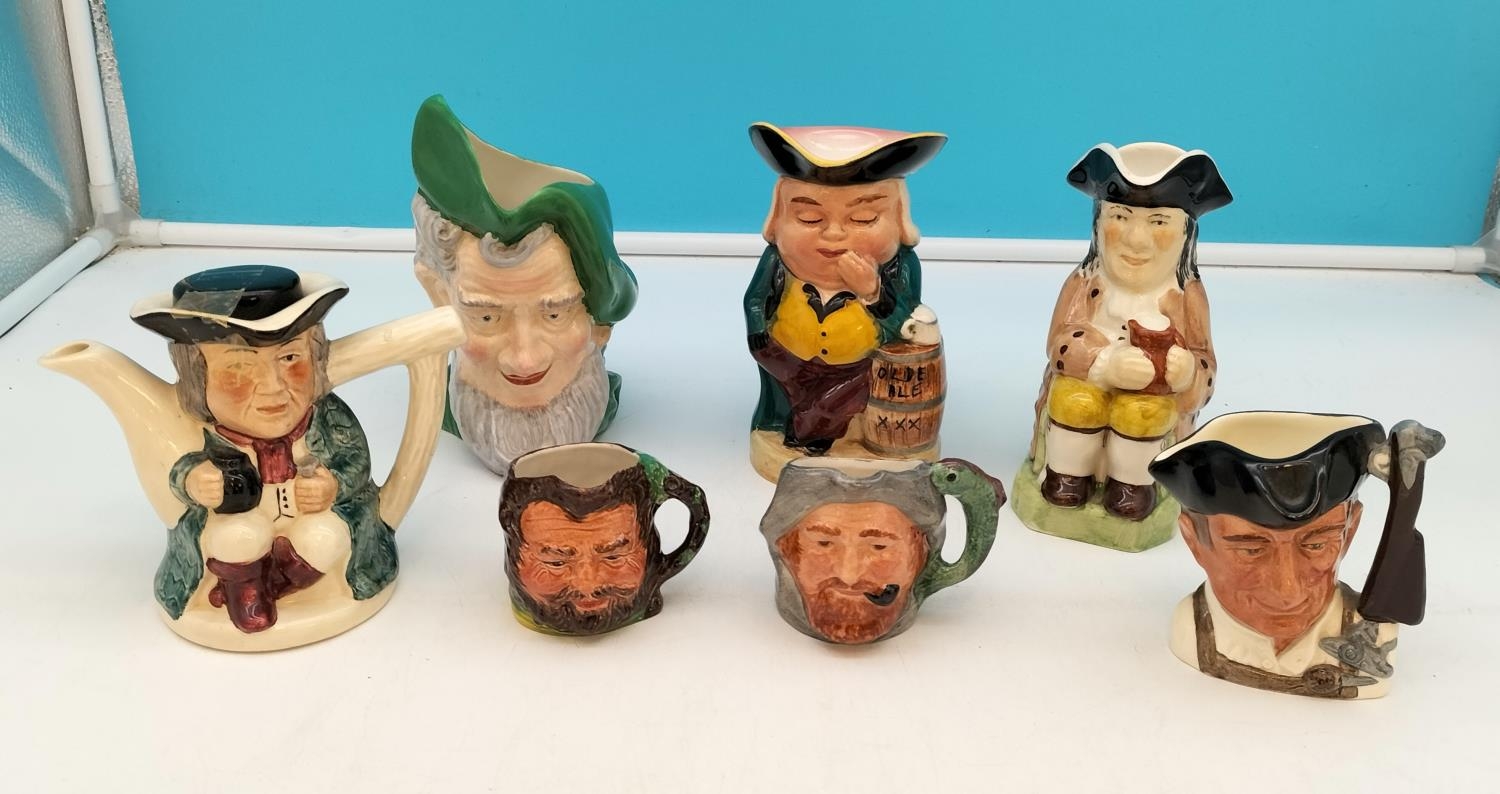 Collection of Ceramic Toby and Character Jugs (7) to include Skipper, Little John, Gun Smith and Moses Teapot. Various Makers to include Wood Potters.