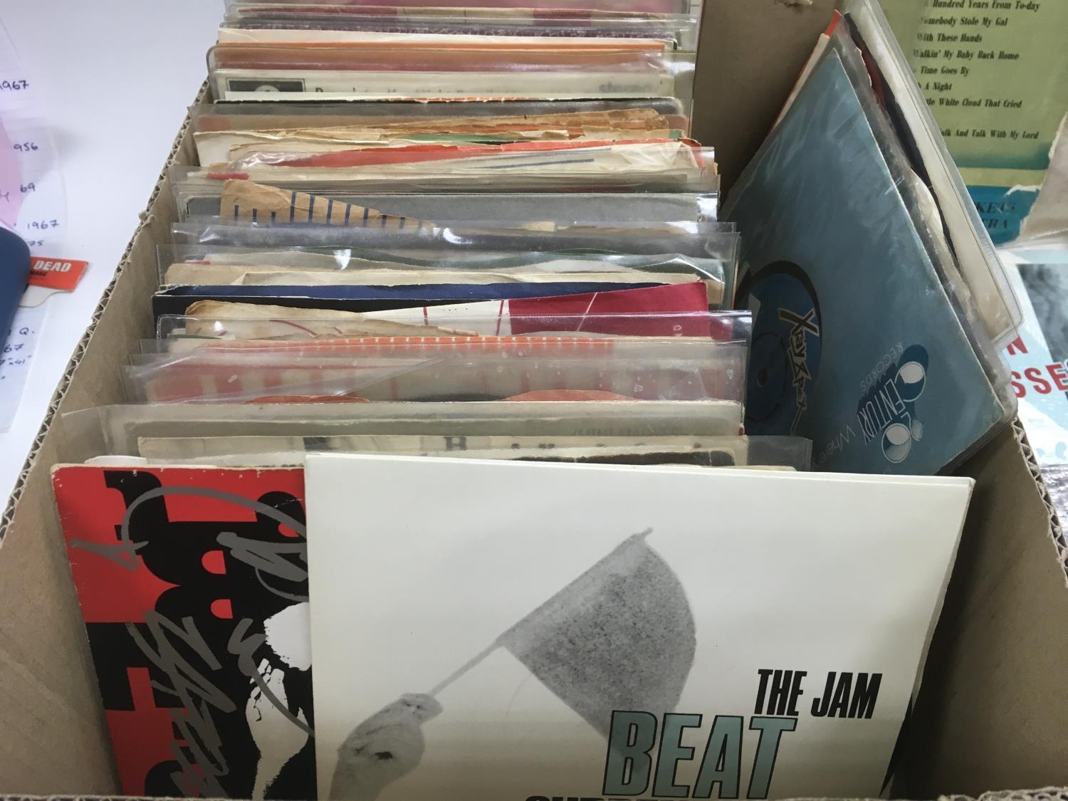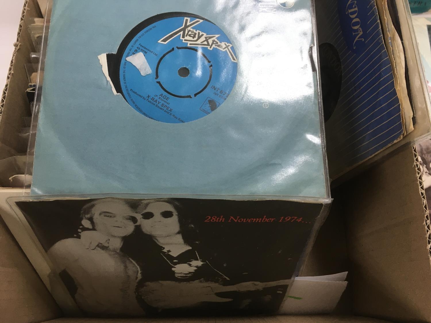 A box of 7 inch singles and EPs by various artists plus some 10 inch records.