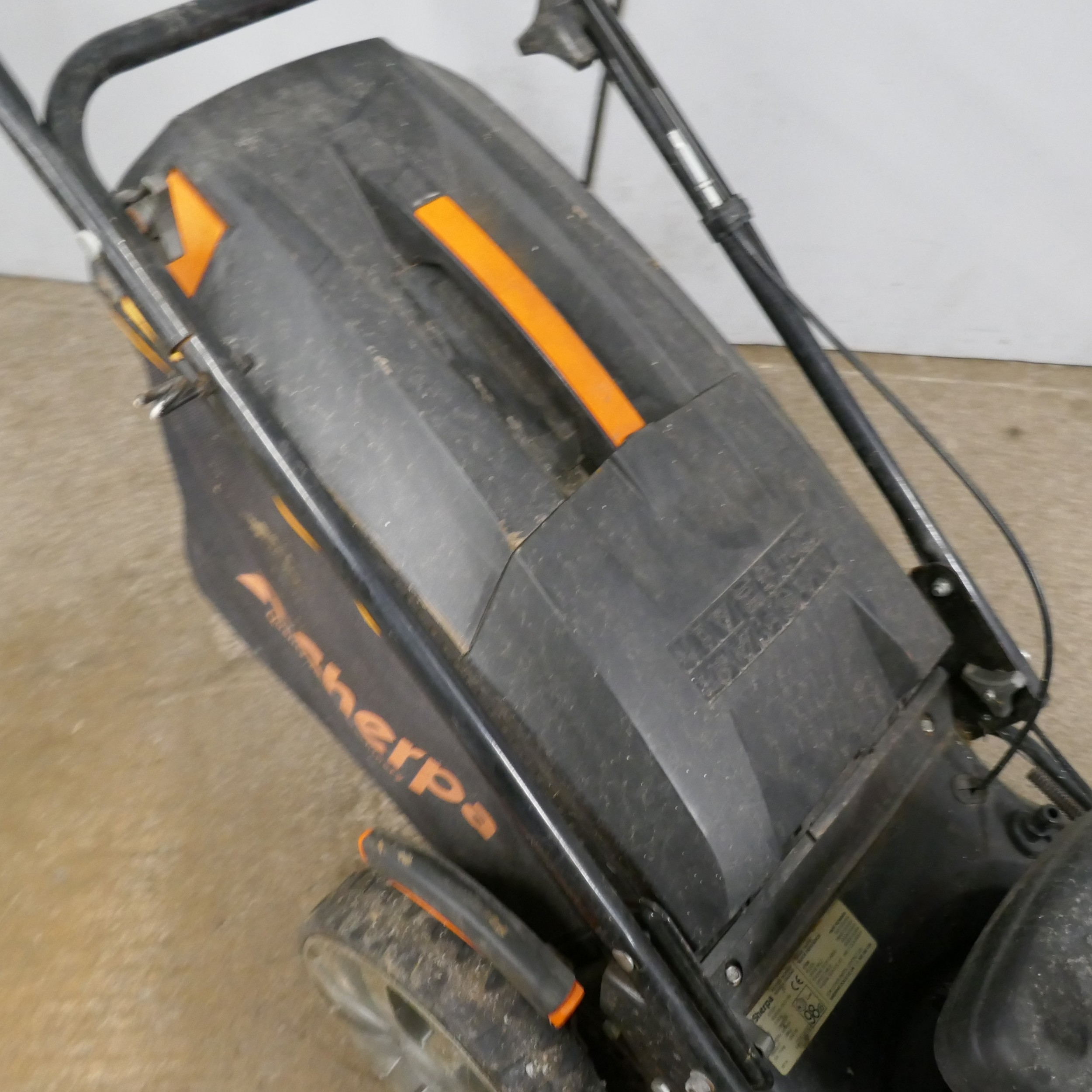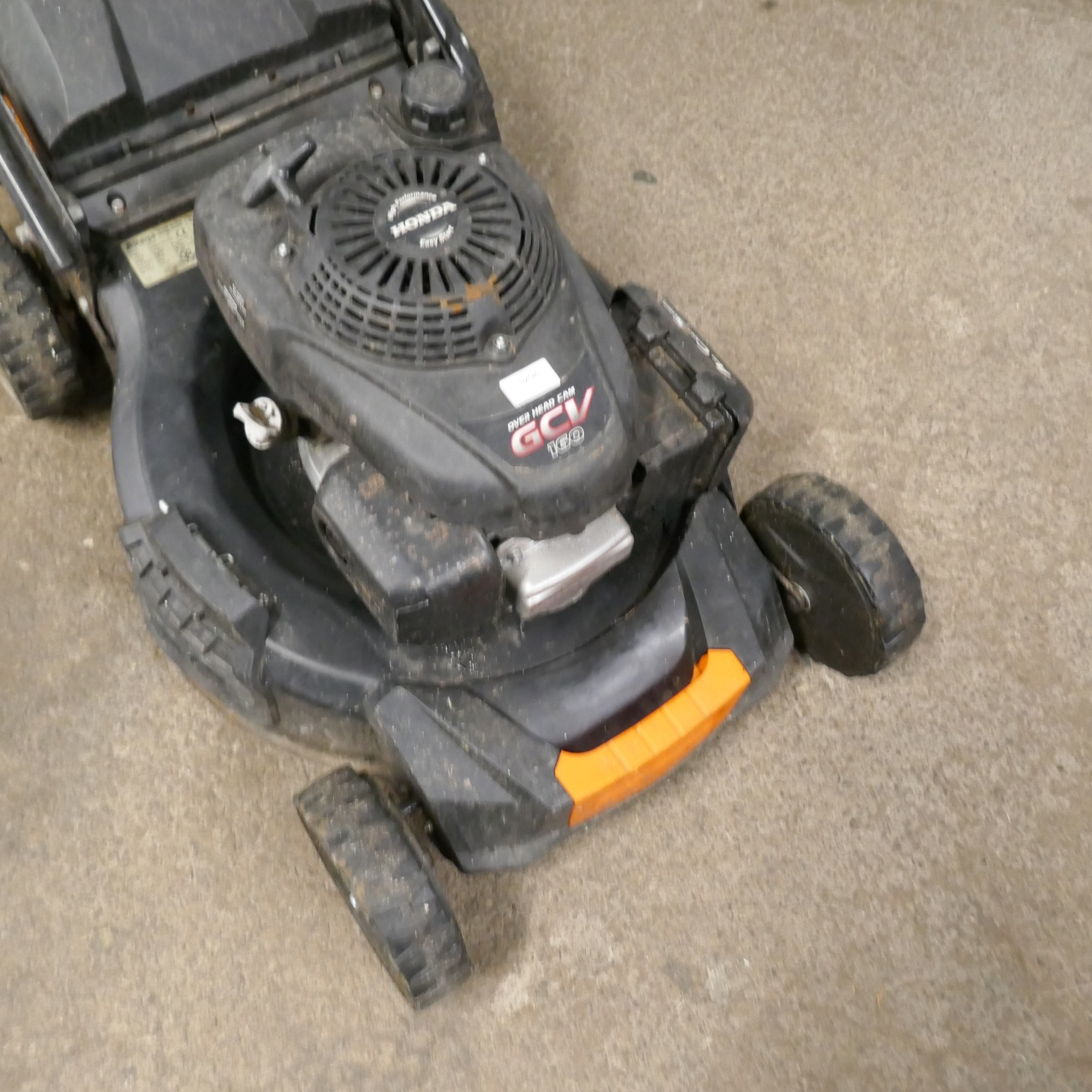 A Sherpa self-propelled petrol lawnmower with Honda GVC 160 petrol engine and collection box