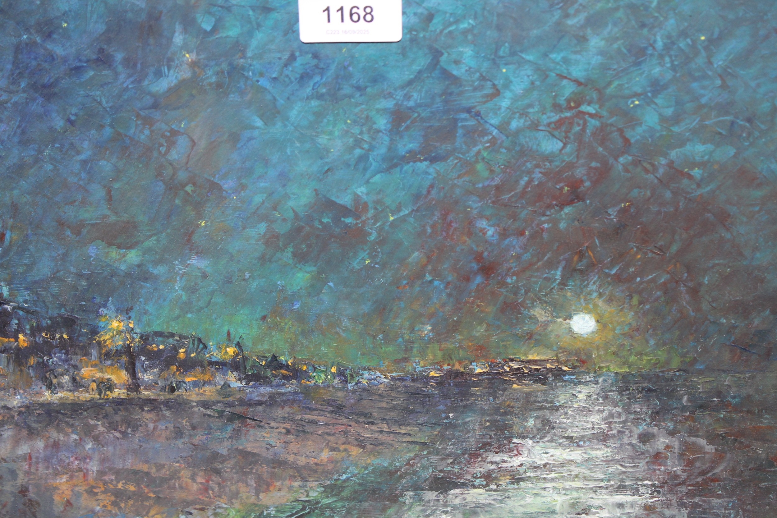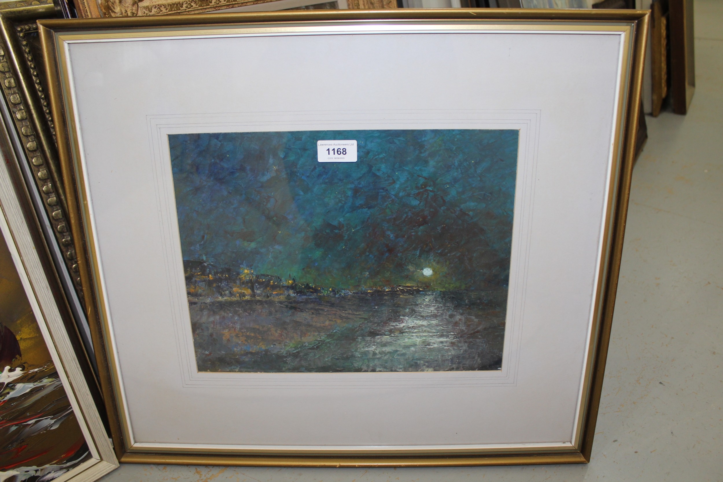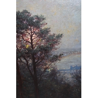 Attributed to Herbert Charles Sheppard, framed and glazed oil, coastal landscape by moonlight, 27 x 34cm