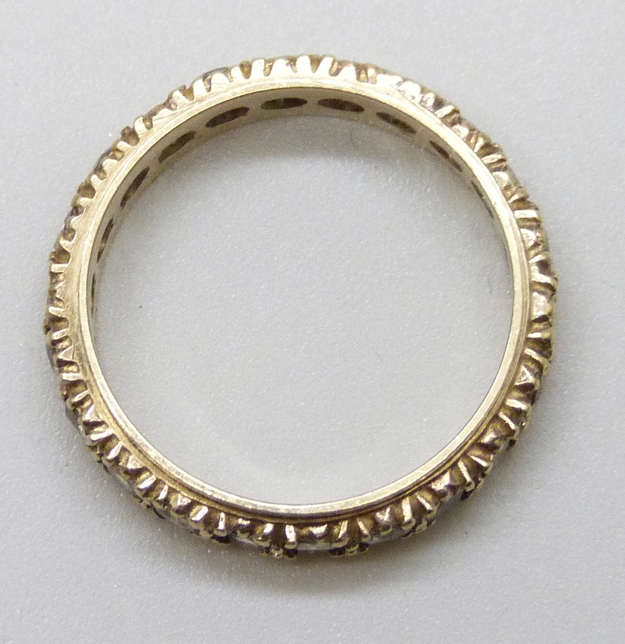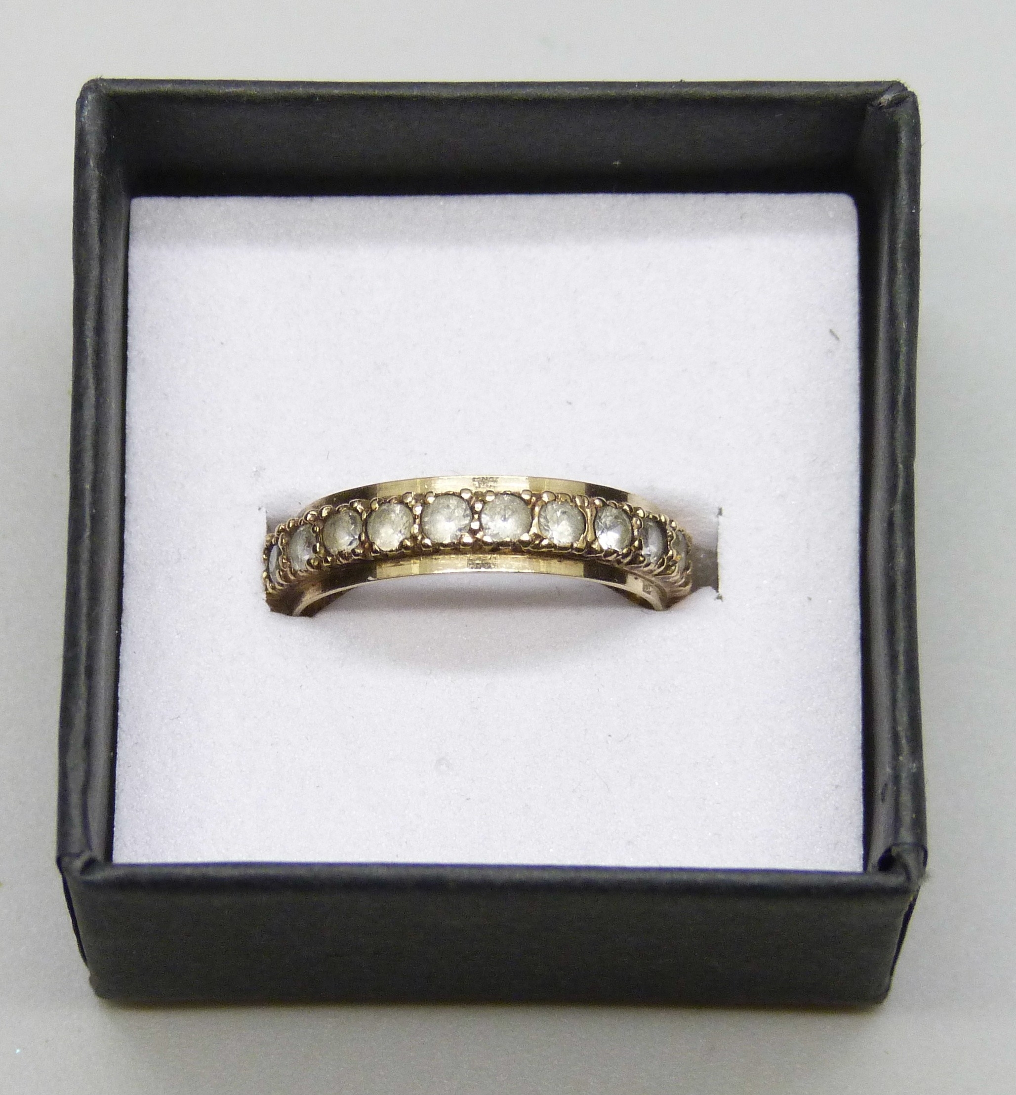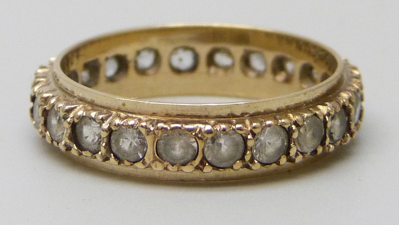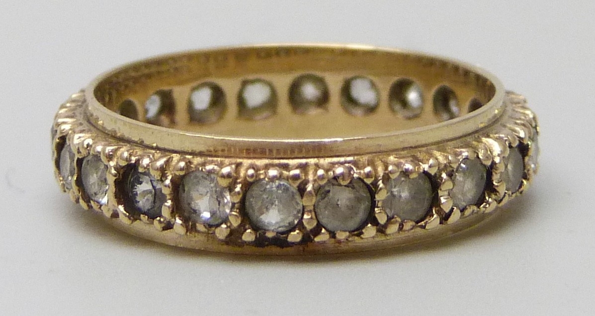 A 9ct gold full eternity ring set with synthetic spinel, 2.4g, L