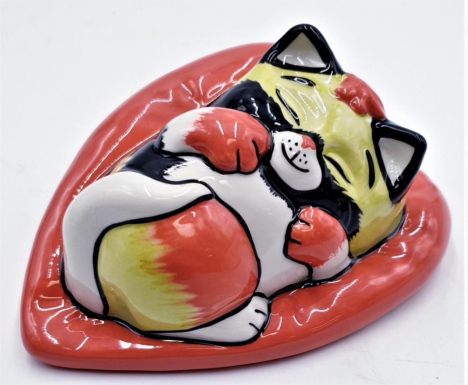 LORNA BAILEY 14cm x 9cm CAT ASLEEP WALL PLAQUE Signed By Lorna Bailey (Marked 2nds)