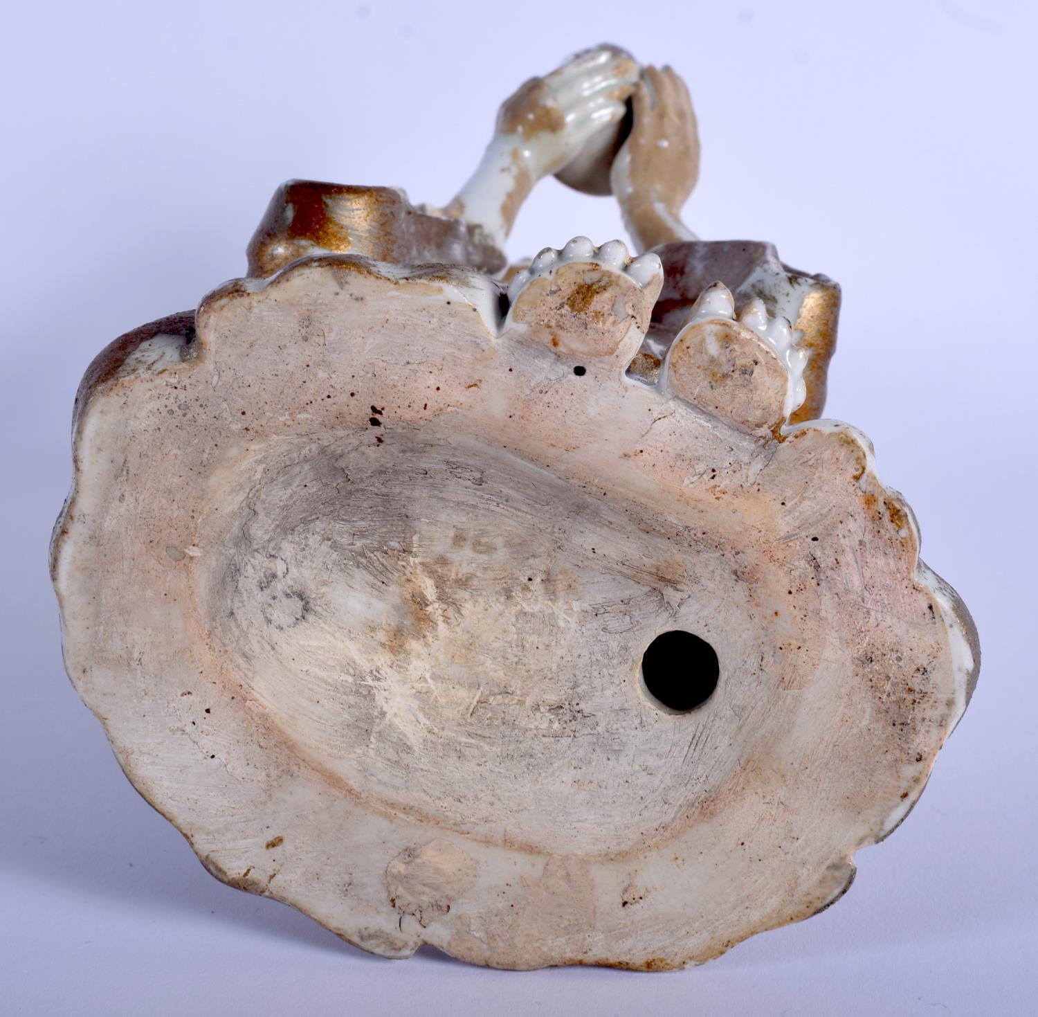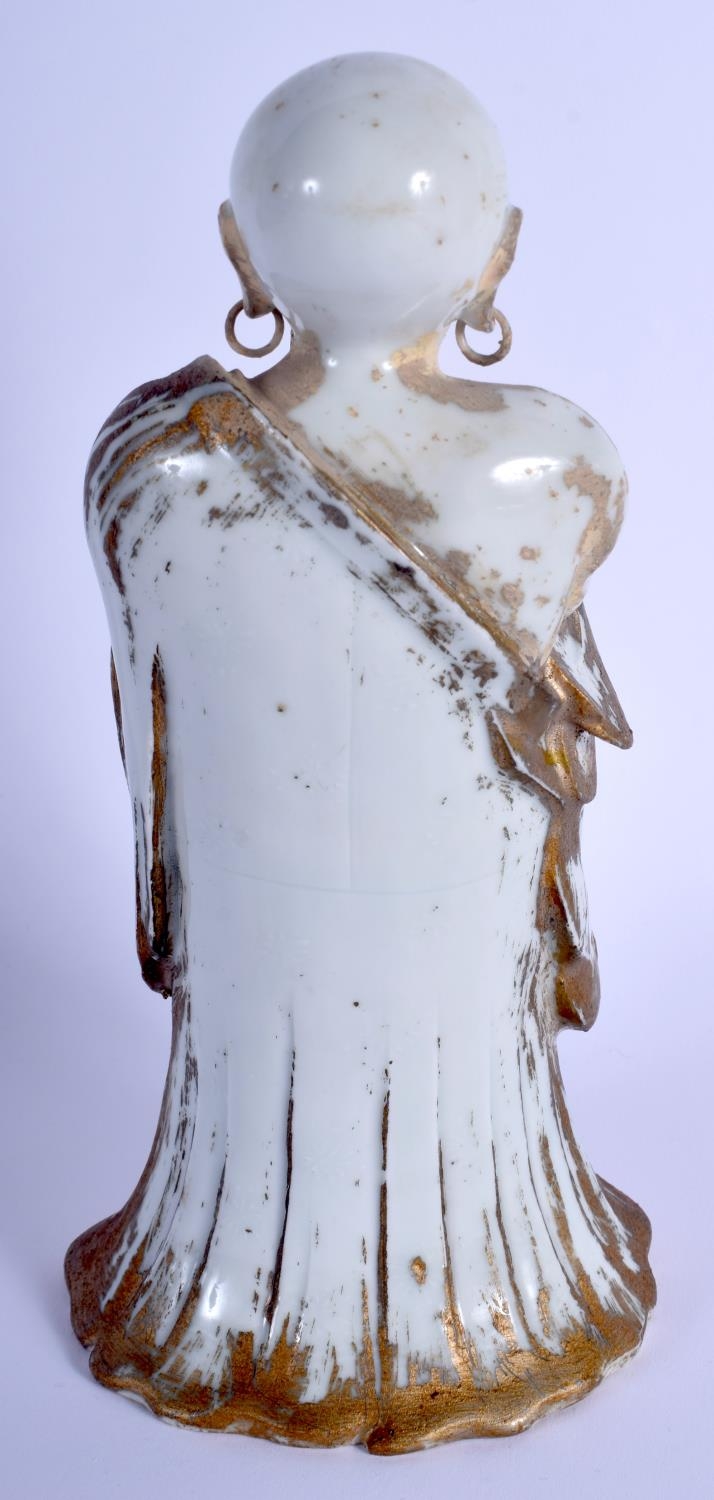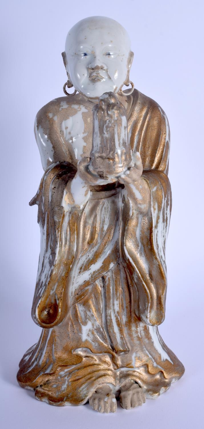 AN 18TH CENTURY JAPANESE EDO PERIOD PORCELAIN FIGURE OF AN IMMORTAL modelled holding a gilt object. 24 cm high.