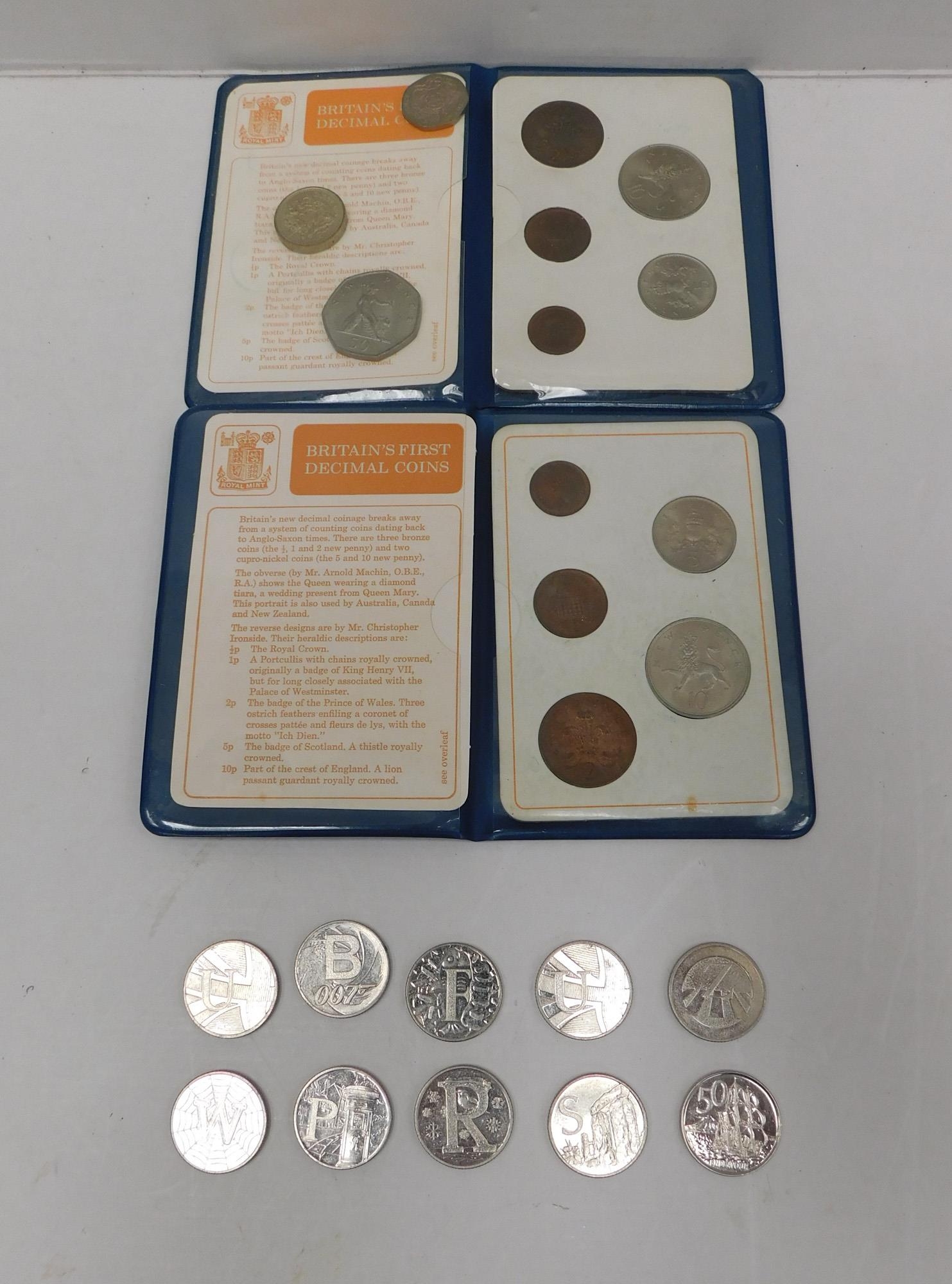 Collection of alphabet 10p - incl. ten with letters; Z, U, B, F, S, W, U, R, P - plus New Zealand 50 cent and two packs of decimal coins