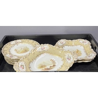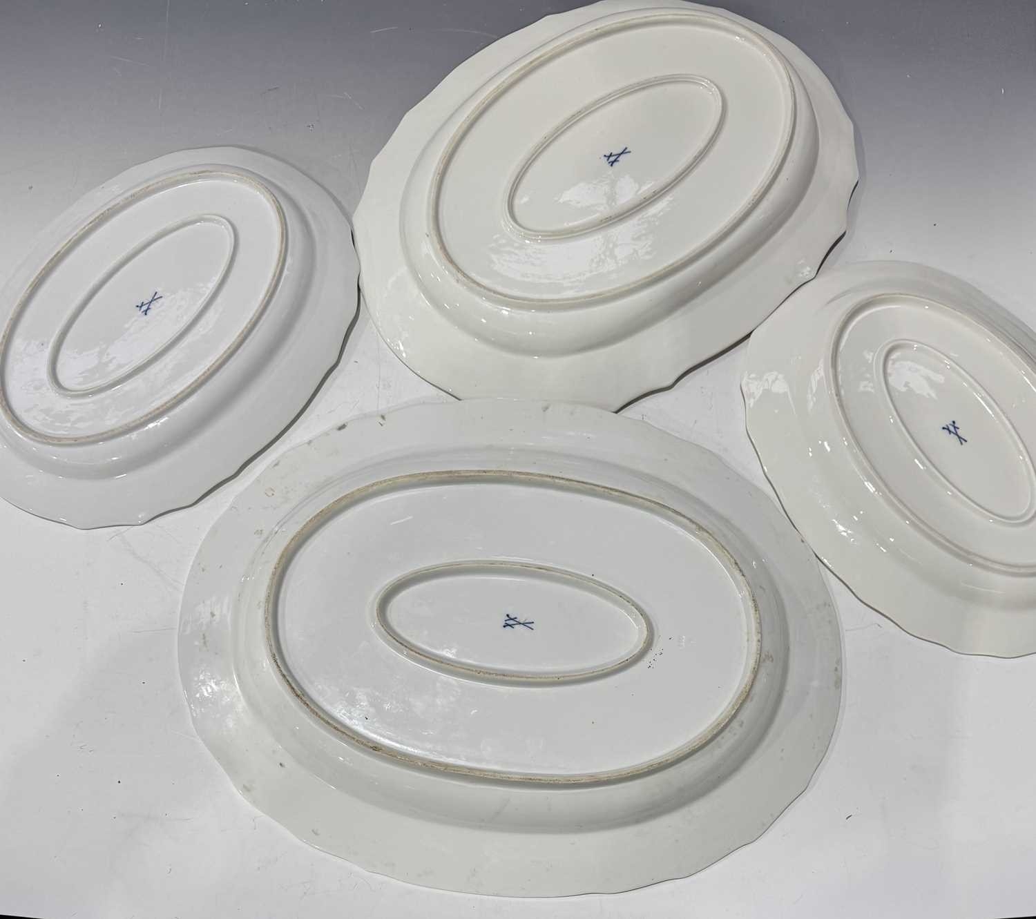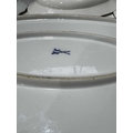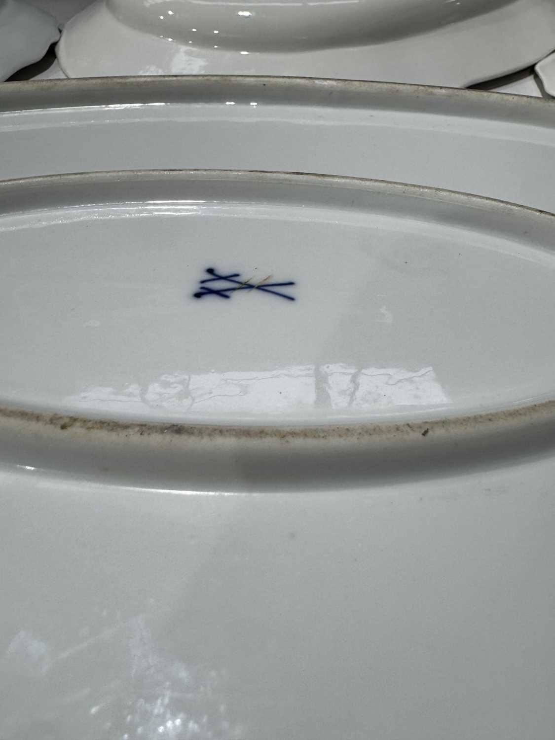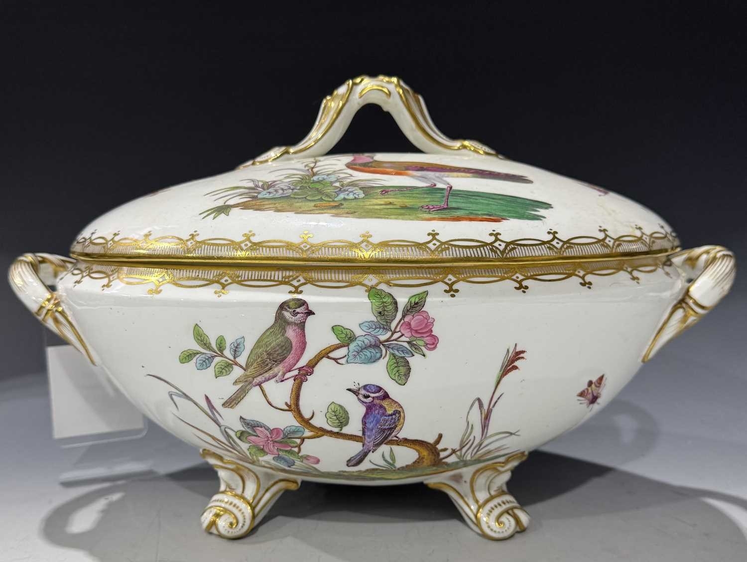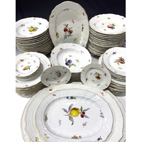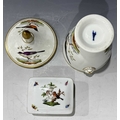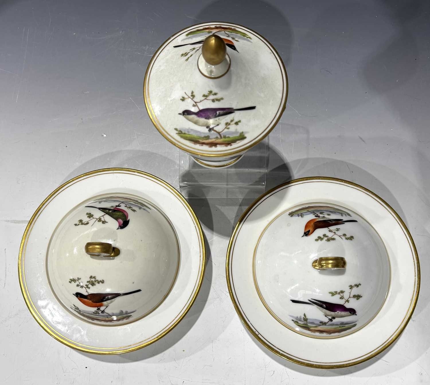 A matched set of Meissen dinner plates, each painted with ornithological studies, insects and butterflies, crossed blue sword marks to the underside, together with a collection of painted and printed porcelain in a similar manner; a Herend lidded box, a lidded pot, lidded muffin dishes, dinner plates, tureen (2 trays)