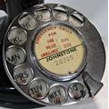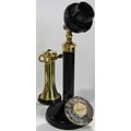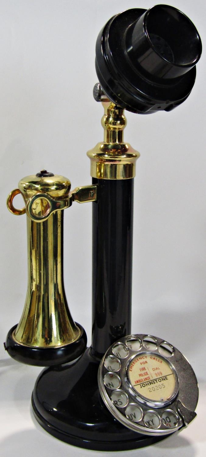 A vintage Bakelite candlestick telephone with brass receiver, re-wired for contemporary use, 32cm high.