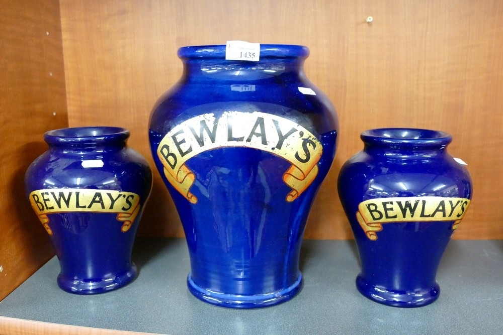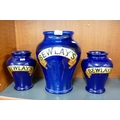 Three Victorian Blue Glazed Royal Doulton Retail Tobacco Jars by Bewlay's.
