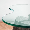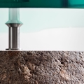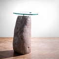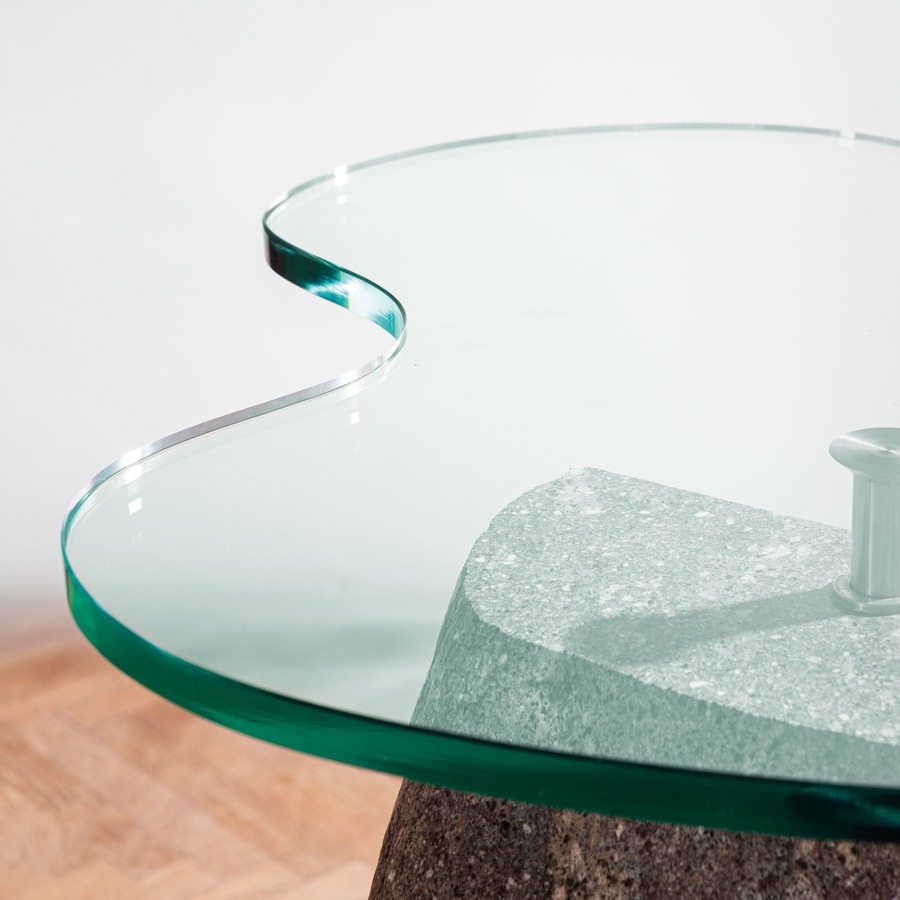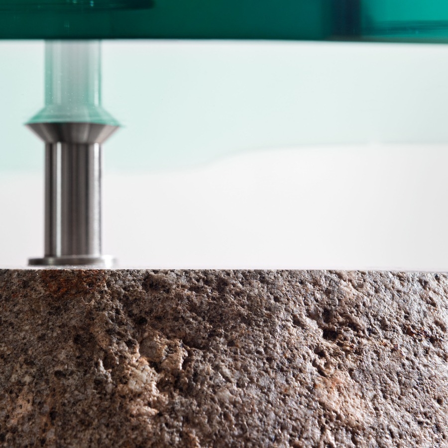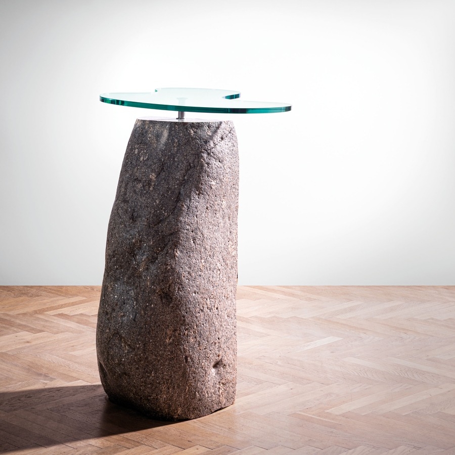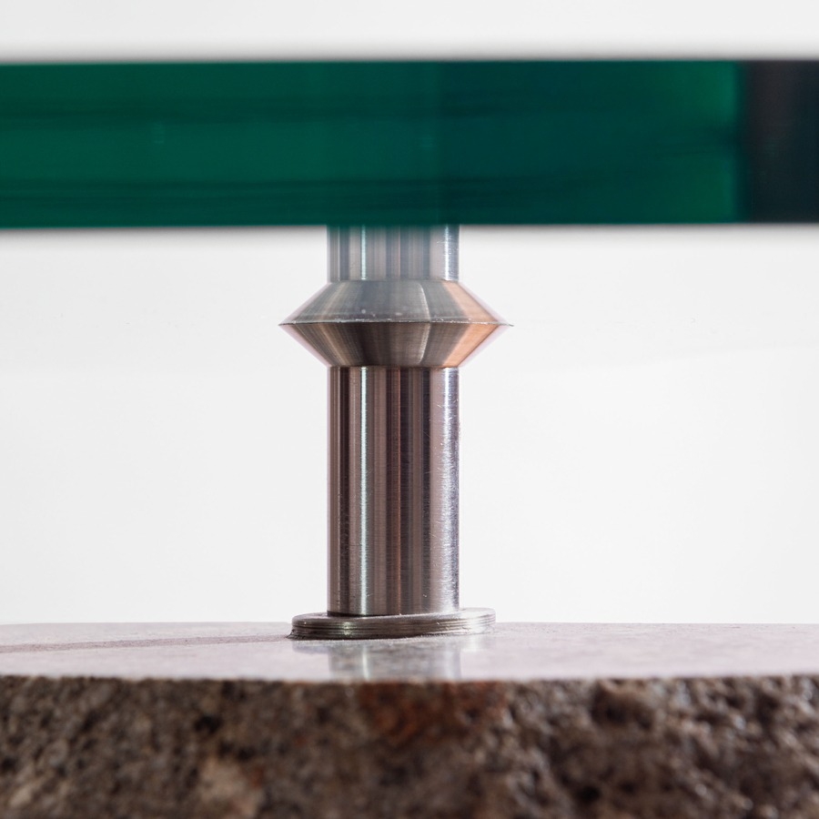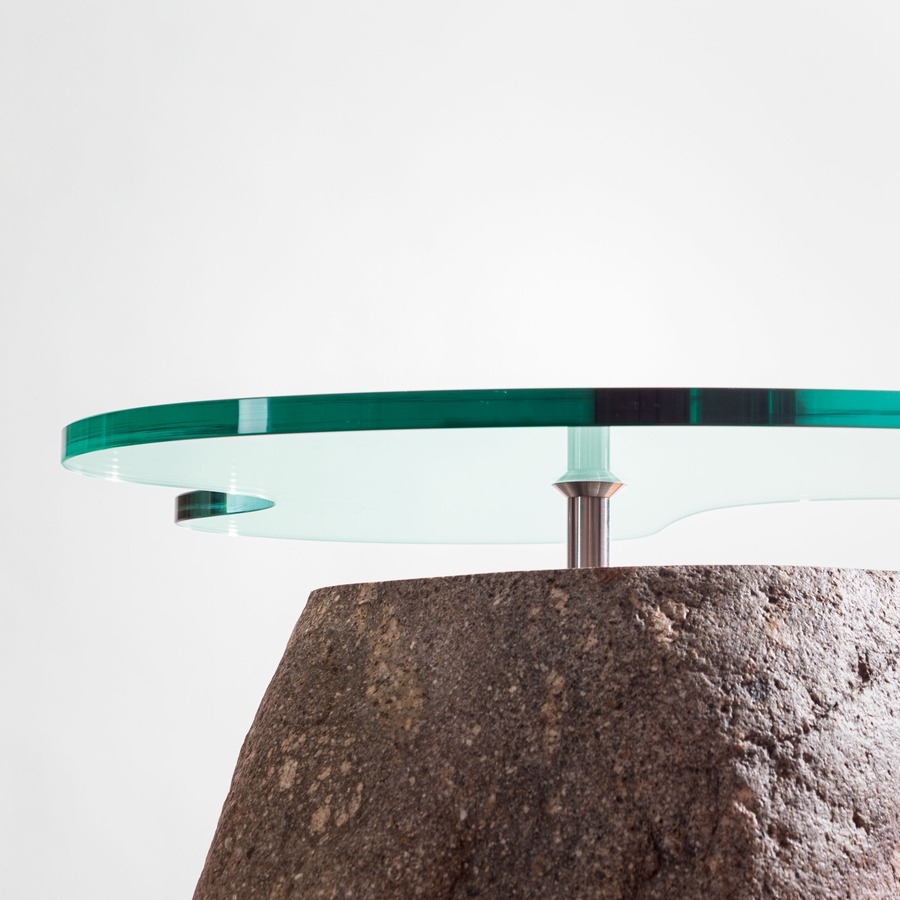 Consolle per TopTen, Torino. Granito naturale con parti tagliate e levigate, acciaio, cristallo molato. Italia, 1990 ca.