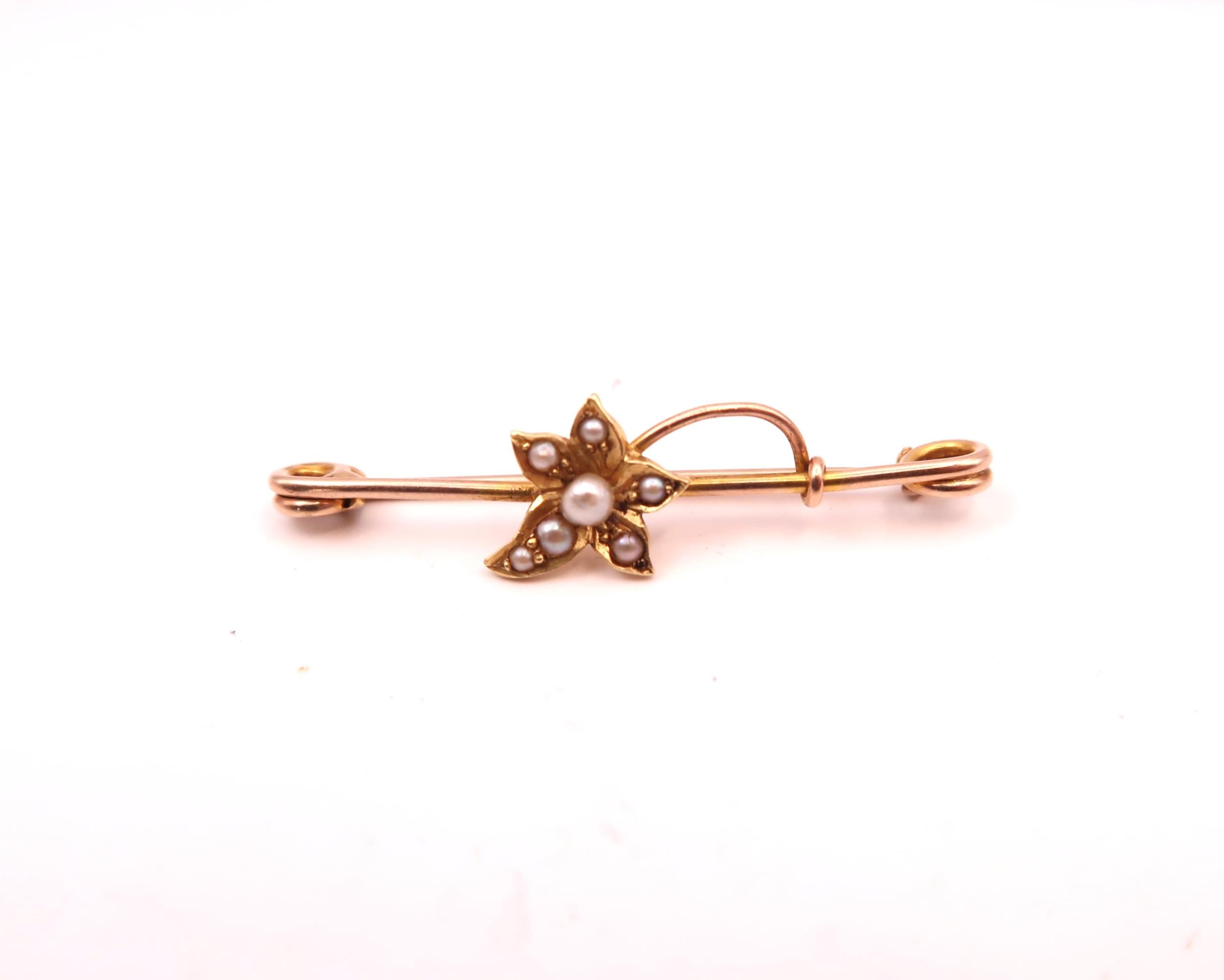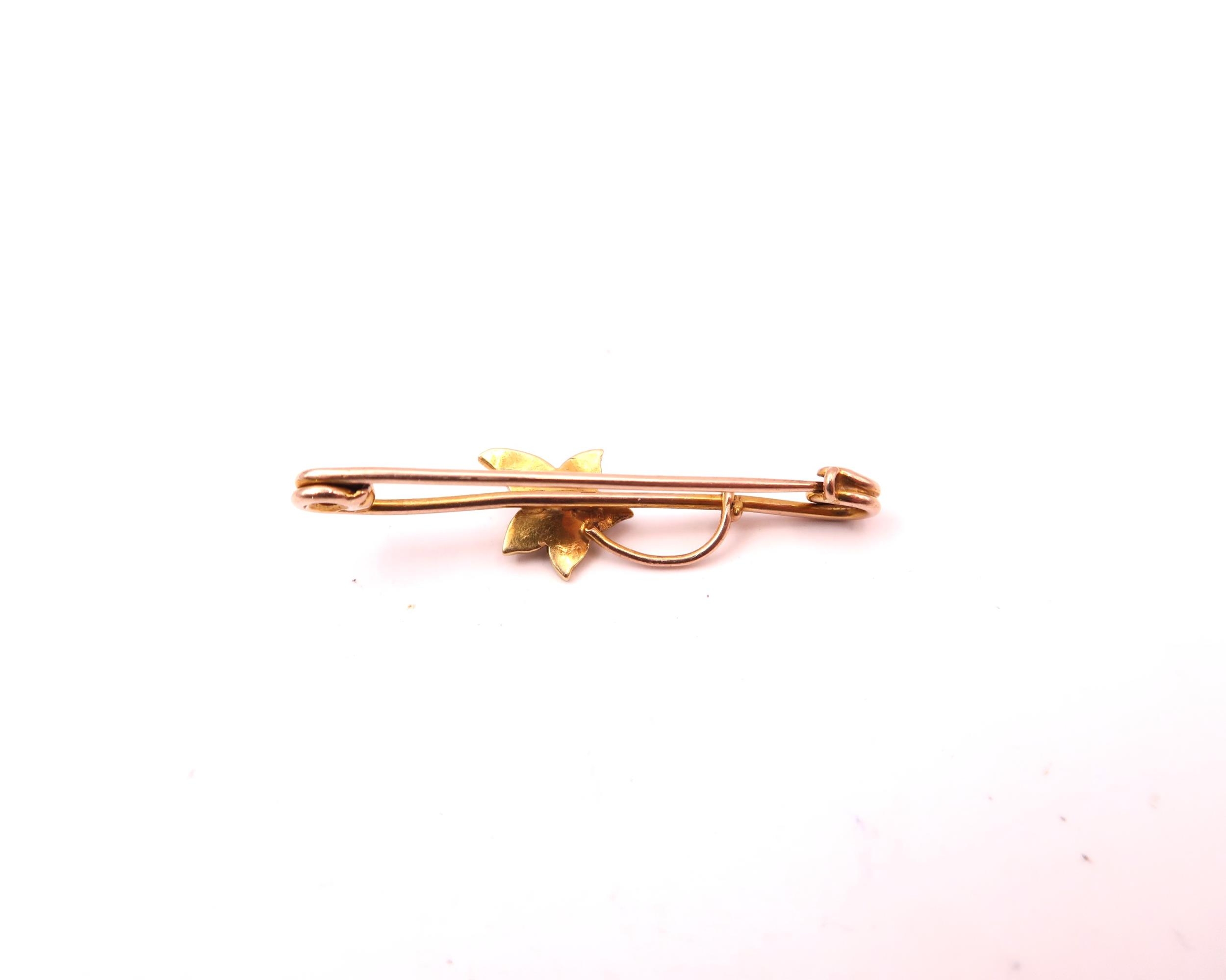 A 9ct and 15ct Yellow Gold Pearl Leaf Brooch, Cased, Head Size approx. 36mm x 9mm