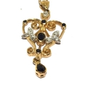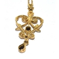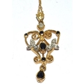9ct gold laverier pendant set with Diamonds and Sapphire on a 46cm gold neck chain