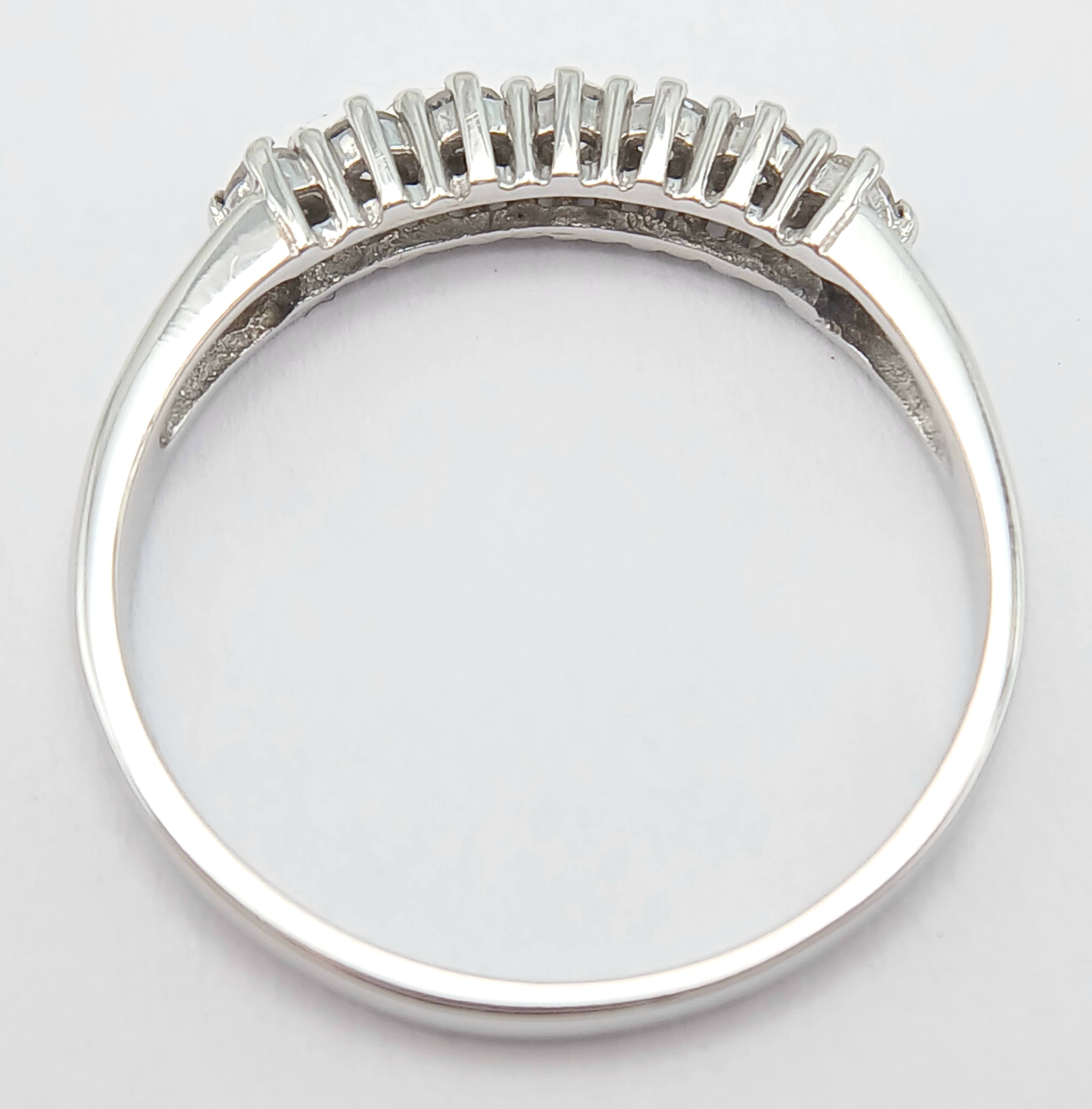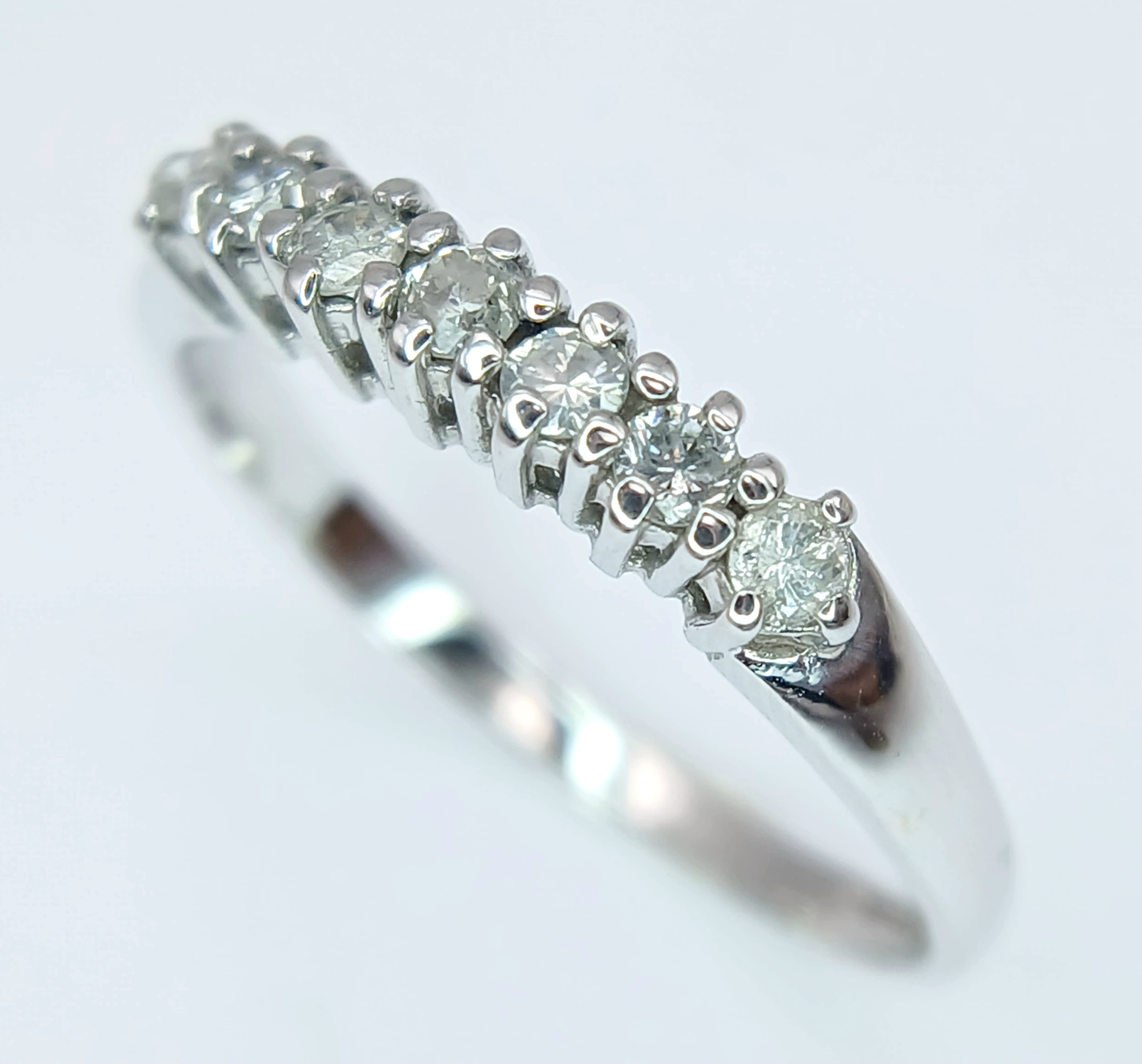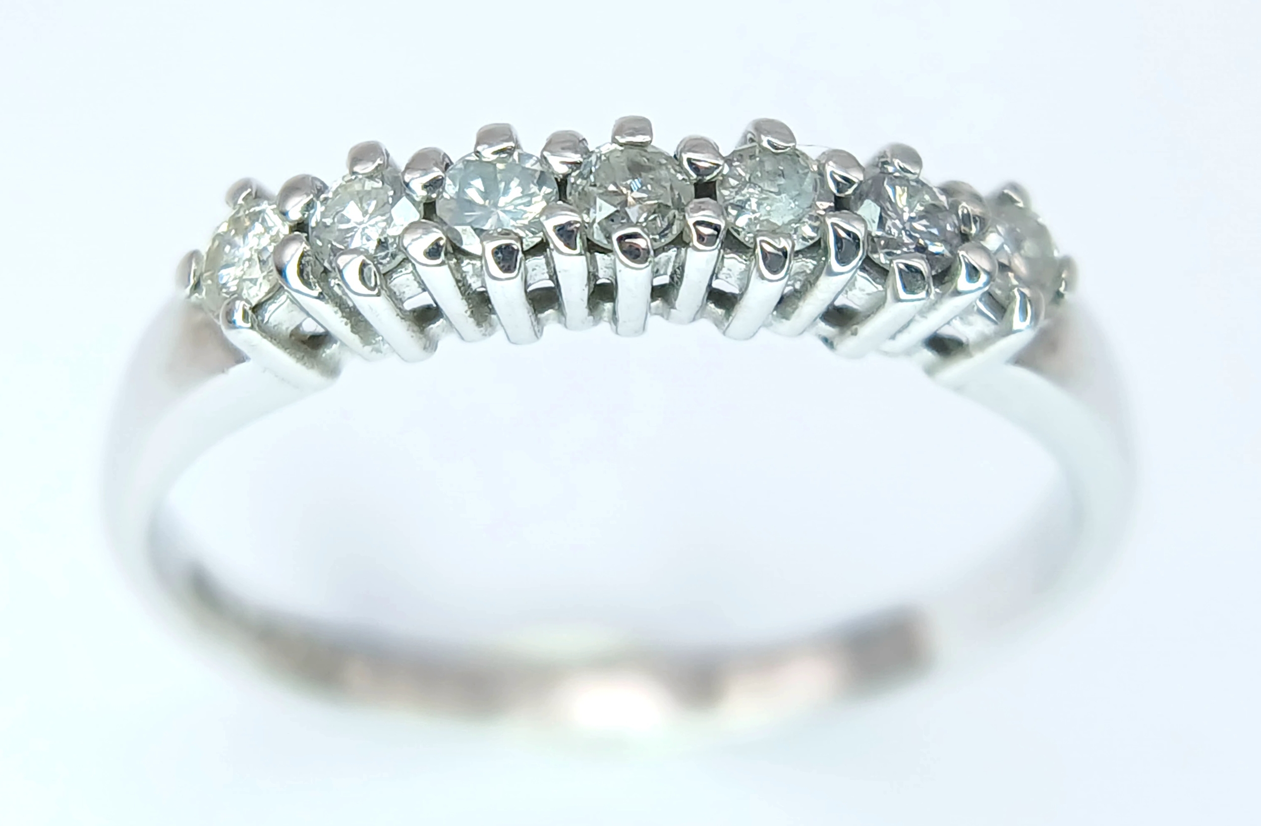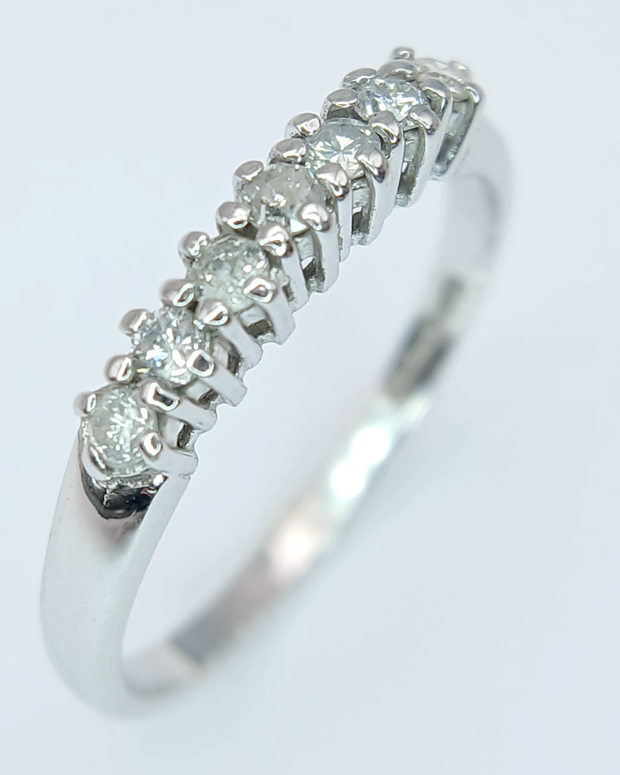 A 9K White Gold, Diamond Set, 7 Stone Ring. 0.15Tcw, 1.5G, Size N. Sc 6012