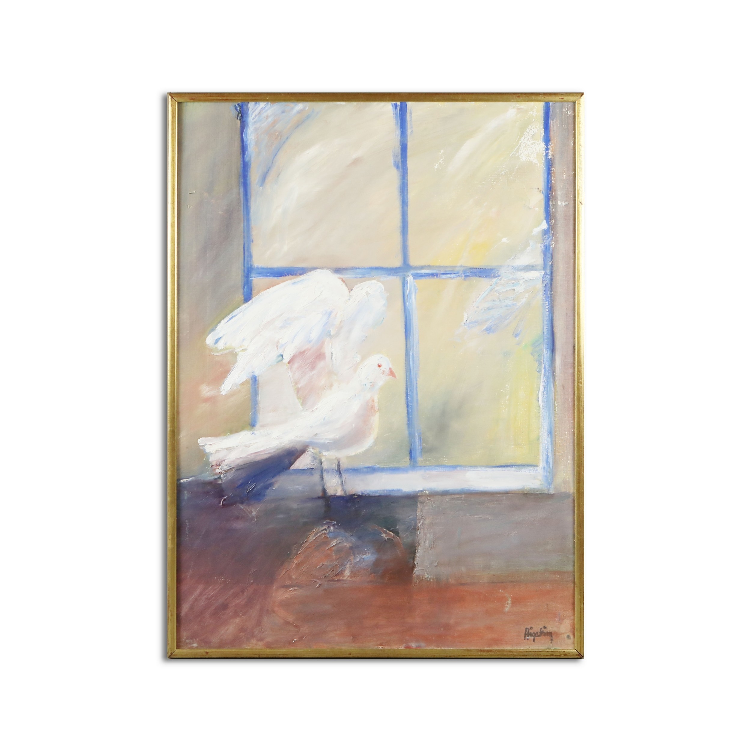 KJELL HÖGSTRÖM. BIRD BY THE WINDOW. oil on canvas, signed, titled and dated 1977 verso, 103cm x 76cm, framed.