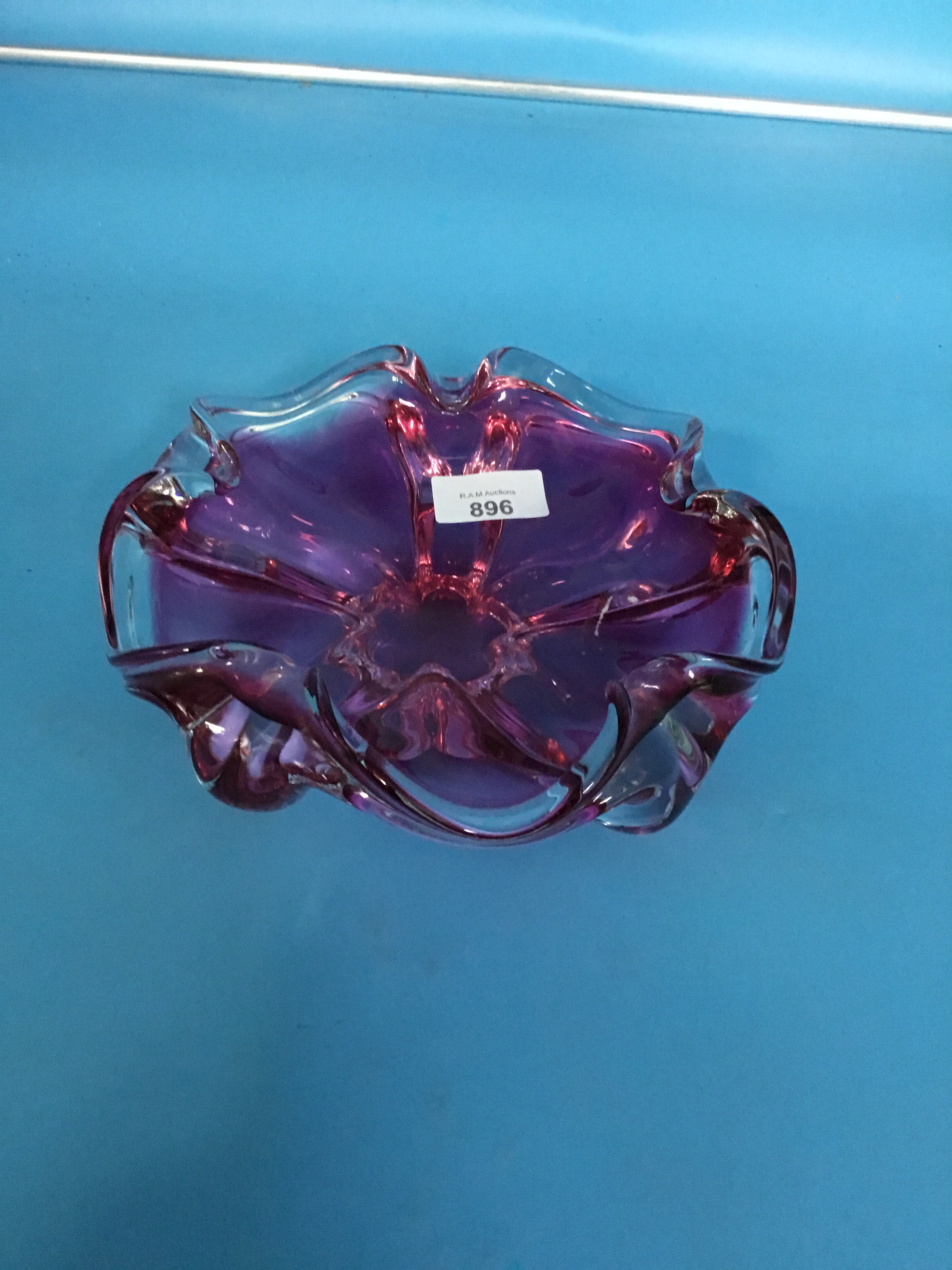 8" Murano Red and Clear Dish