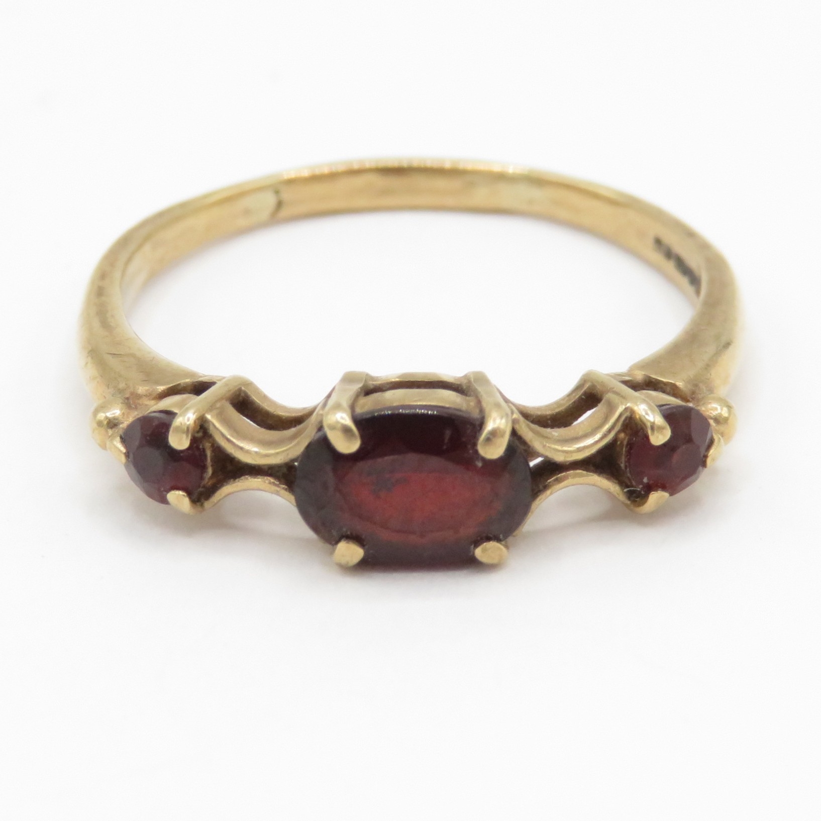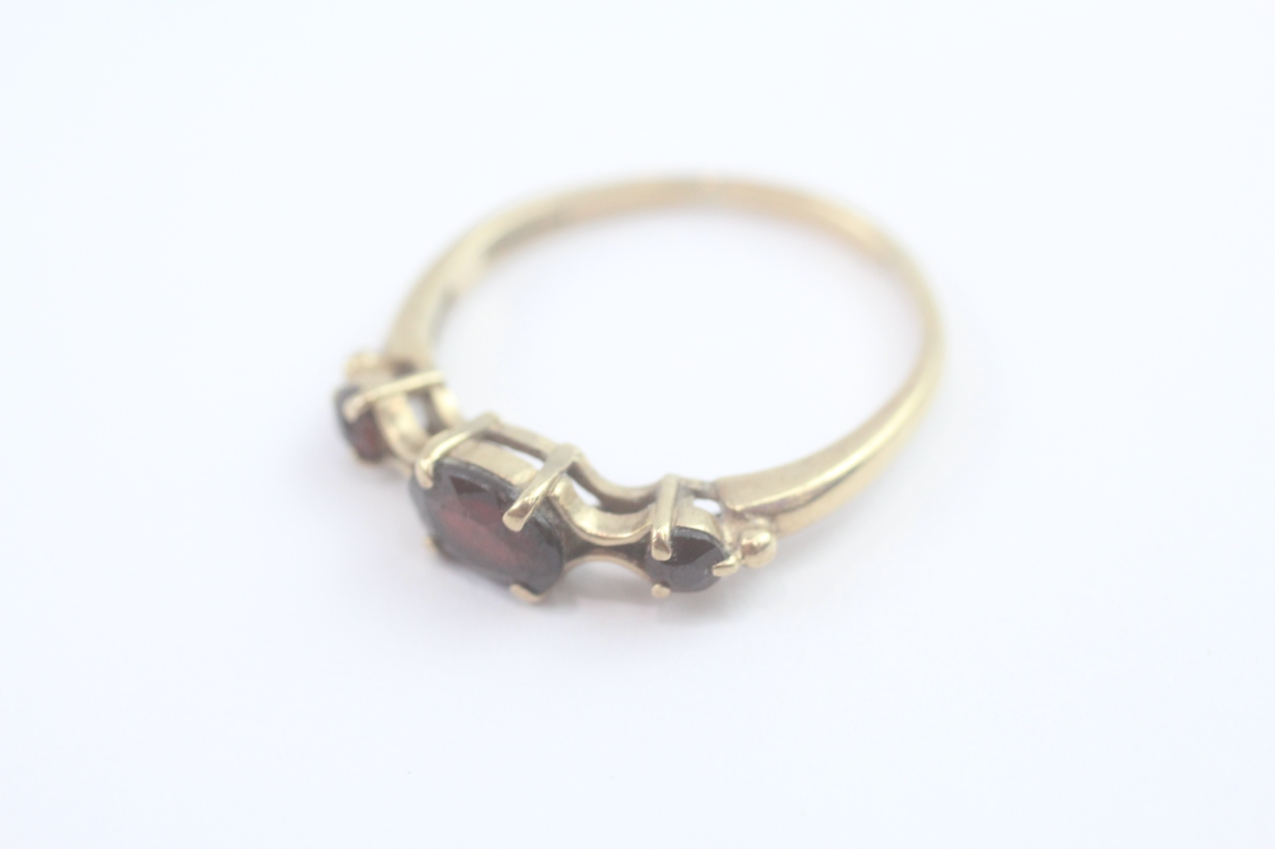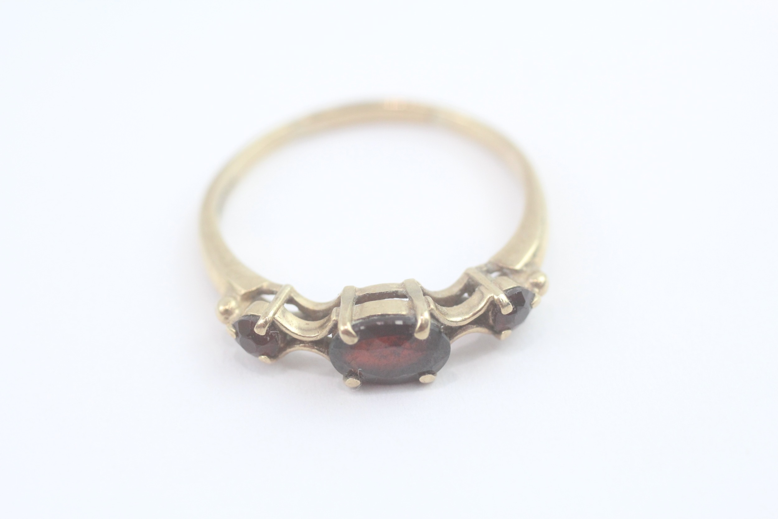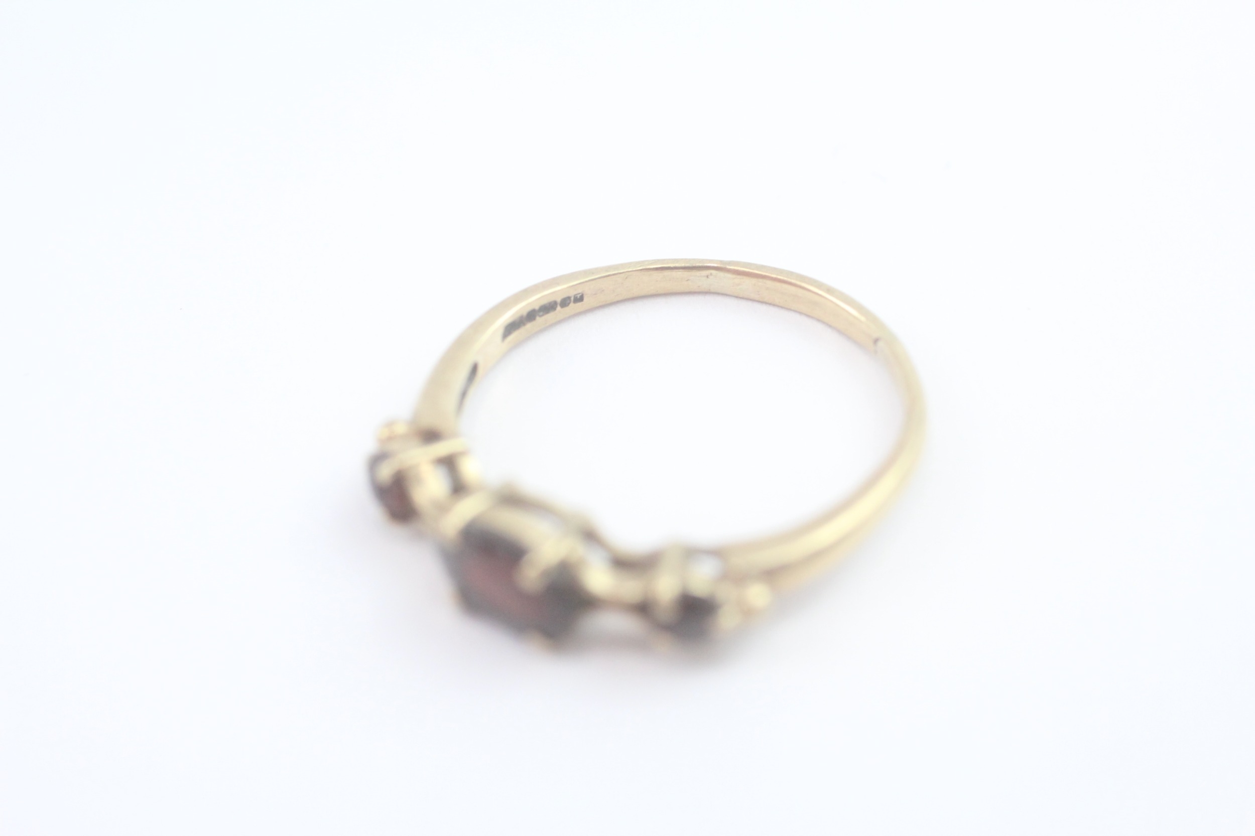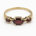 9ct gold garnet trilogy ring (2.2g) Size R