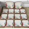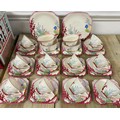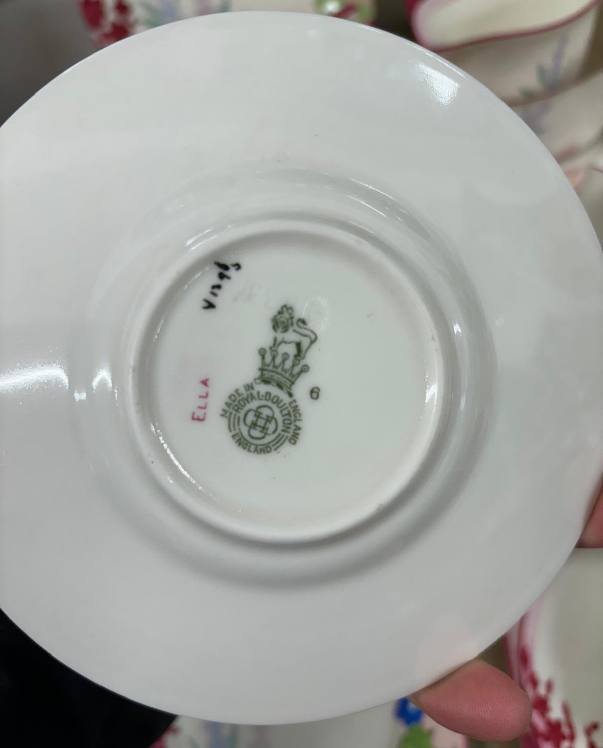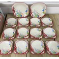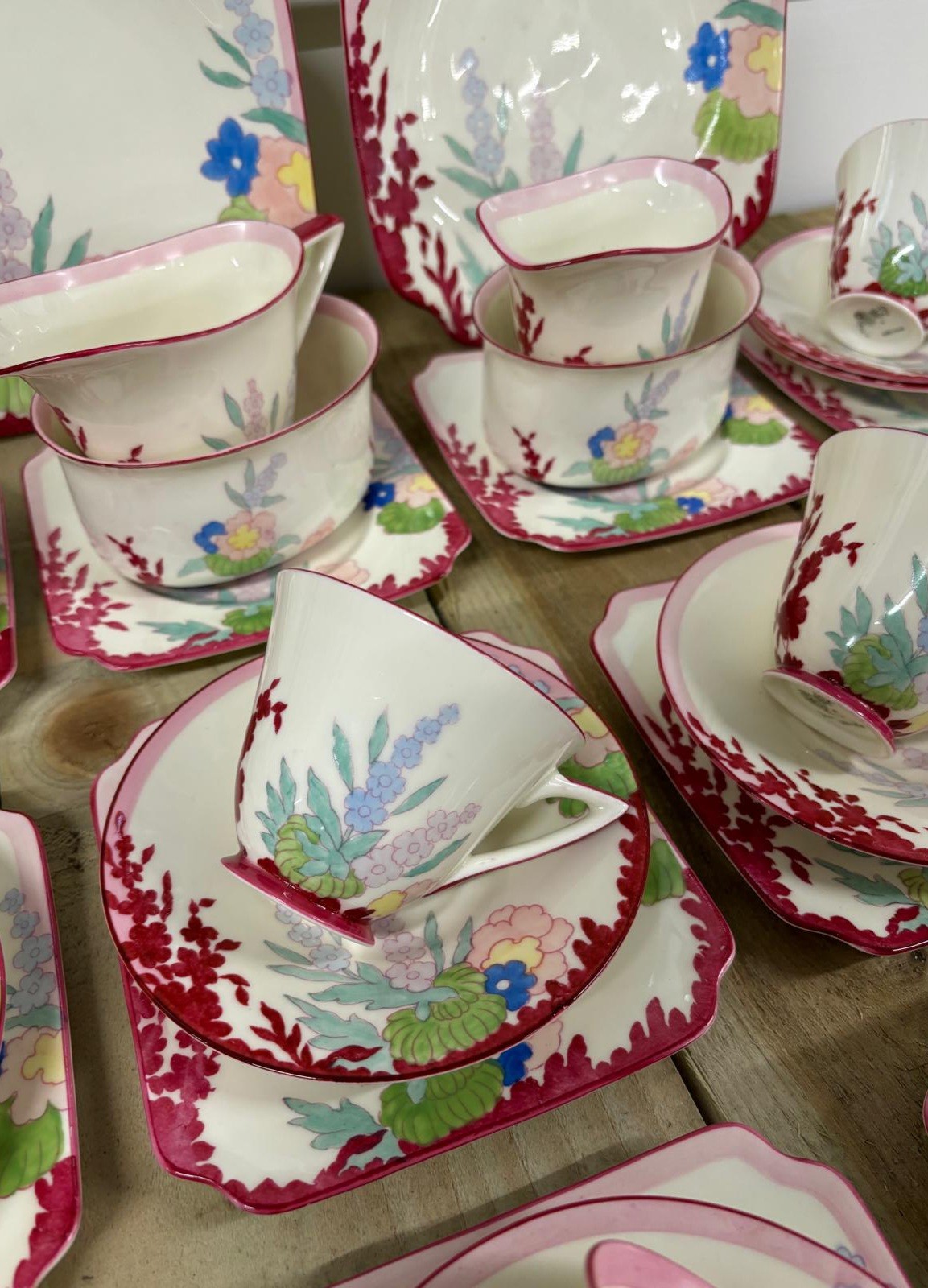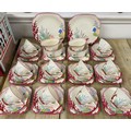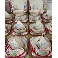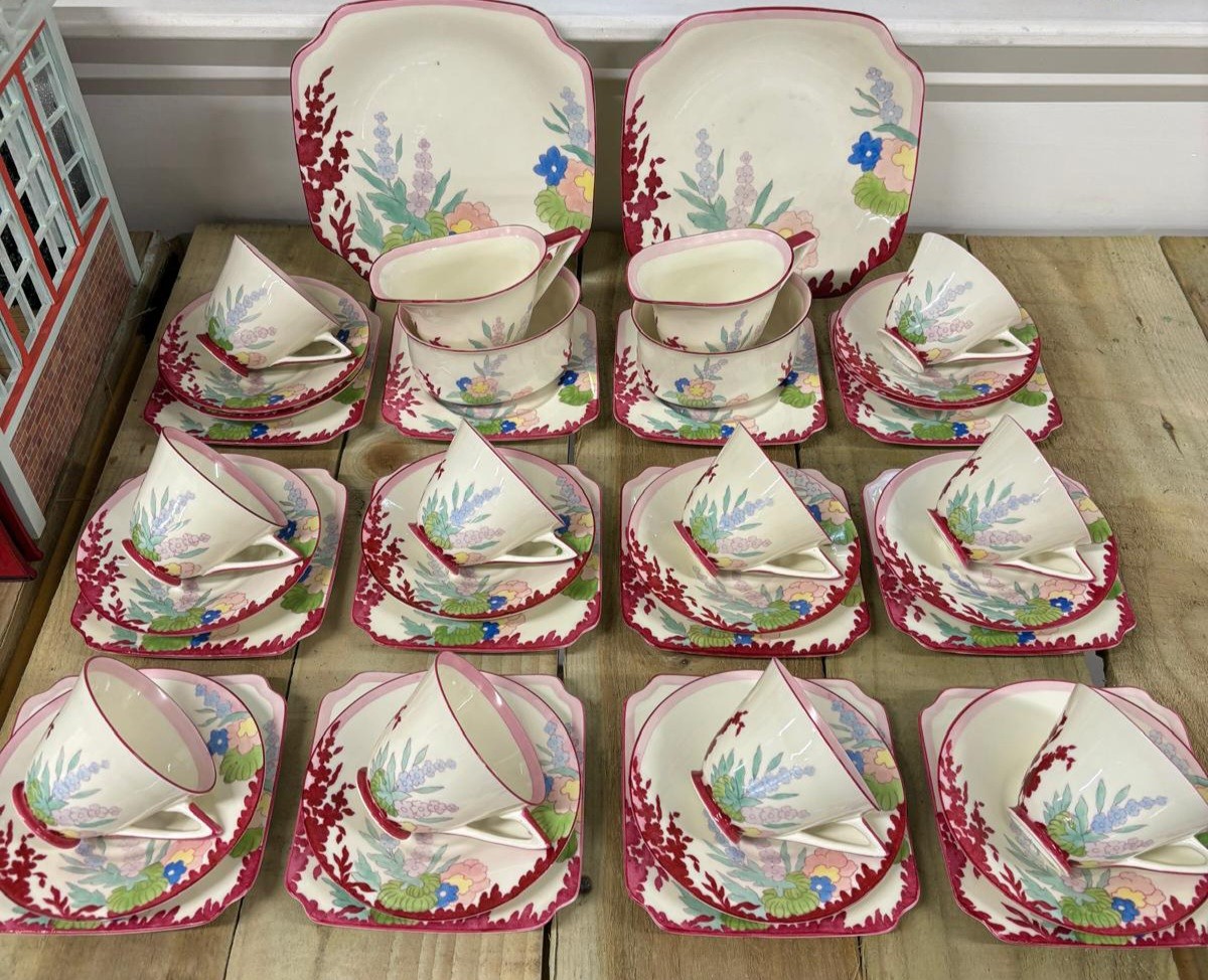 Art Deco design Royal Doulton "Ella" pattern tea set with two cake plates, two sugar and cream dishes. 40 pieces.