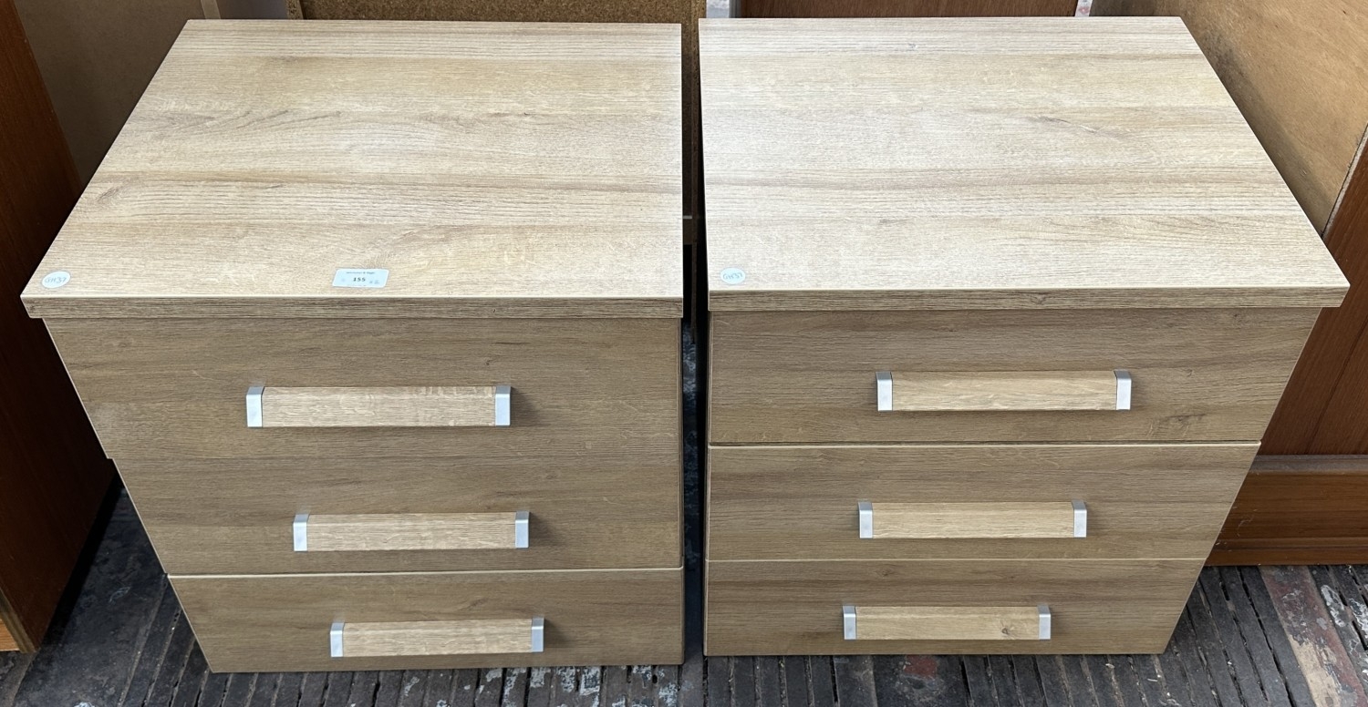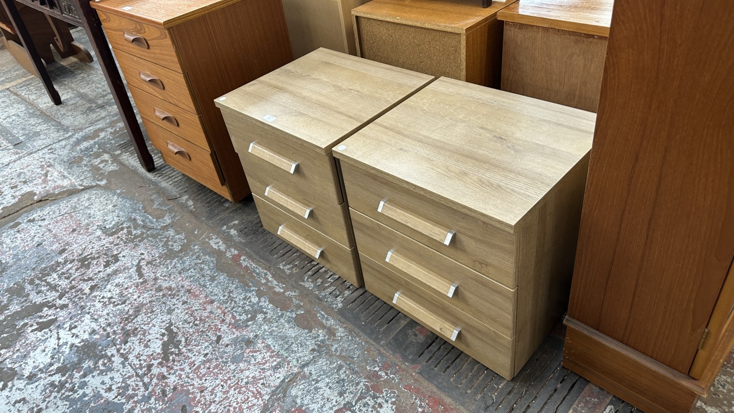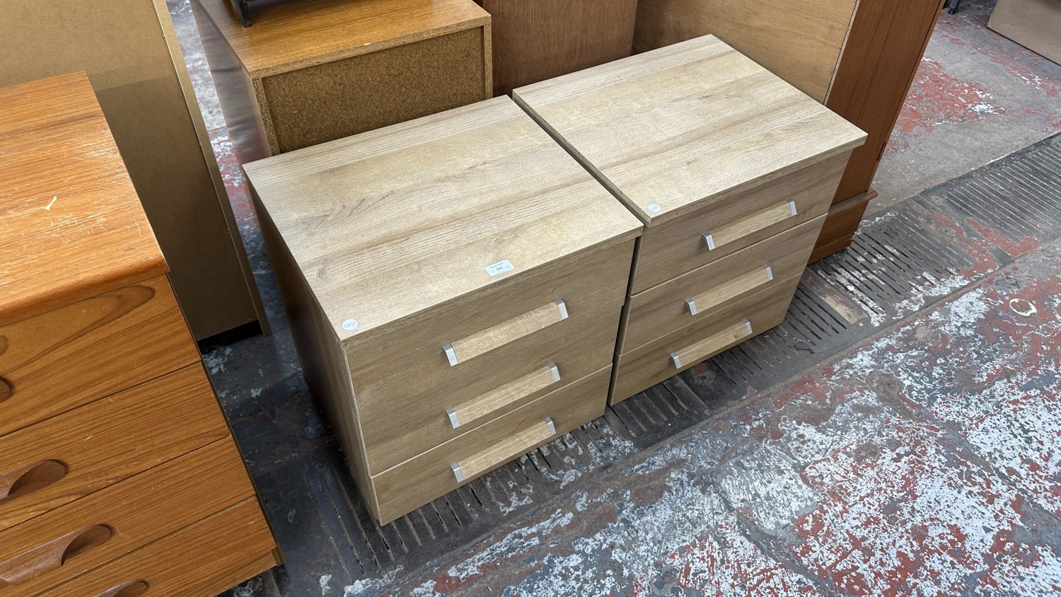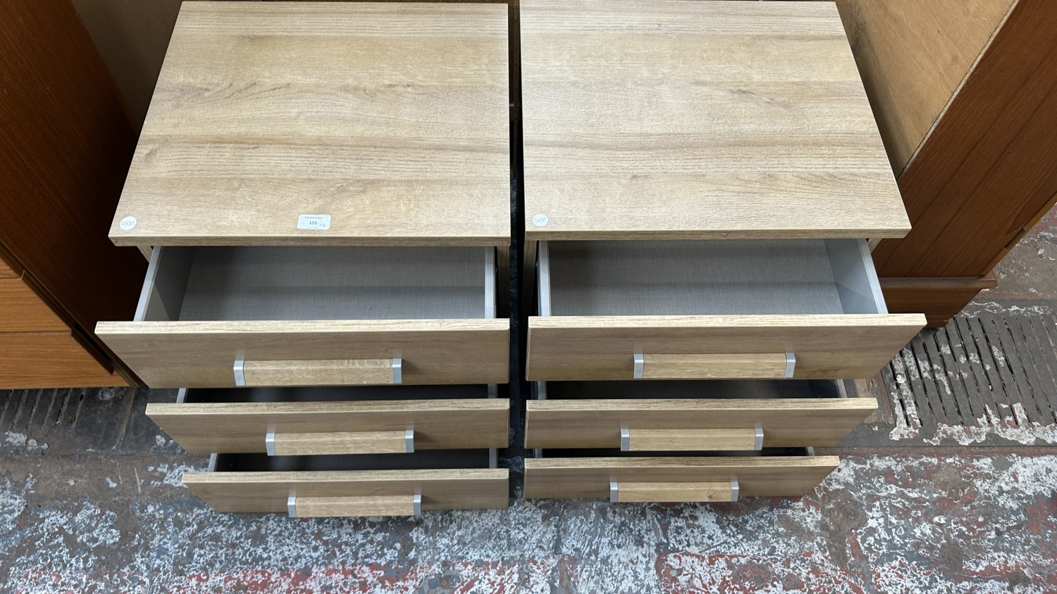 A pair of modern oak effect bedside chests of drawers - approx. 50cm high x 48cm wide x 42.5cm deep