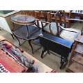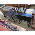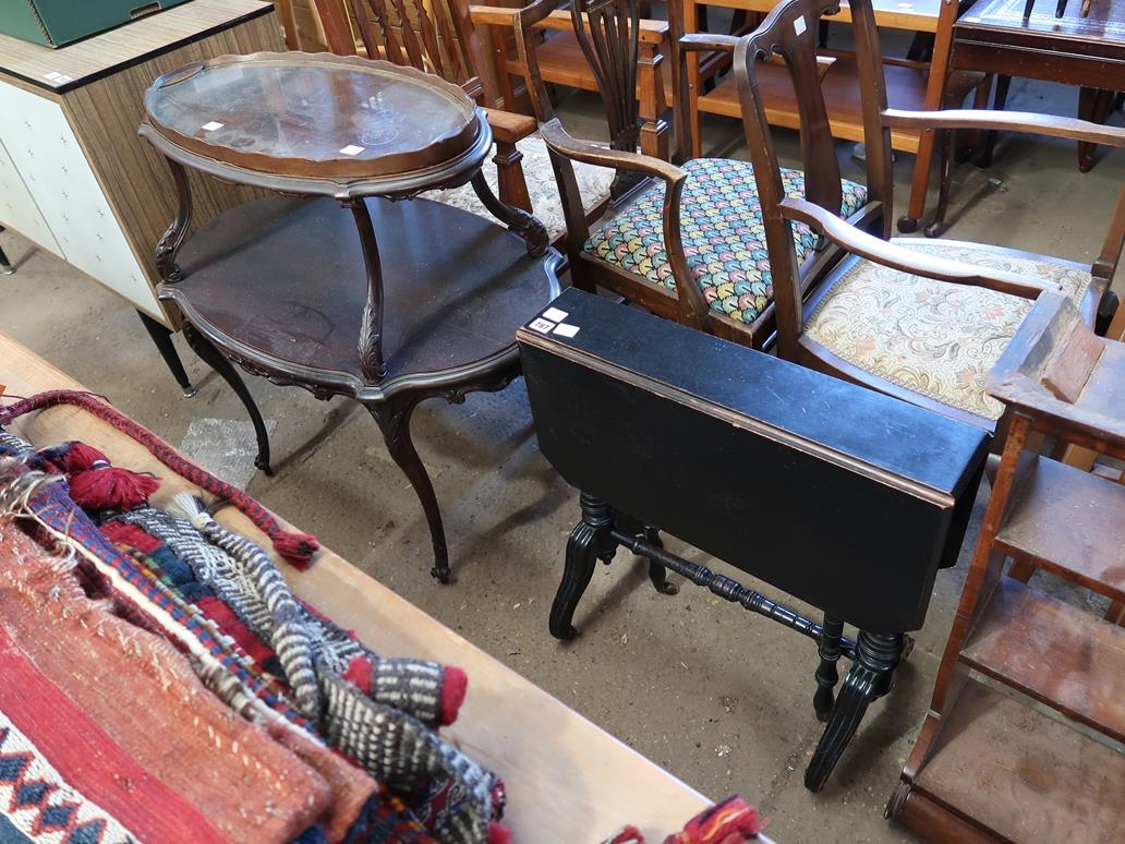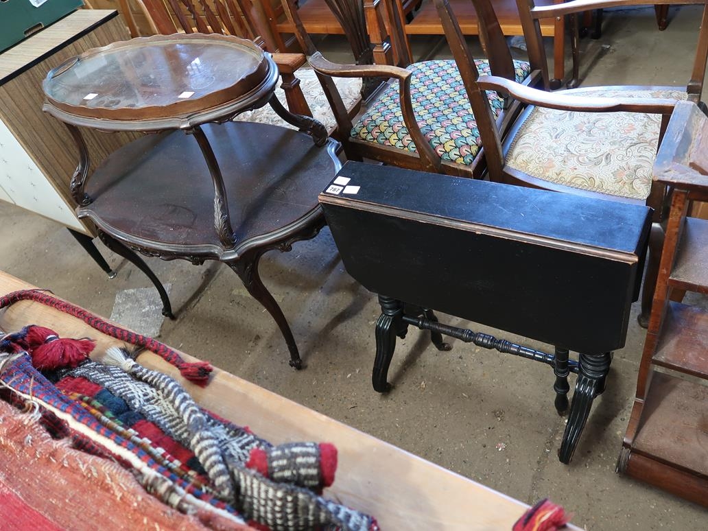 VICTORIAN EBONISED SUTHERLAND TABLE AND A TWO TIER TABLE