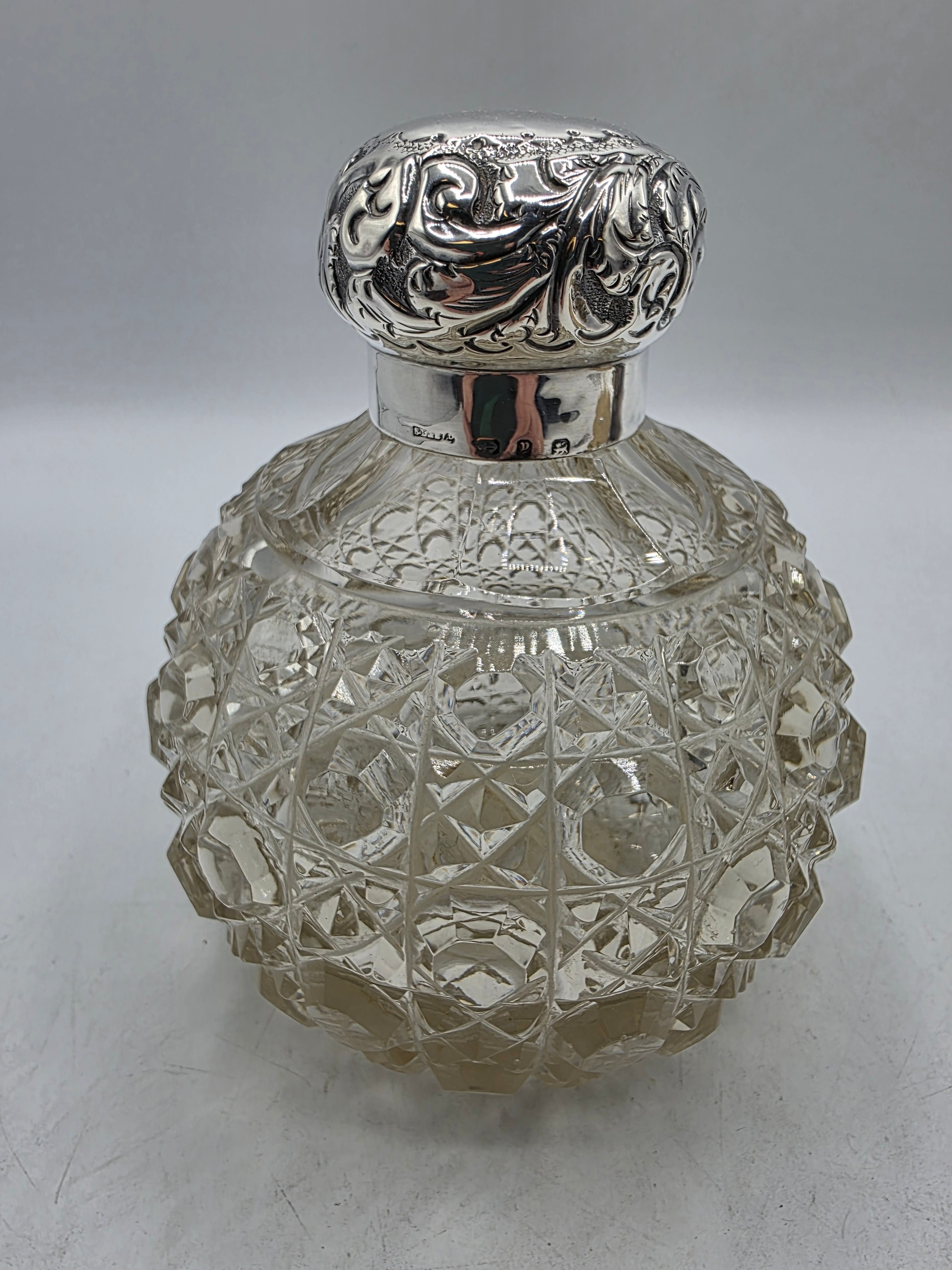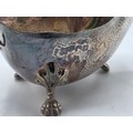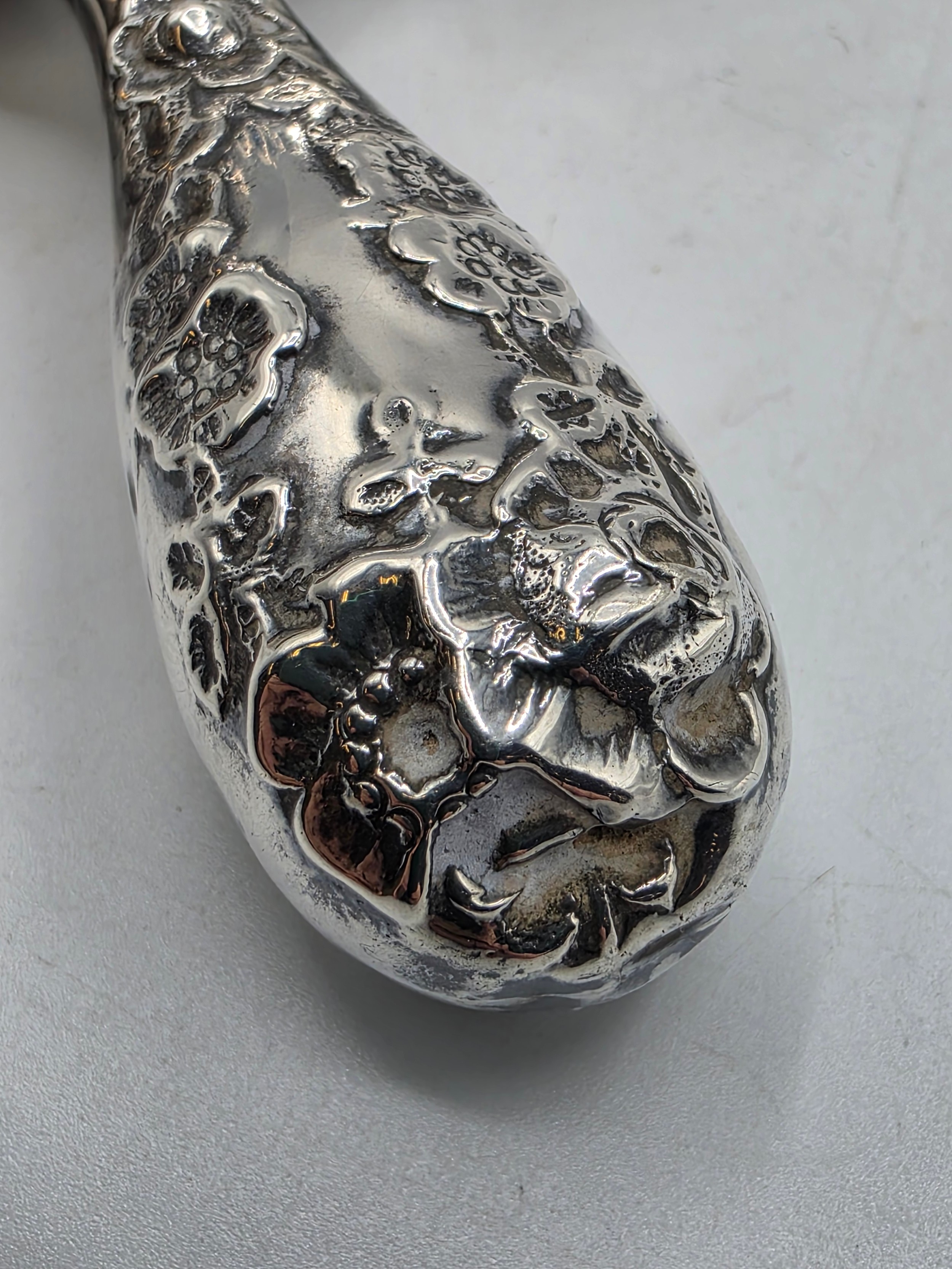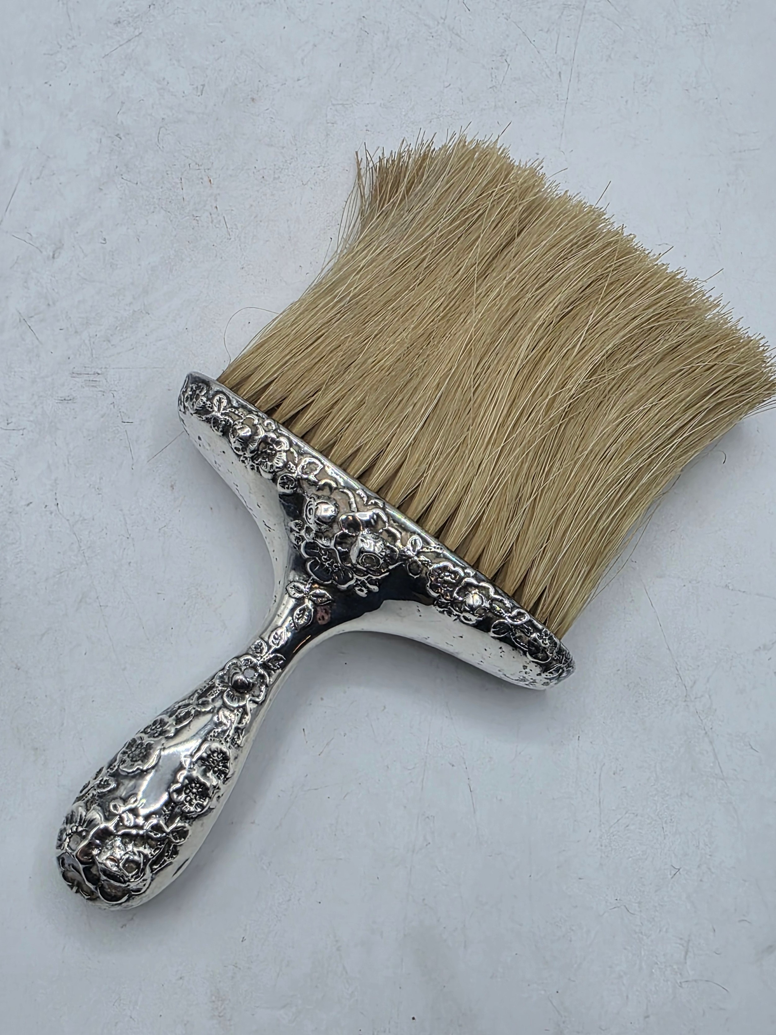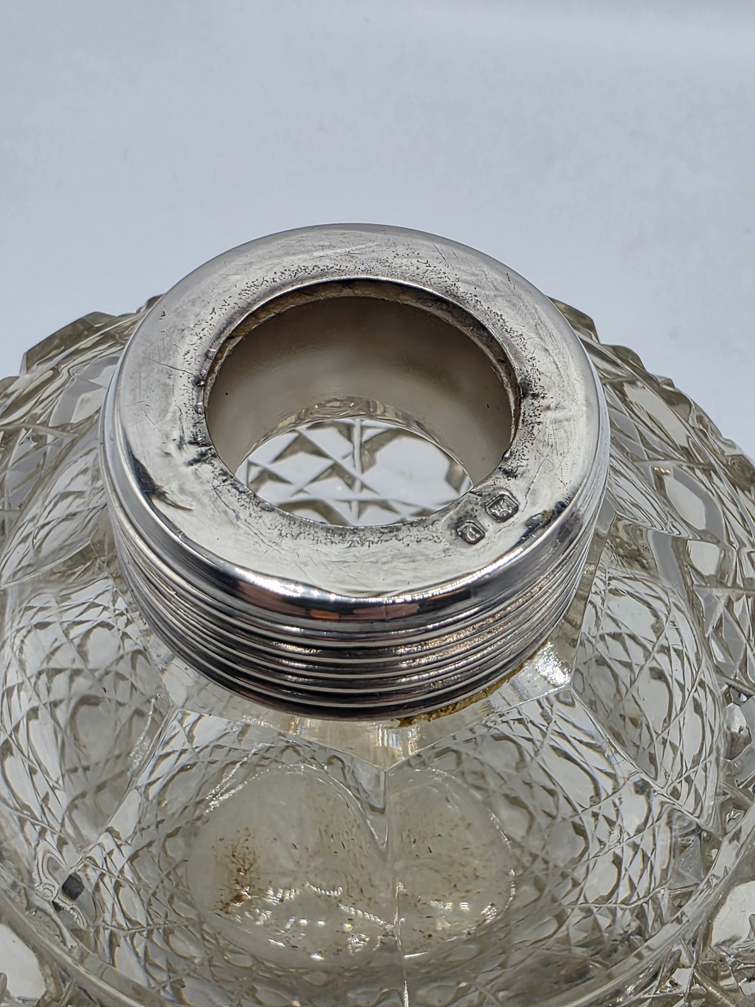 A collection of sterling silver items to include small sauceboat, silver topped glass scent bottle & white metal topped brush