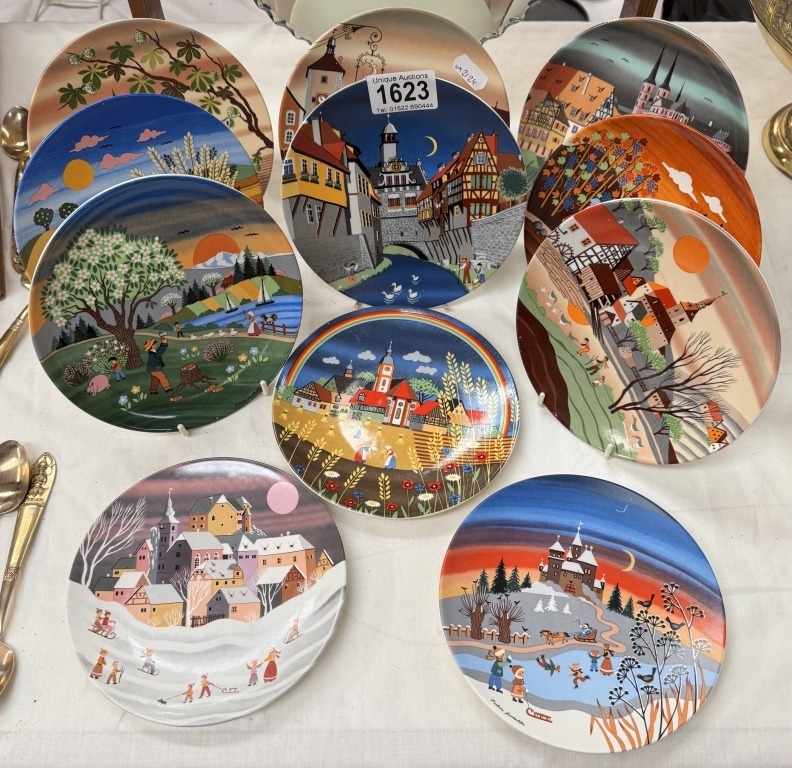 A collection of Poole pottery, seasons x8 & scenes x3 plates