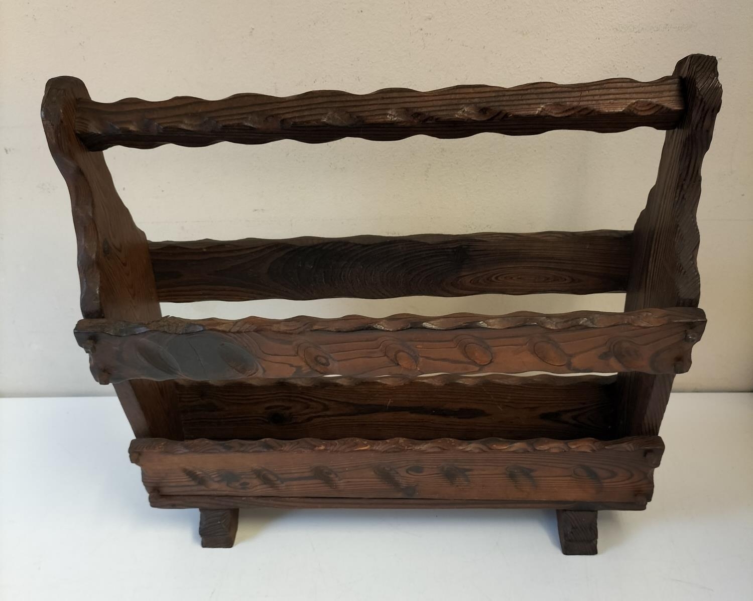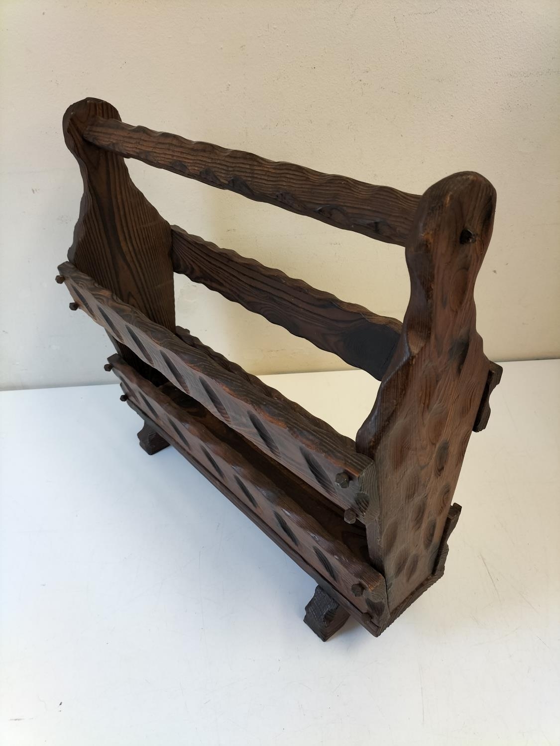Ornate Wooden Magazine Rack. 48cm x 44cm.