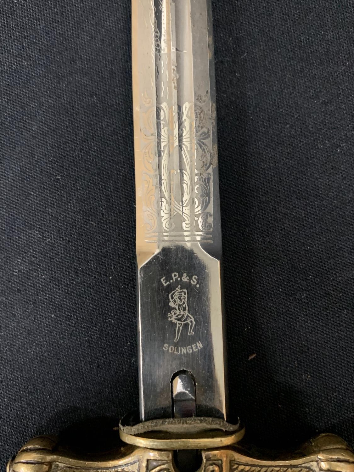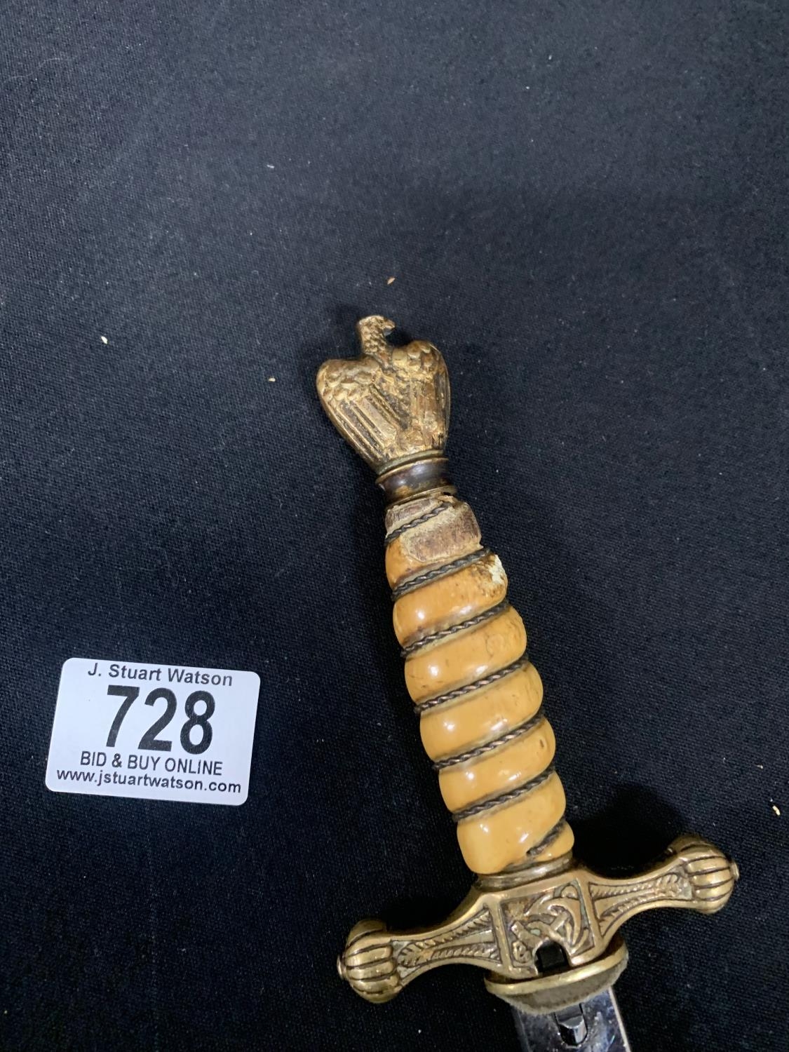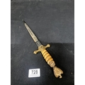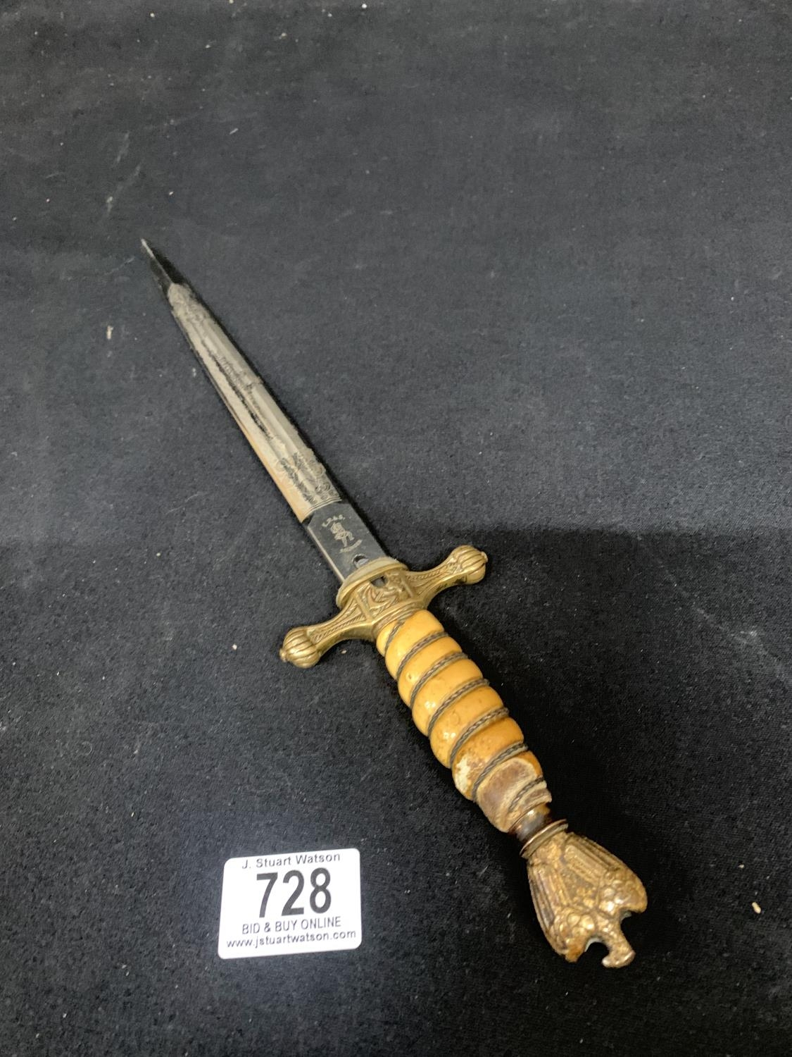 German WW2 Dagger with etched blade of battleship, length 38 cms