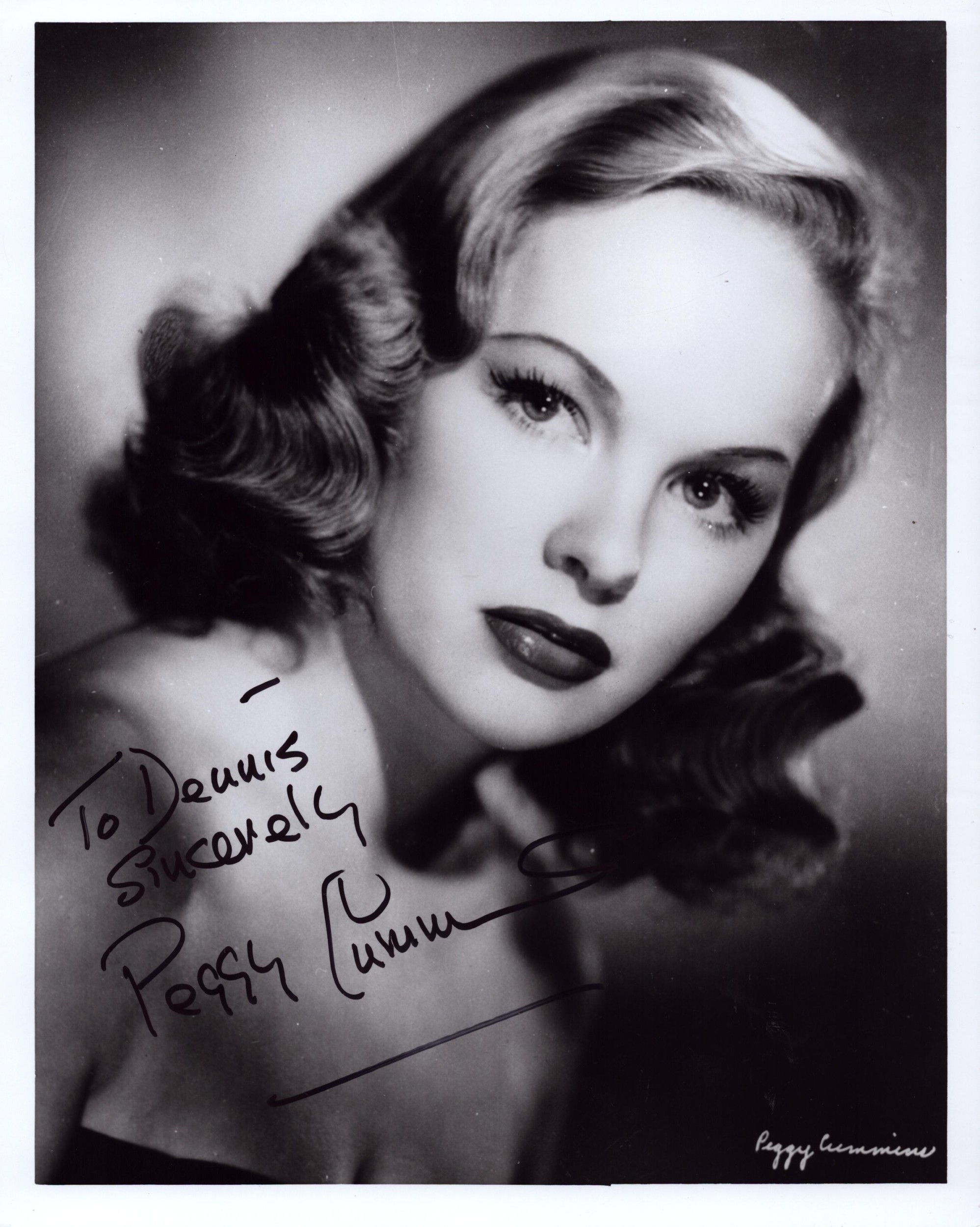 Peggy Cummins signed 10x8inch black and white photo. Dedicated.