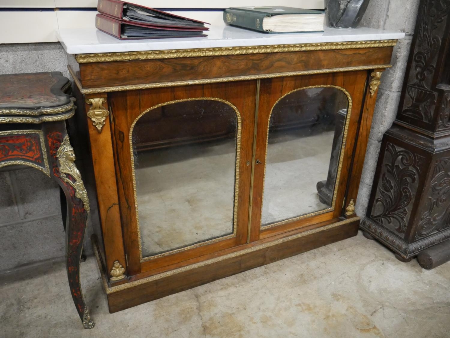 MARBLE TOP GEORGIAN ROSEWOOD & GILT SIDE CABINET