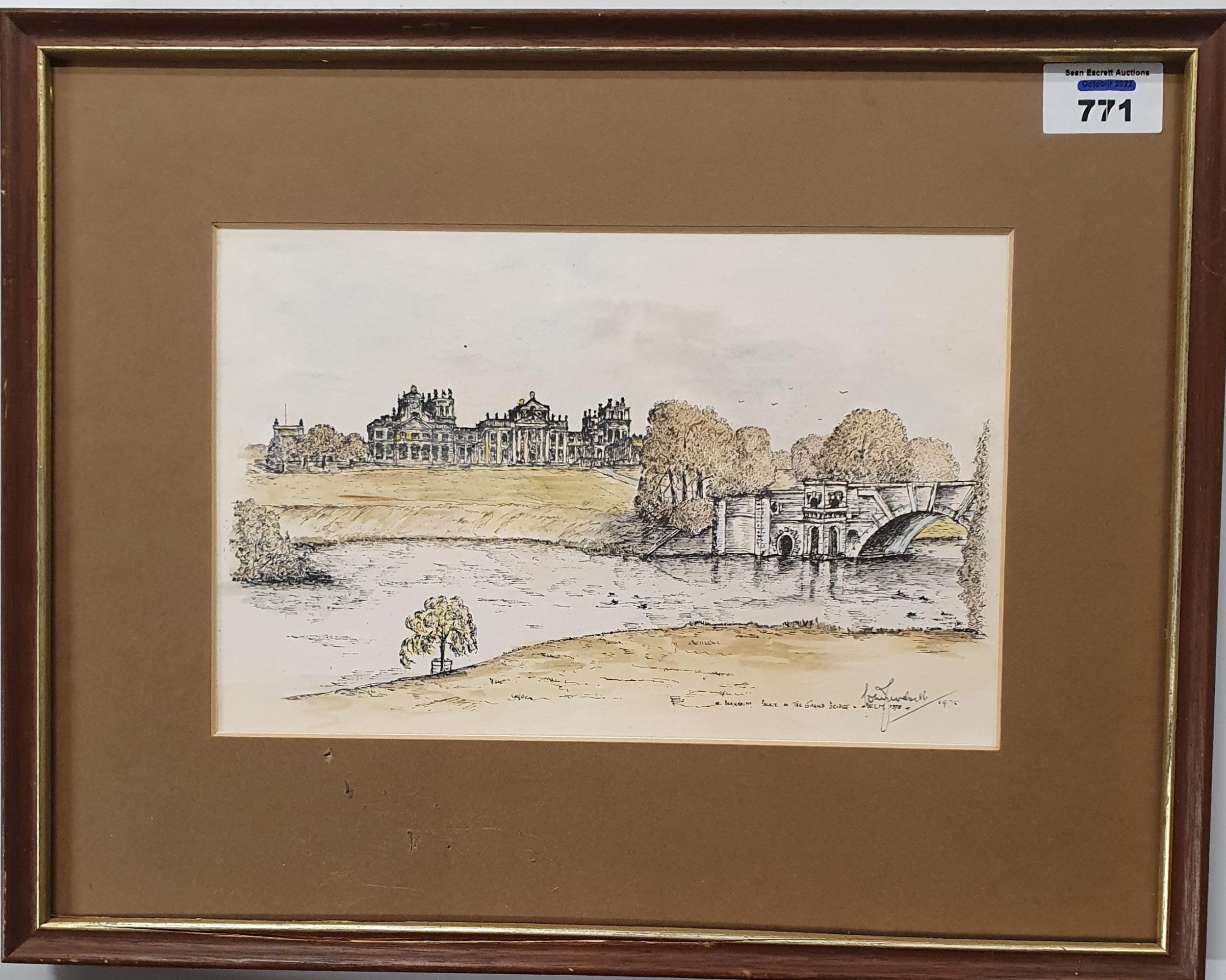 ''Blenheim Palace and Grand Bridge '' Watercolor signed LR .