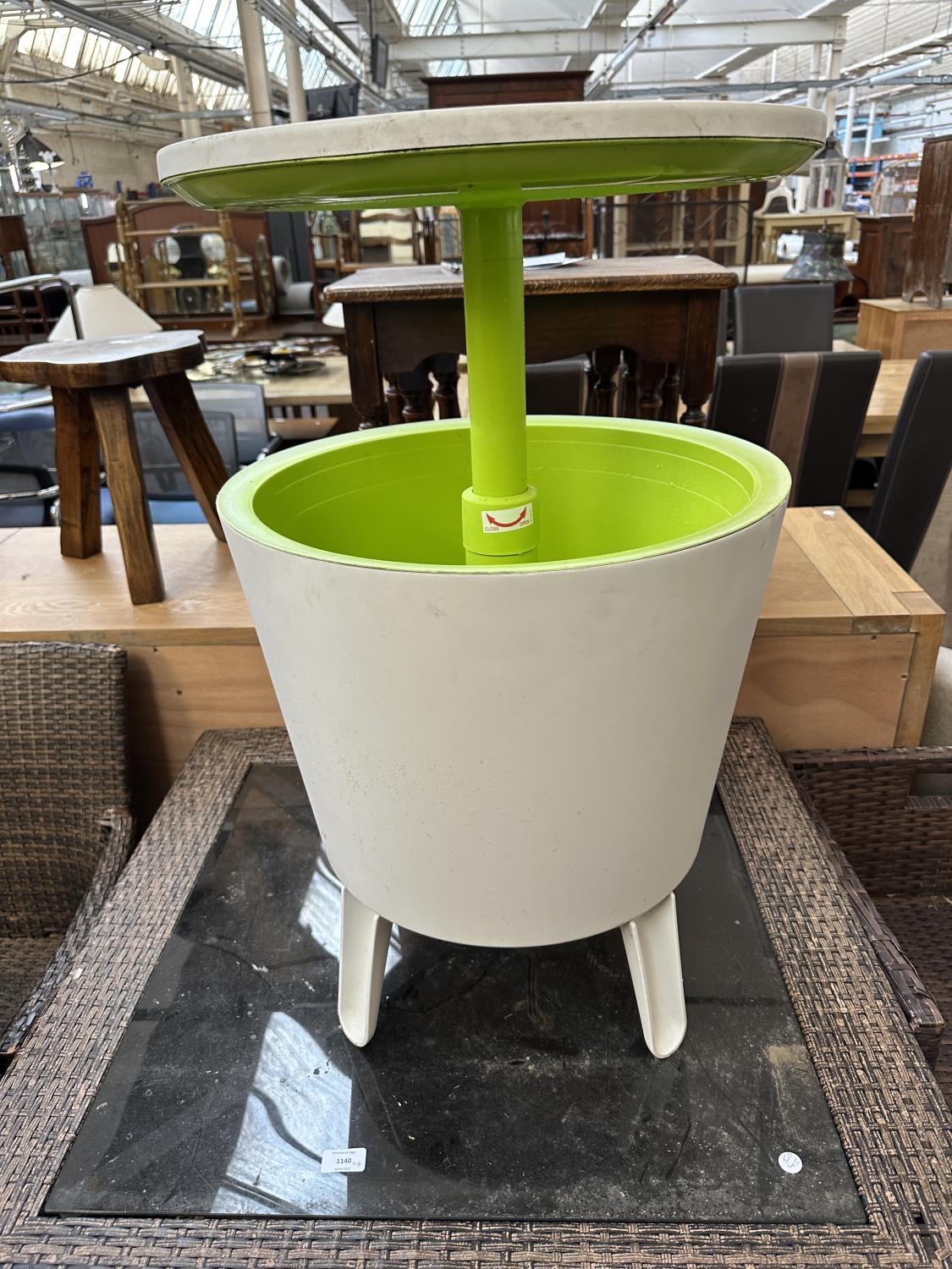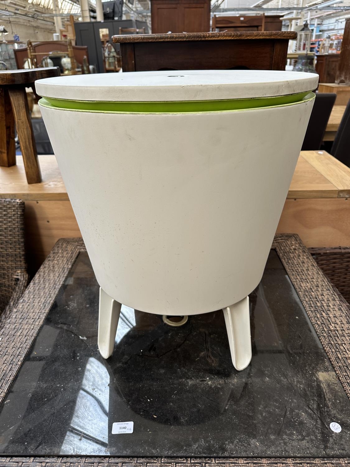 A D-Vision white plastic ice cooler bar table - approx. 57cm high x 50cm diameter