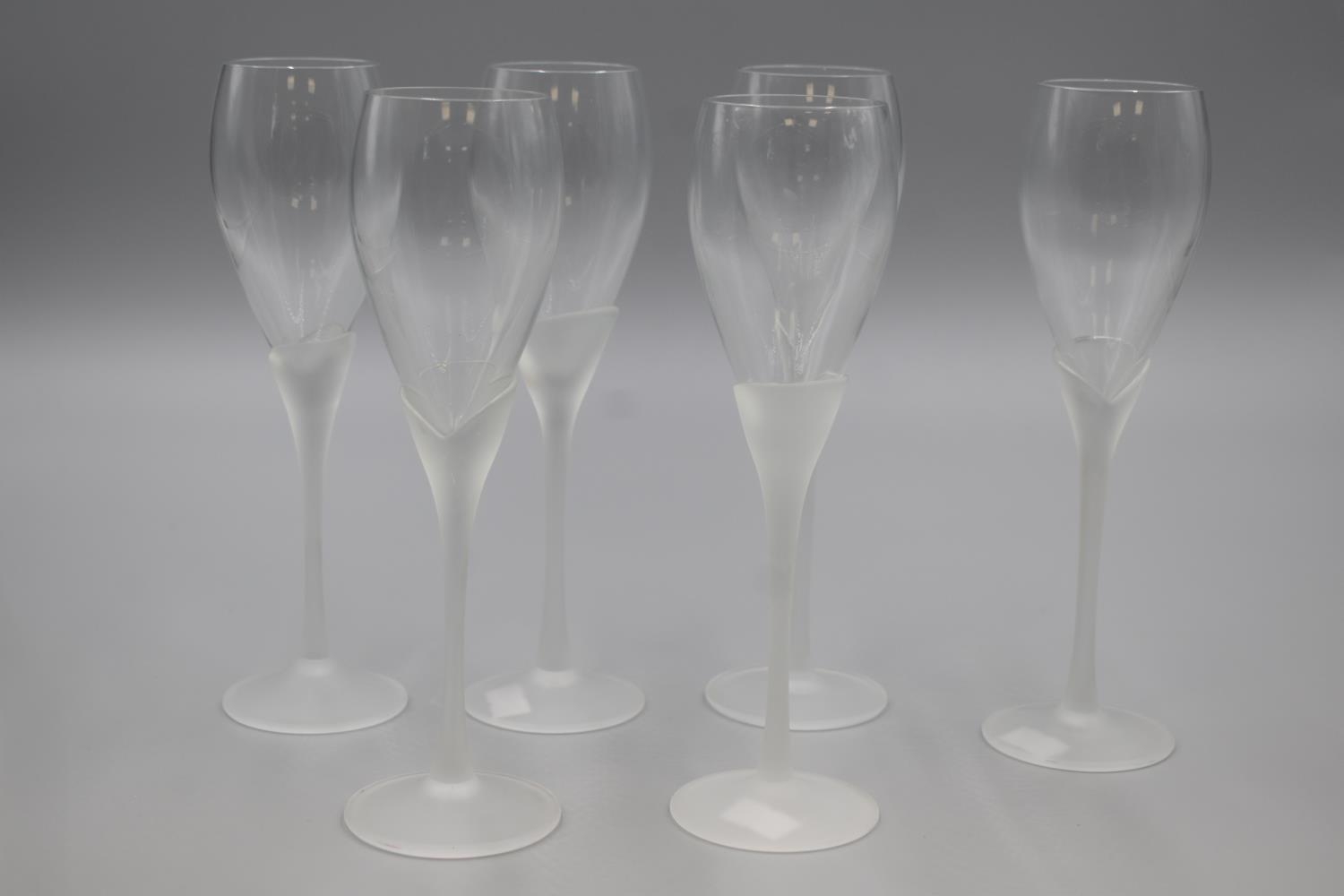 Set of Six Colony Amaryllis Frosted Stem Champagne Flutes 8.5"