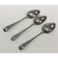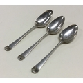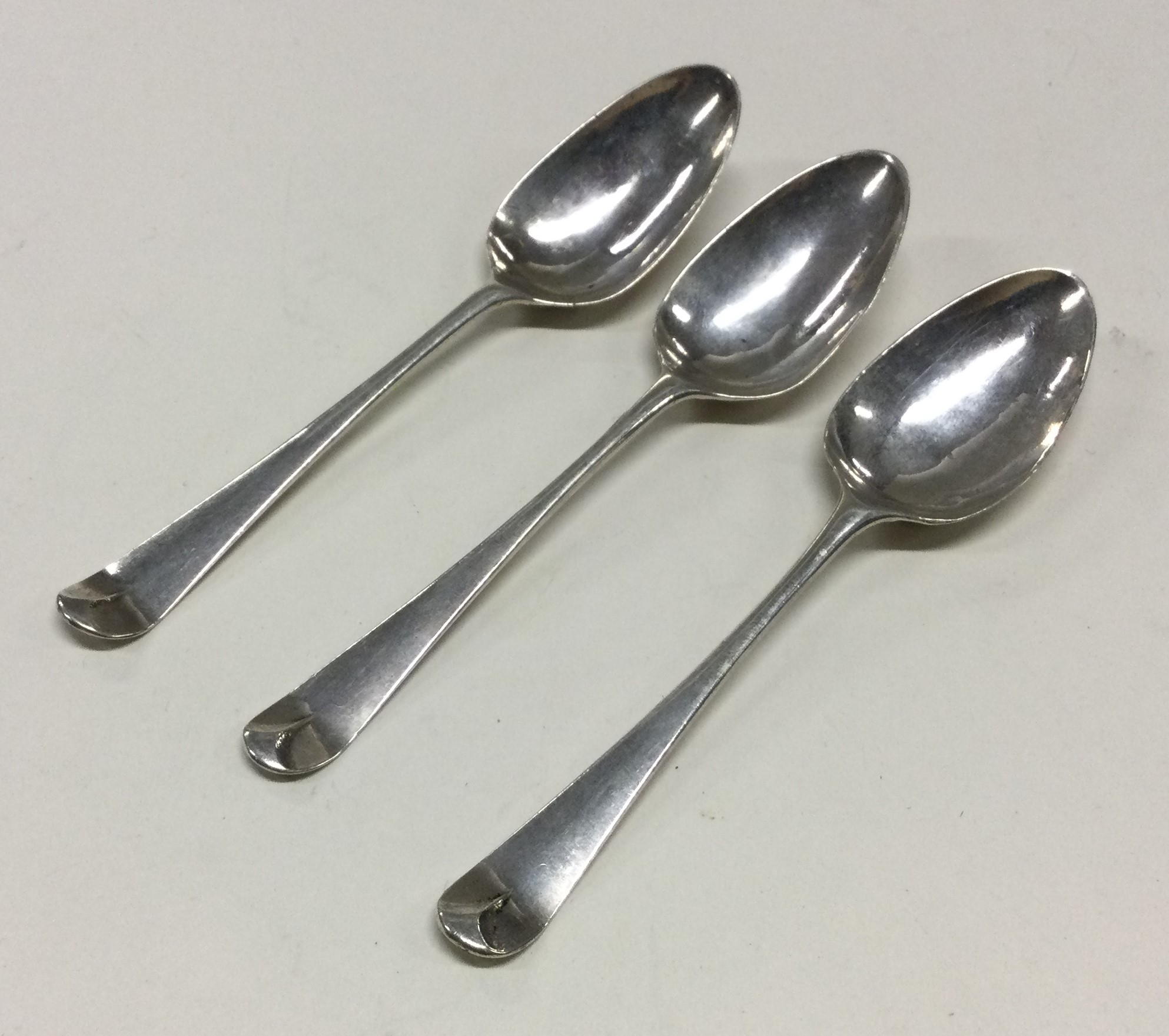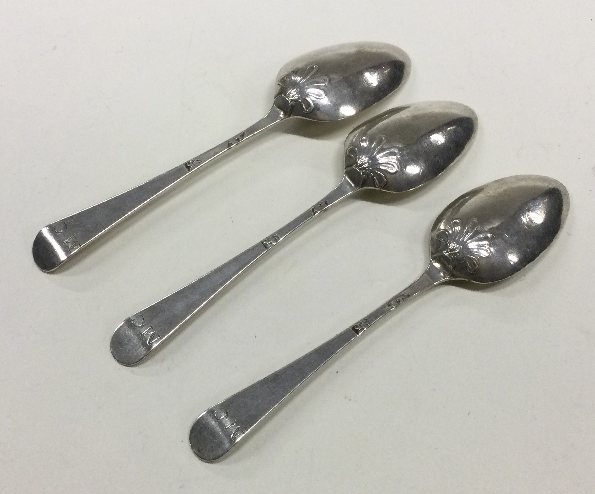 A set of three 18th Century silver picture back spoons. Makers mark only. Approx. 29 grams. Est. £50 - £80.