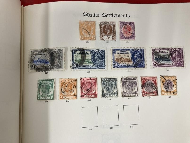 Stamps: Two albums Stanley Gibbons Imperial album, mainly George V and VI era World stamps, plus Stanley Gibbons New Age album Commonwealth mid 1936 to mid 1937 nice collection of Straits Settlements, mainly unused.